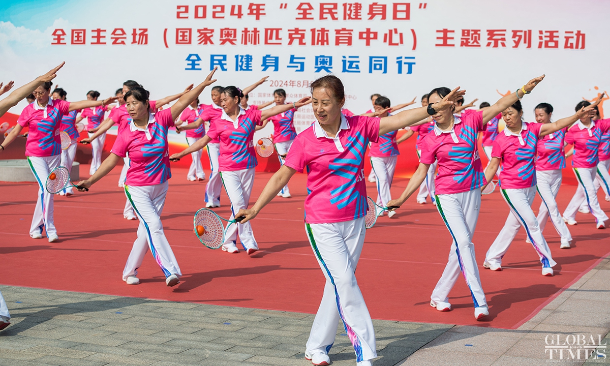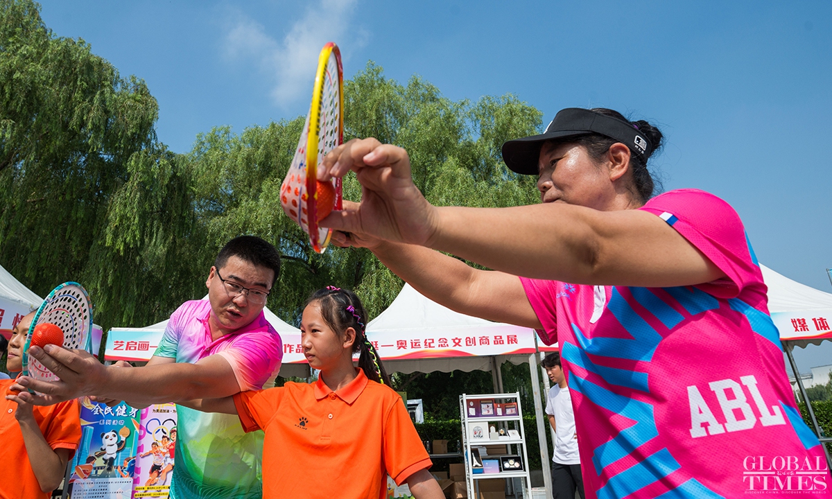 August 8 marks the 16th national fitness day in China. The National Olympic Sports Center in Beijing held over 50 themed activities, covering nearly 30 sports and attracting more than 8,000 sports enthusiasts to participate. (Photos: Chen Tao/GT)