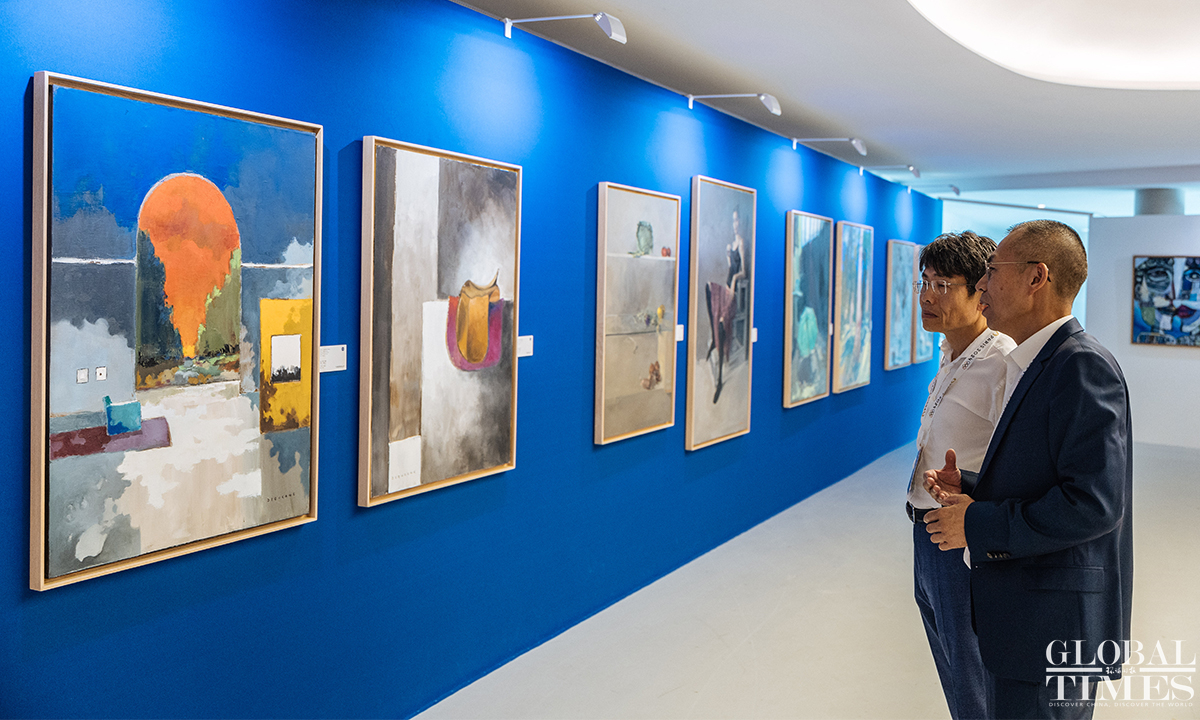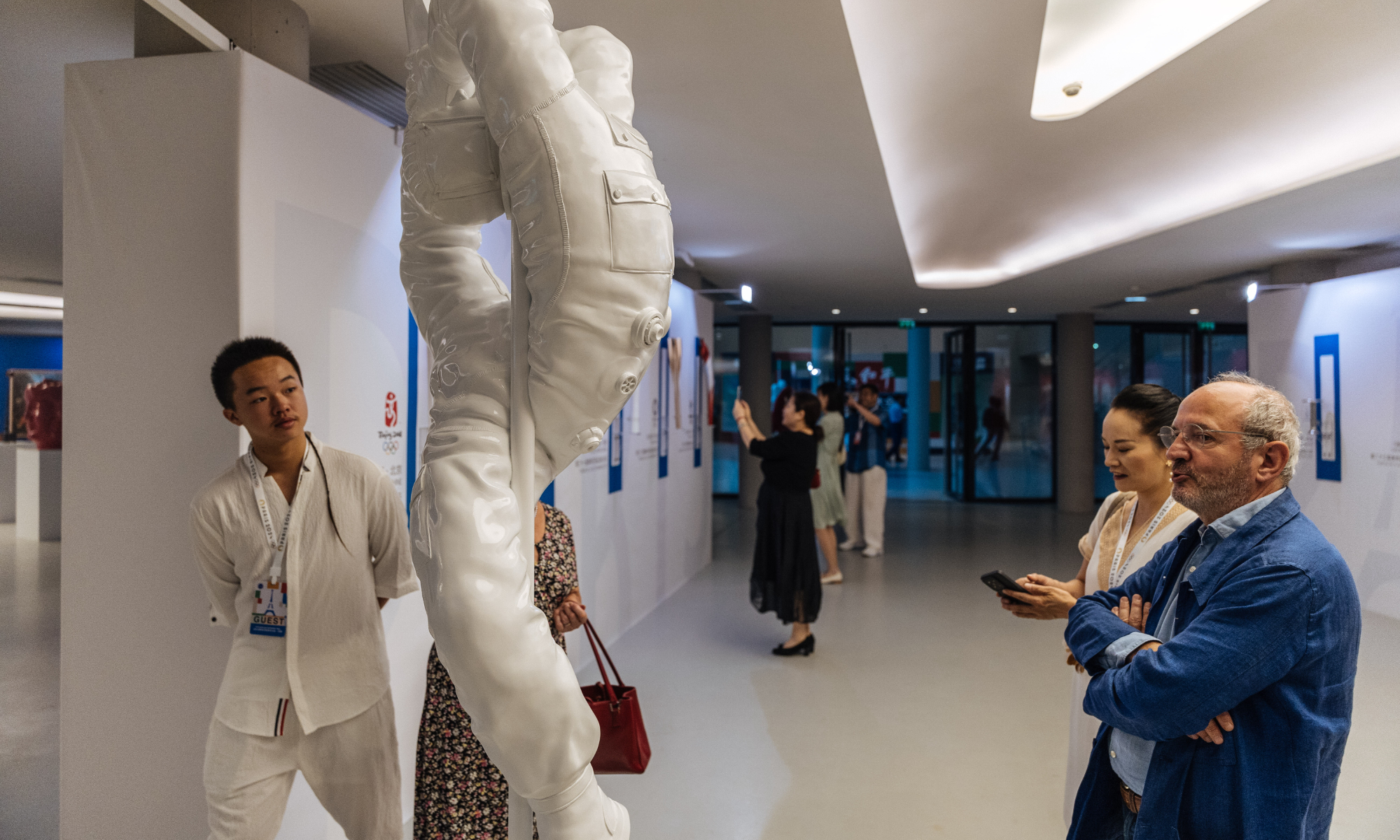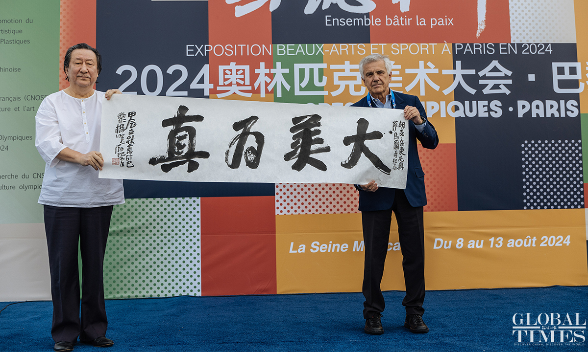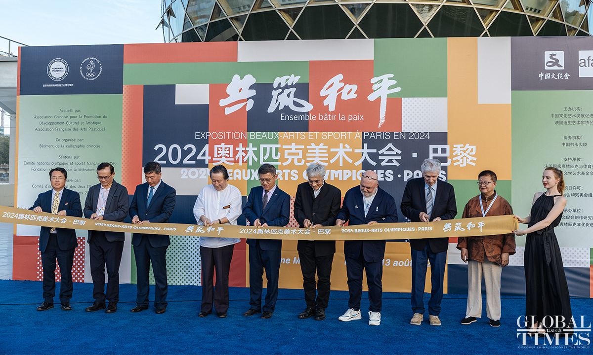 An art exhibition themed “Building peace together-2024 (Paris) Olympic Art Conference” opens in Paris on August 8, 2024 local time. This exhibition has collected over 120 sets of works of 90 artists from various countries, including China and France. The works are presented in the form of oil paintings and sculptures, demonstrating the integration of world civilizations. International Olympic Committee (IOC) Vice President Juan Antonio Samaranch Jr and IOC member Yu Zaiqing attended the opening ceremony. (Photos: Li Hao/GT)