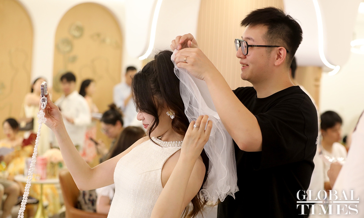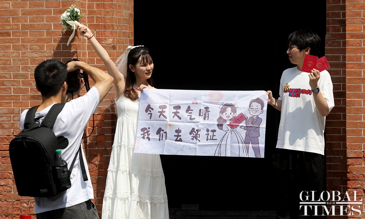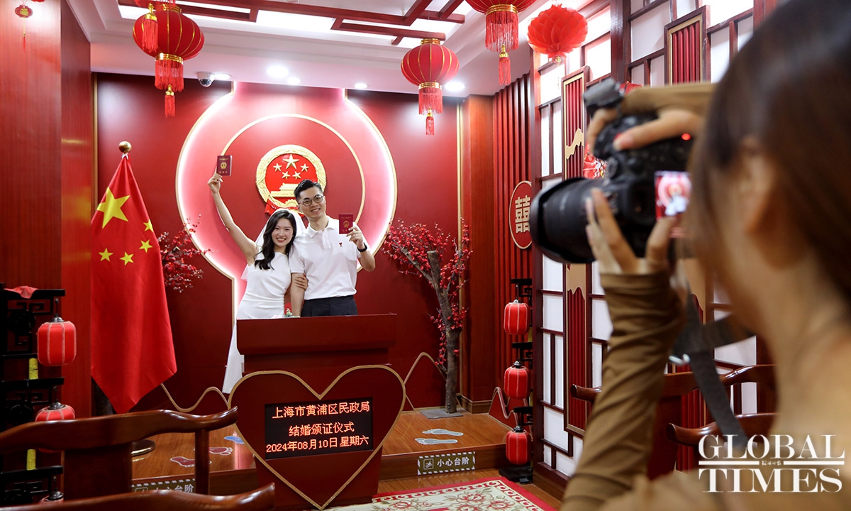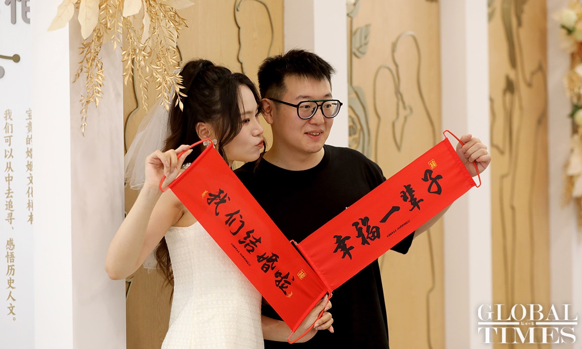 Shanghai marriage registration offices accommodated couples wishing to register their marriages on the Qixi Festival, also known as Chinese Valentine’s Day, which fell on a Saturday this year. Over 1,600 couples registered their marriages on this auspicious day. Photos: Chen Xia/GT