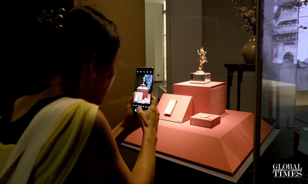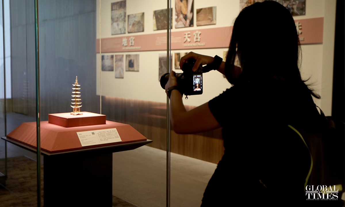 In the early 1990s, the remarkable archaeological discovery of Yuanying Pagoda, Shanghai’s tallest ancient pagoda, amazed the public with exquisite artifacts. To celebrate the 30th anniversary of the pagoda's restoration and exploration, the exhibition “A Towering Treasure House: Relics of the Yuanying Pagoda in Shanghai” will begin at Shanghai Museum on Wednesday. The exhibition showcases the urban development, cultural richness, and refined lifestyle of ancient Shanghai with 300 cultural relics from Yuanying Pagoda, including Buddhist statues and daily items made of materials like gold, silver, copper, and jade. It will be on display until November 11. (Photos: Chen Xia/GT)