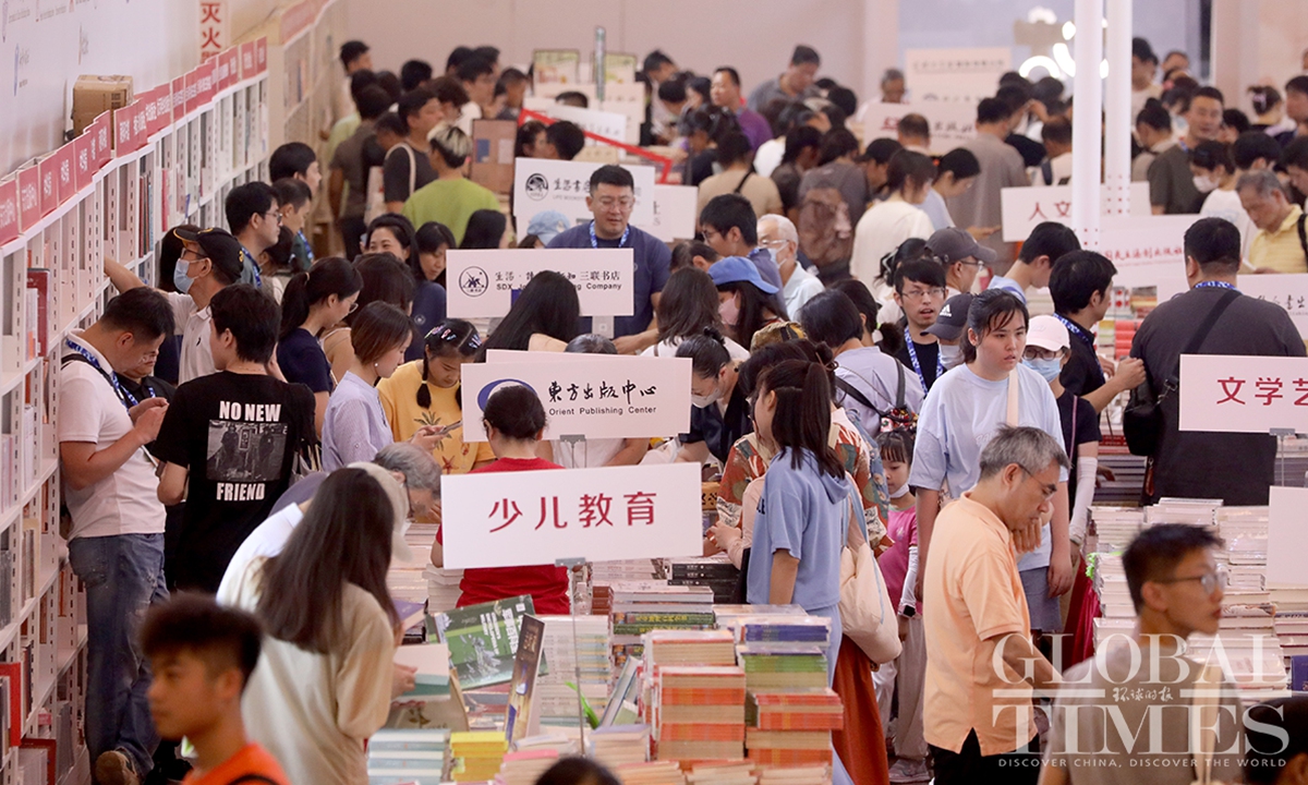 The 20th Shanghai Book Fair kicked off at the Shanghai Exhibition Center on Wednesday. The venue showcases nearly 30,000 books and will host around 1,000 events, including a "night book fair tour" and "crossover book IP collaboration." Notably, for the first time, a special exhibition dedicated to "international art books" has been added to the fair. Photos: Chen Xia/GT