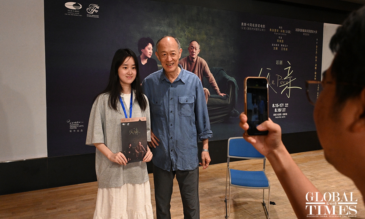 The Chinese theater version of Florian Zeller's 2012 play Le Père will be staged at Beijing’s National Centre for the Performing Arts (NCPA) from August 15 to 18. Directed by Jiang Weiguo, the play produced by Shanghai Dramatic Arts Centre stars Chin Shih-Chieh and Tian Shui. The play is well-known in China, as the similarly named Anthony Hopkins-starring movie "The Father" received six nominations and won two, including Hopkins’ Best Actor award. (Photos: Chen Tao/GT)