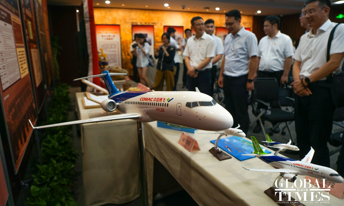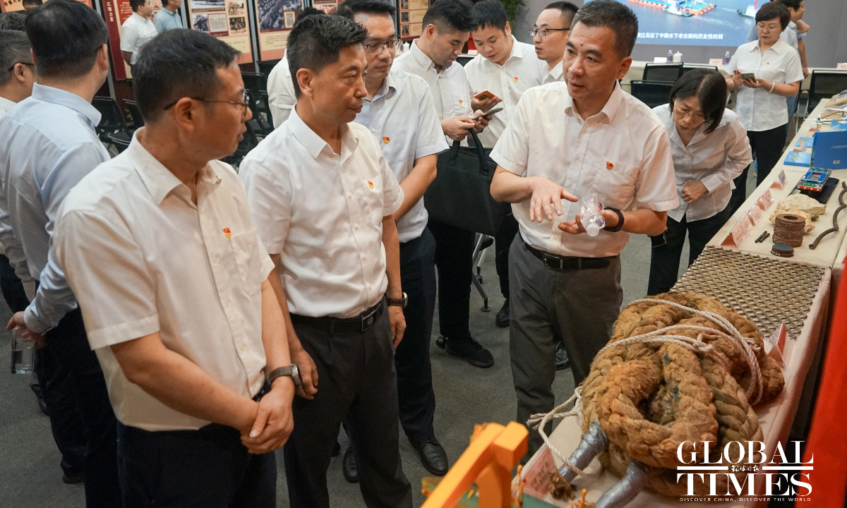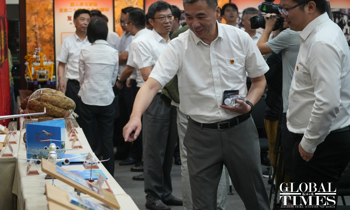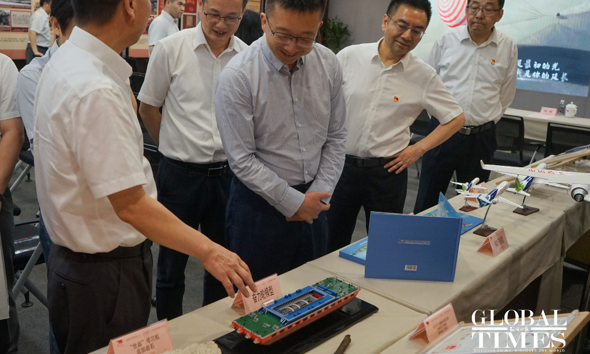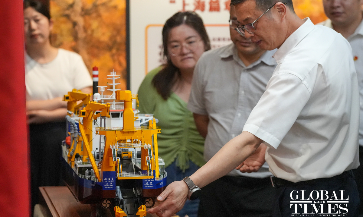 A donation ceremony was held at the Memorial Hall of the First National Congress of the Communist Party of China on Thursday in Shanghai. The donated collections include the model of C919, China's self-developed large passenger aircraft, the model Fenli, specially designed and built for the salvage operation of the Yangtze River Estuary No 2 ancient vessel, and the flag signed by the 27th Antarctic expedition team, which has witnessed the development of China's polar research efforts. (Photos:Lu Ting/GT)