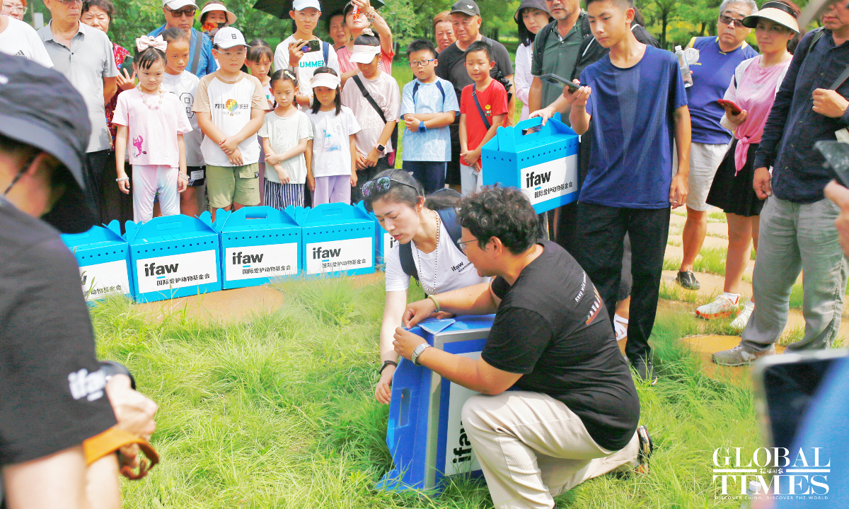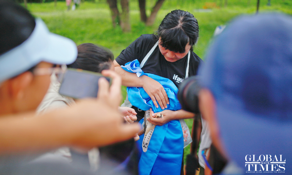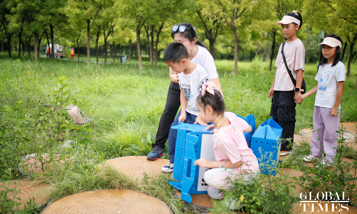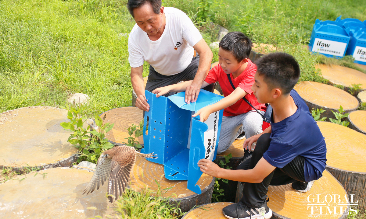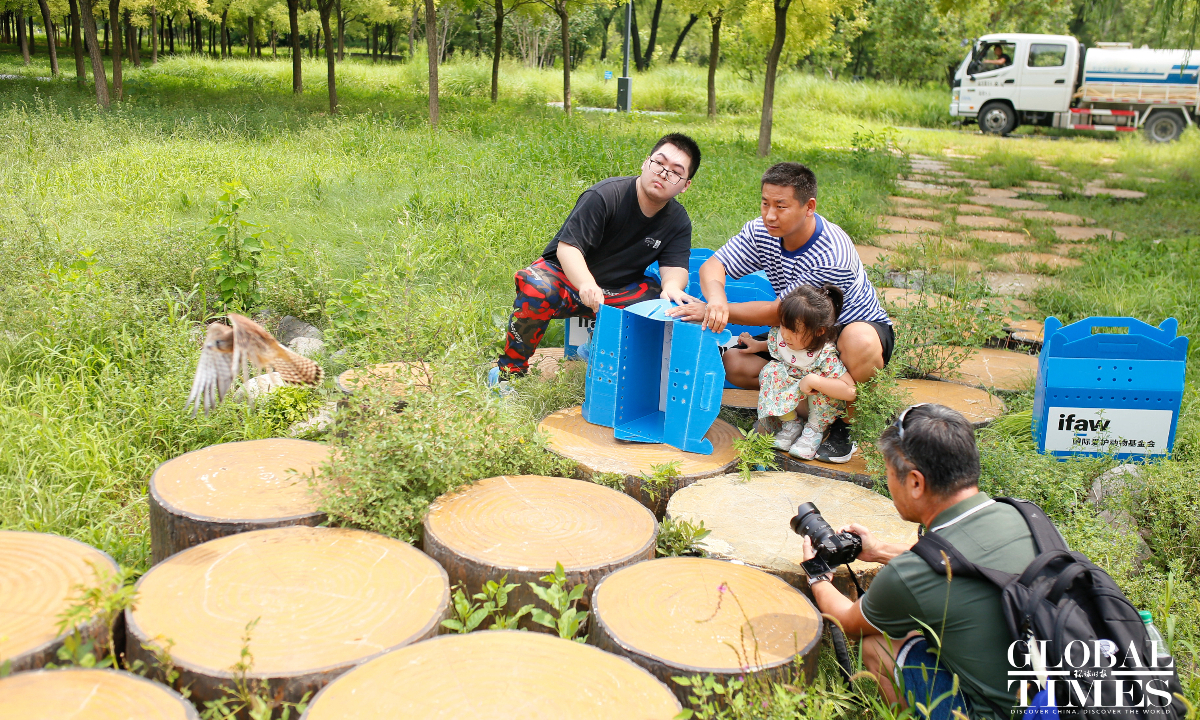Eight rescued common kestrels were released back into the wild in Beijing's Nanyuan Forest Wetland Park on August 15, 2024. This day also marks China's National Ecology Day. These majestic birds, saved by local residents and healed by the Beijing Raptor Rescue Center, are now soaring freely once again.(Photos:Shan Jie/GT)