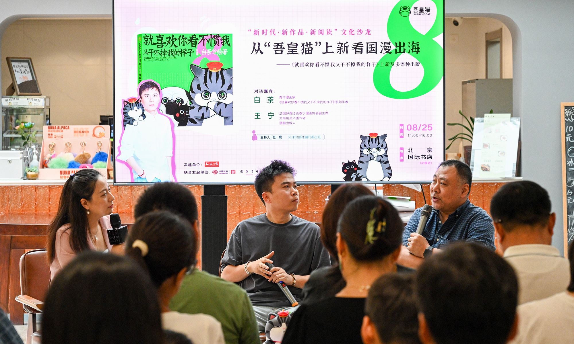 On Sunday, the second session of the New Era, New Works, New Reading culture salon was held at the Beijing International Bookstore in Haidian District, Beijing. The event focused on the popular Chinese comic IP, I Like that you don't like what I do, but can do nothing about it, examining the overseas expansion of Chinese comics through the lens of Supremo Cat series. Bai Cha, the author of the Supremo Cat series, and comic publisher Wang Ning, engaged in a captivating discussion about the creation story behind Supremo Cat and the global expansion of Chinese comics.