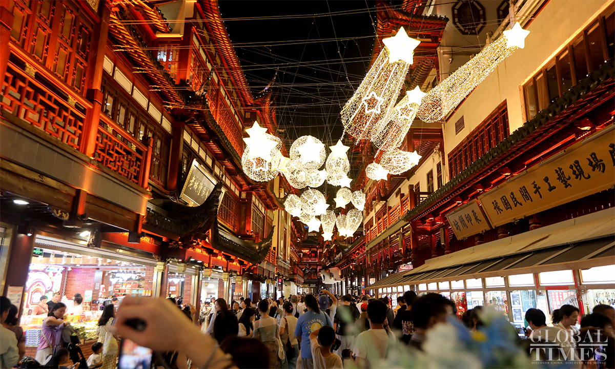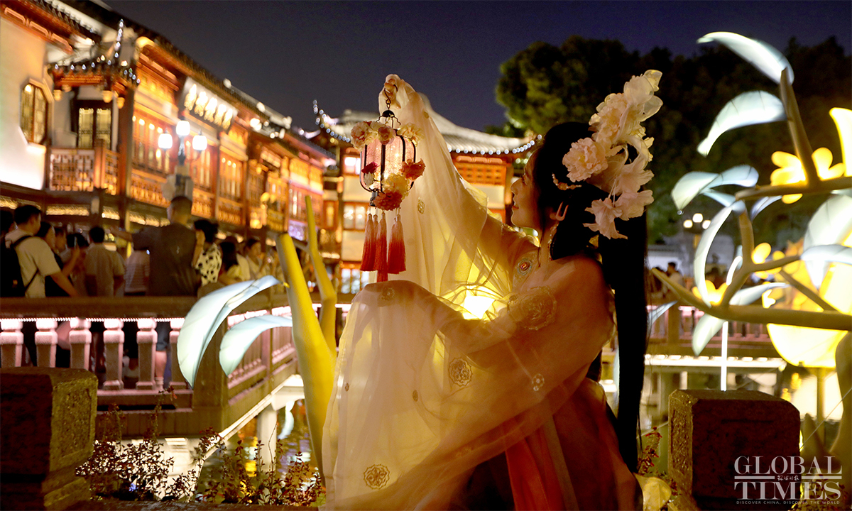 Shanghai's iconic Yuyuan Garden is holding the annual Mid-Autumn lantern show to celebrate the upcoming Mid-Autumn Festival, which falls on September 17 this year. As well as enjoying the lantern show, visitors can also participate in interactive activities held at Yuyuan Garden. The lantern show will last until September 26. (Photos: Chen Xia/GT)