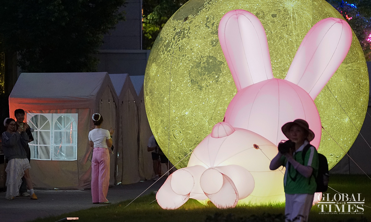 A lantern show is being held at The Inlet, a fashion landmark in Shanghai, to celebrate the upcoming Mid-Autumn Festival. Eight adorable rabbit figures are displayed throughout the venue, attracting many visitors. As part of the 2024 Shanghai International Light Festival, the venue will host more than 100 activities until mid-October, according to media reports. (Photos: Lu Ting/GT)