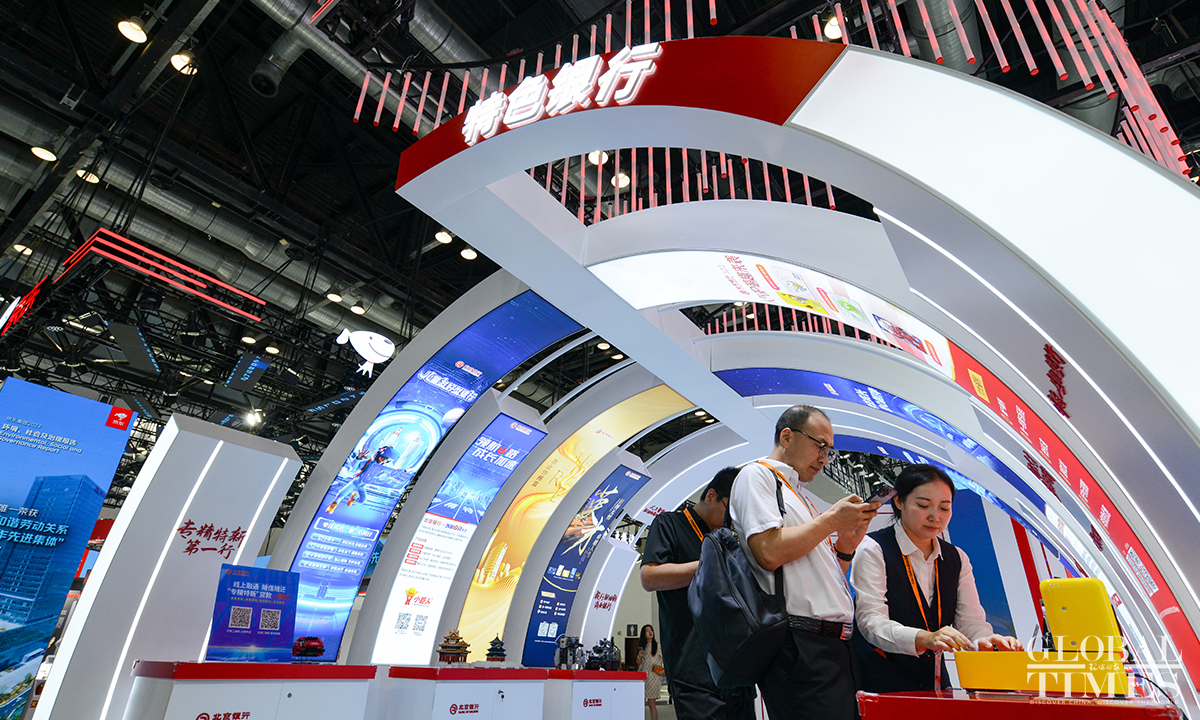 The "theme zone" within the 2024 China International Fair for Trade in Services (CIFTIS) showcases 12 key areas of trade in services, including business, financial, and transportation services. CIFTIS features a selection of Fortune 500 companies and leading industry enterprises, highlighting new technologies, applications, and services. CIFTIS is being held in Beijing from September 12 to September 16, 2024. (Photos: Chen Tao/GT)
