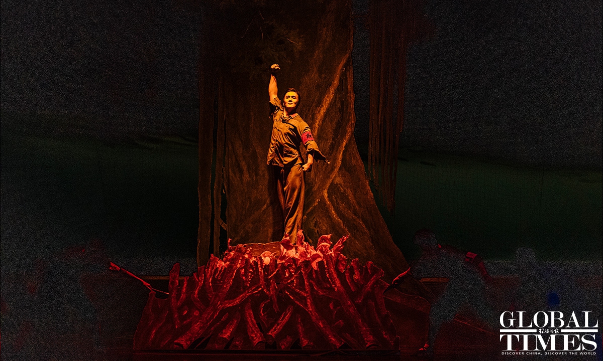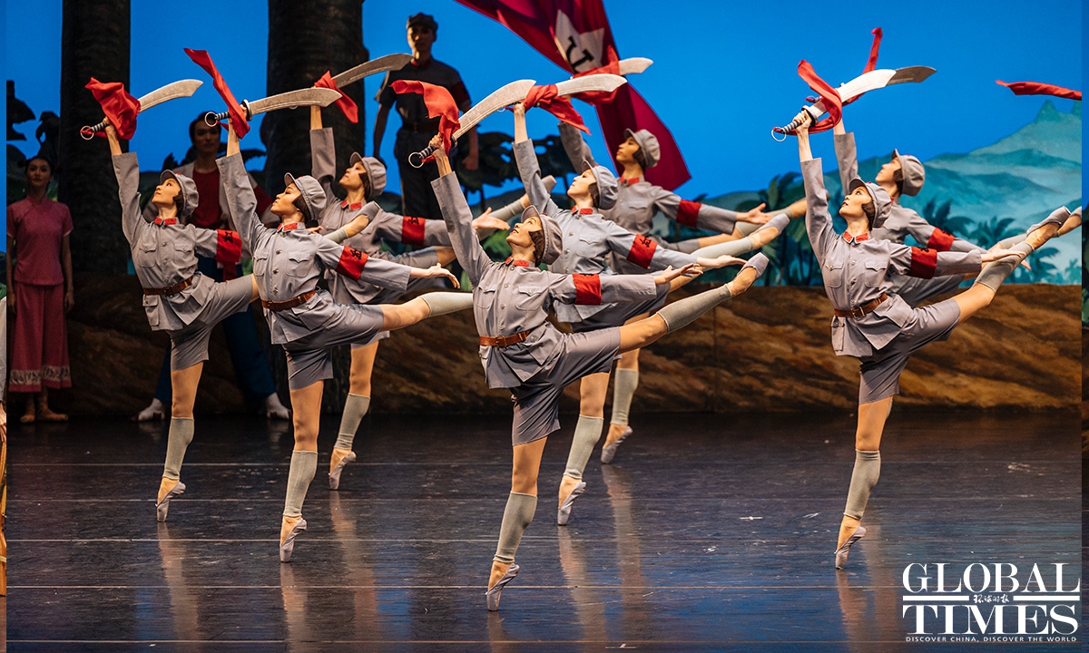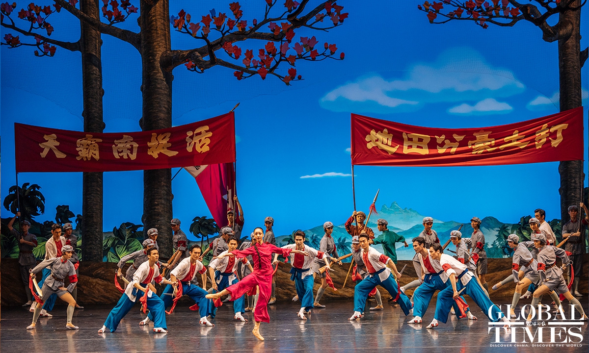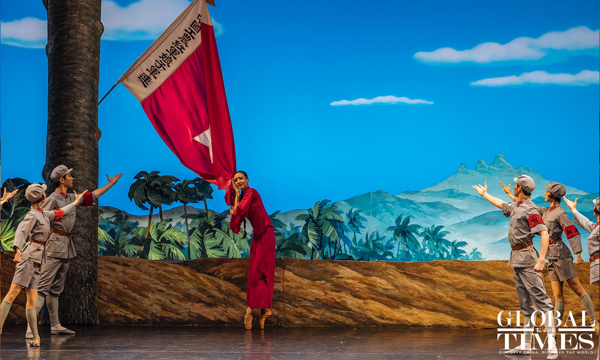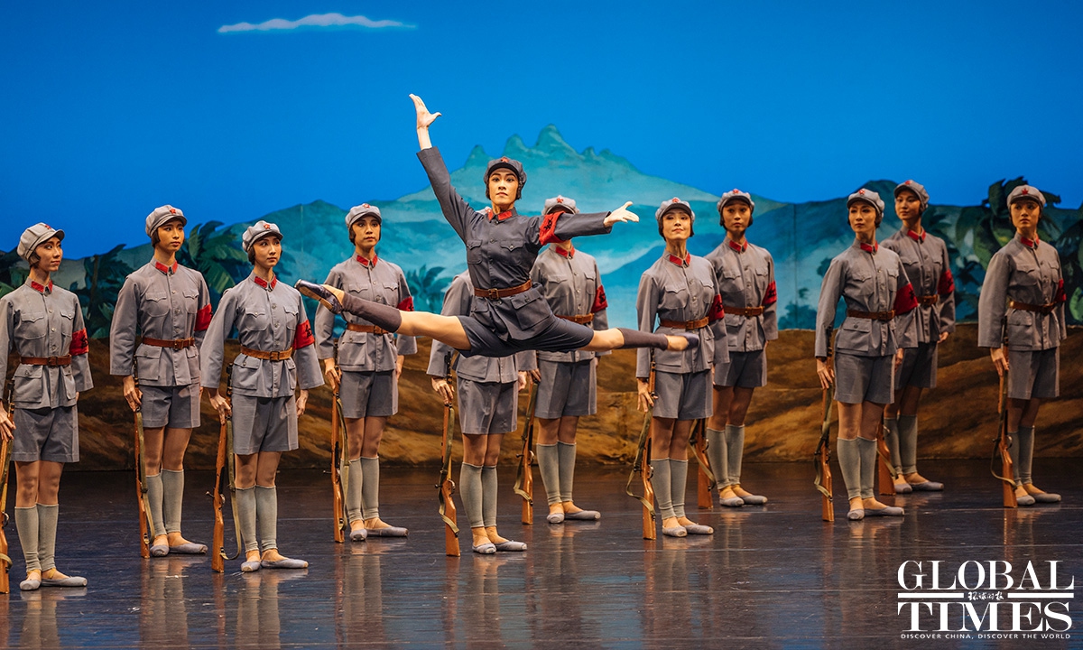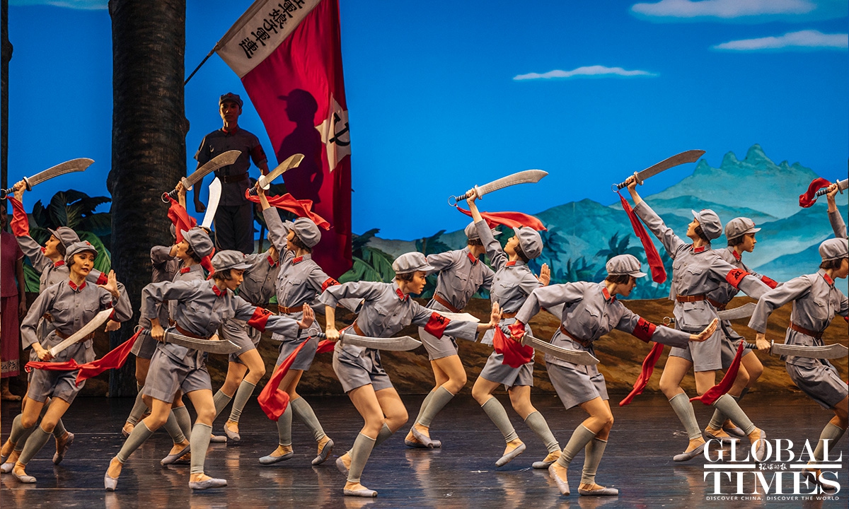 The classic Chinese ballet "The Red Detachment of Women" celebrated the 60th anniversary of its premiere at Beijing's Tianqiao Theater on Thursday. Set in Hainan Island in the early 1930s, the story centers around Wu Qionghua, a rural woman who escapes slavery and joins an all-female Communist Party of China battalion led by Commander Hong Changqing. Photos: Li Hao/GT
