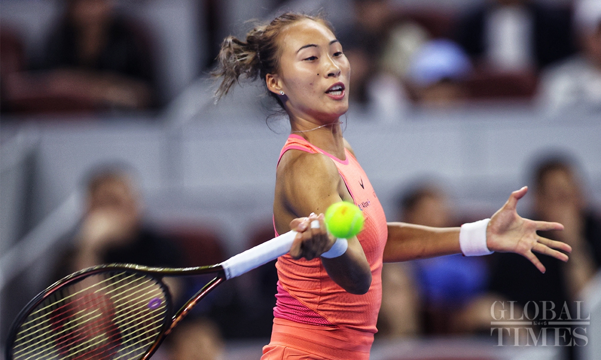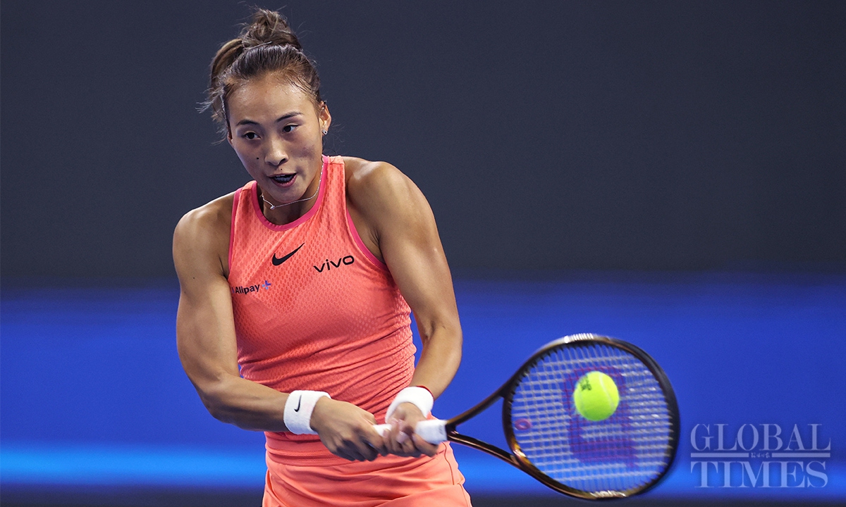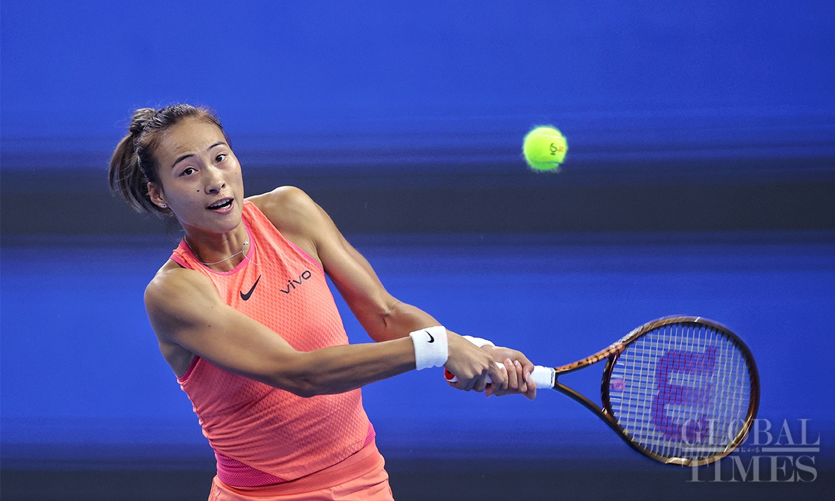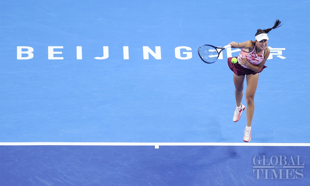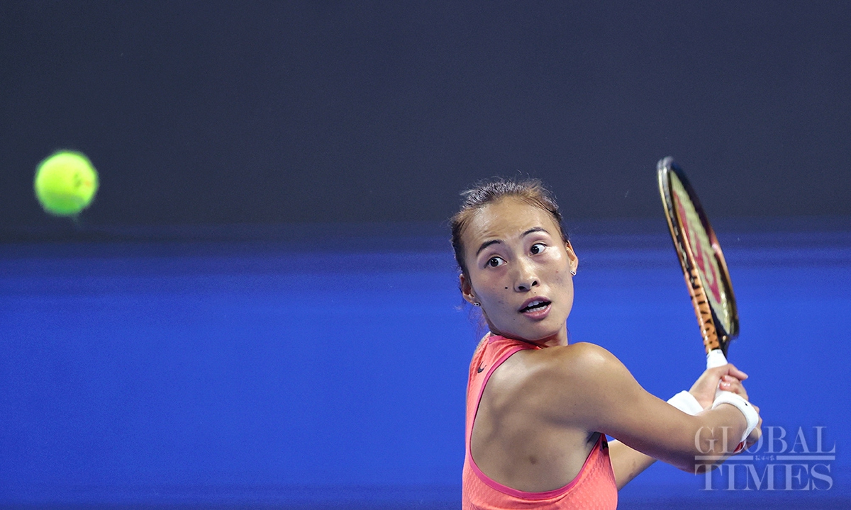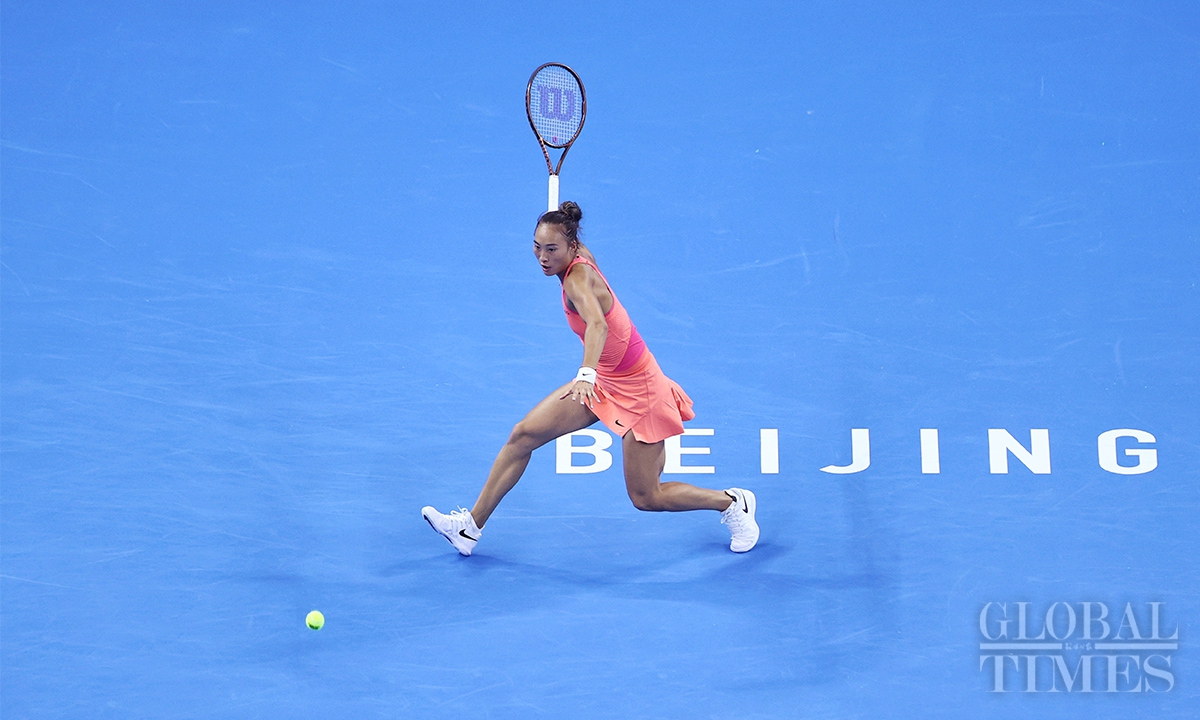 China’s tennis star Zheng Qinwen eased past 71st-ranked Kamilla Rakhimova of Russia 6-1, 6-1 in the second round at the China Open on Saturday. The match attracted over 12,000 fans at the 15,000-capacity Diamond Court at the National Tennis Center in Beijing.Photos: Cui Meng/GT