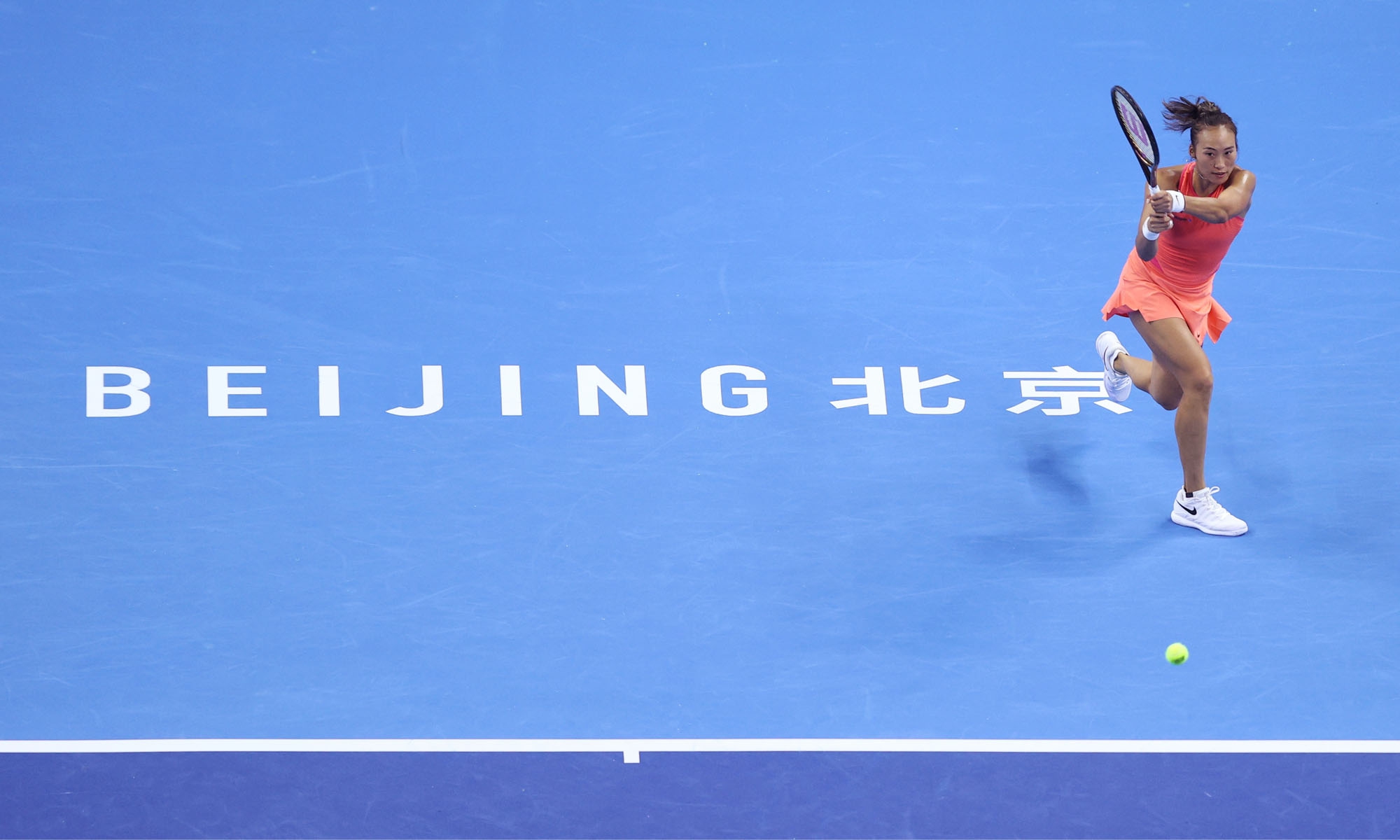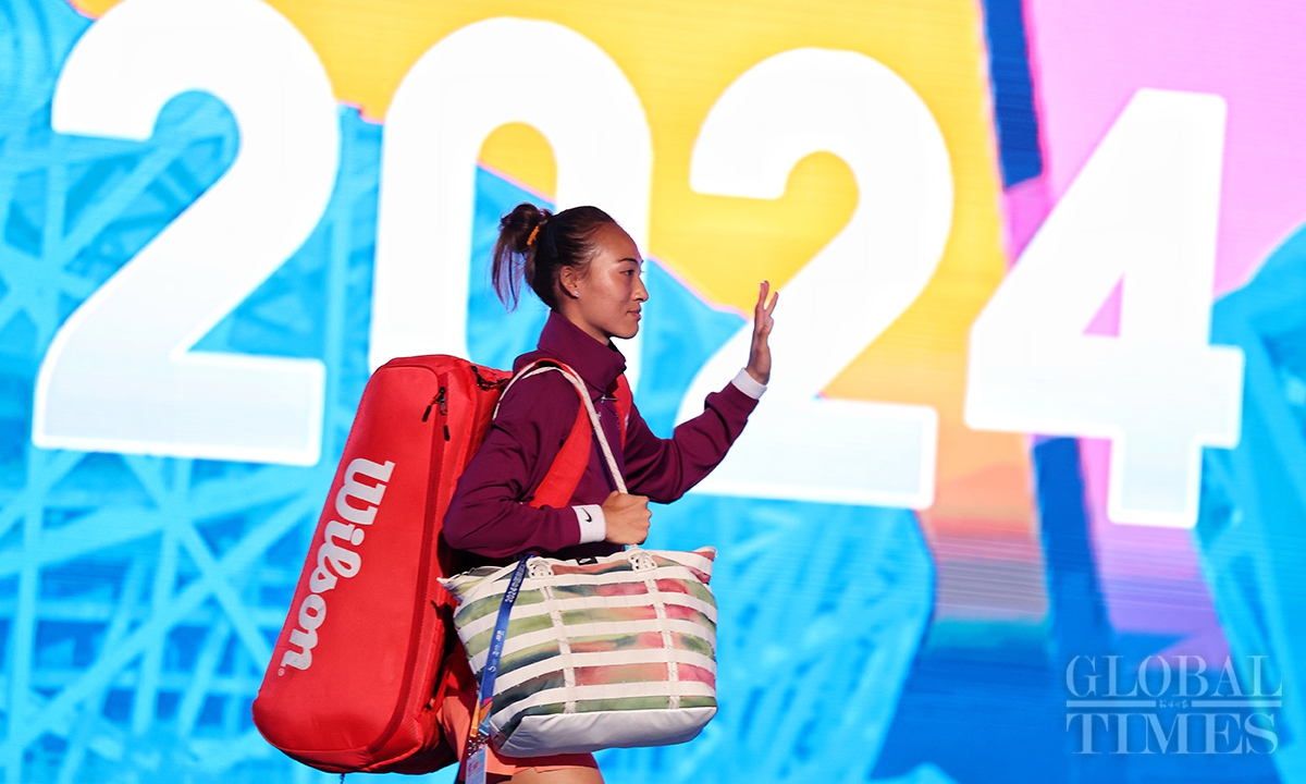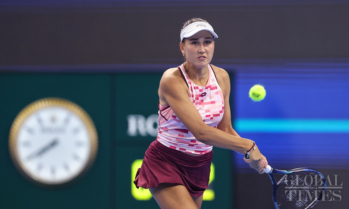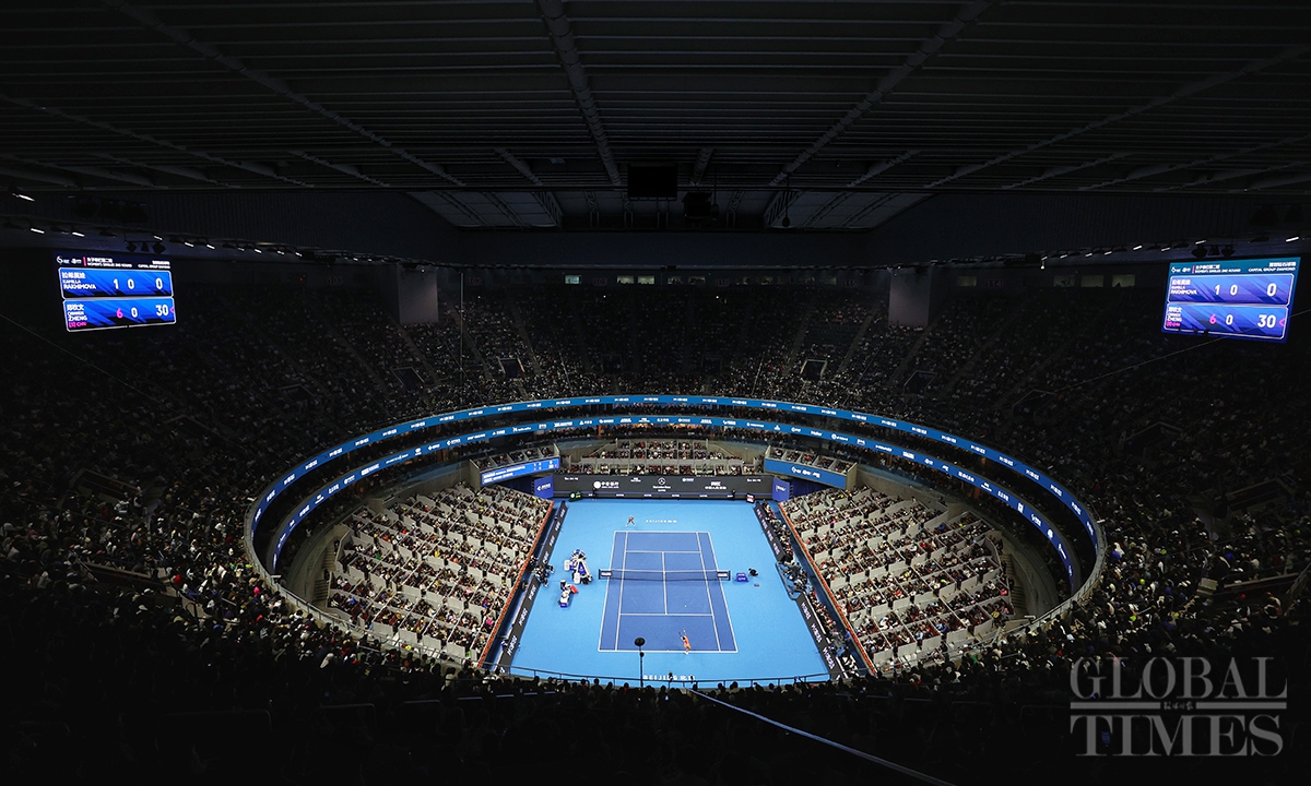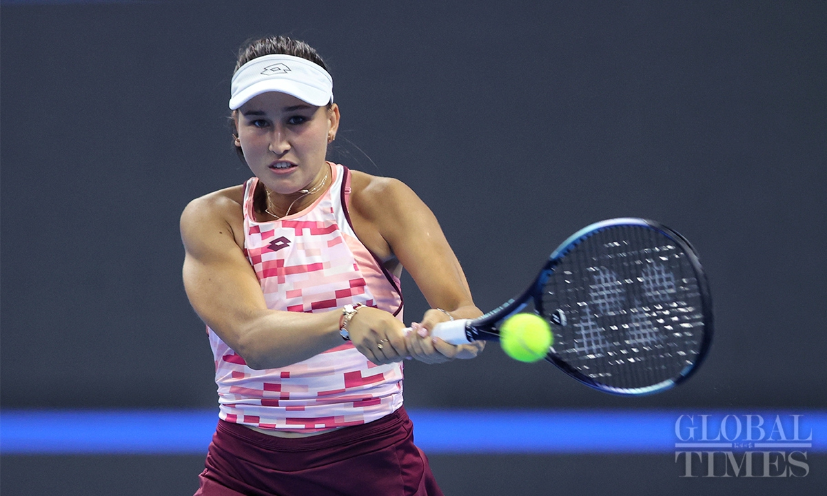 China’s tennis star Zheng Qinwen eased past 71st-ranked Kamilla Rakhimova of Russia 6-1, 6-1 in the second round at the China Open on Saturday. The match attracted over 12,000 fans at the 15,000-capacity Diamond Court at the National Tennis Center in Beijing.Photos: Cui Meng/GT
