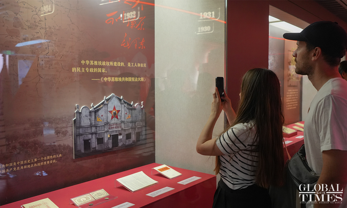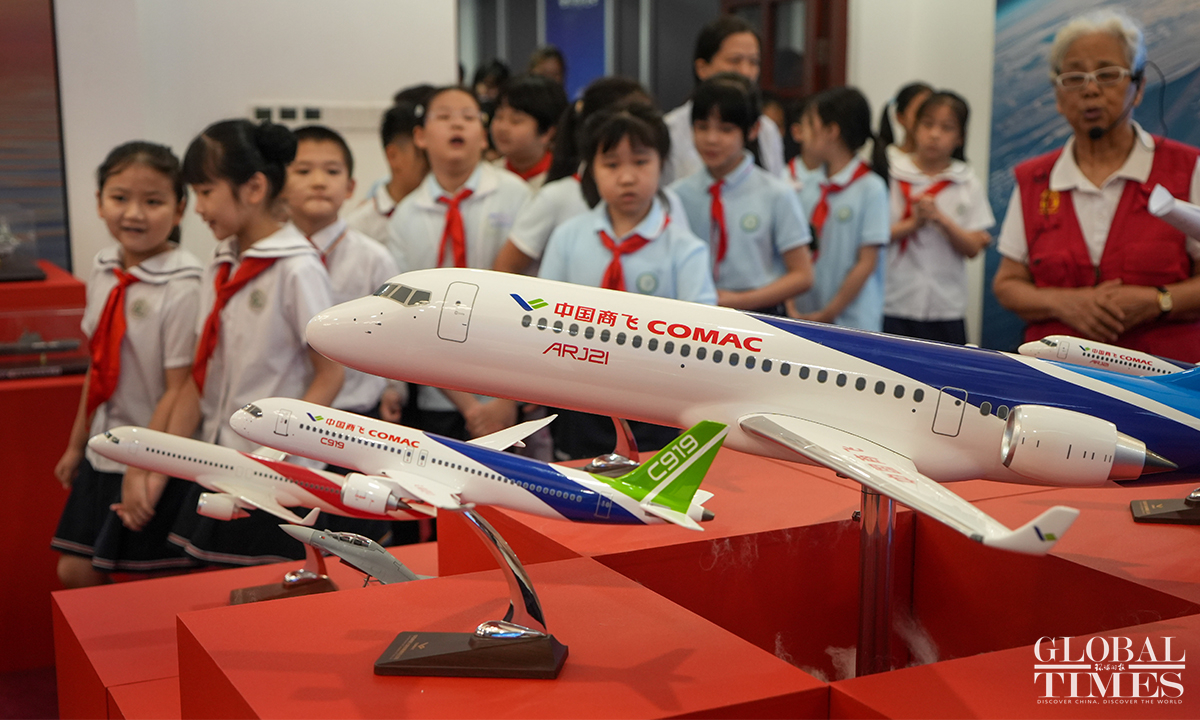 A special exhibition opened at the Memorial of the First National Congress of the Communist Party of China on Sunday, to celebrate the 75th founding anniversary of the People's Republic of China. The exhibition features nearly a hundred items, including important revolutionary documents and significant memorabilia. Models of the C919 jetliner, the aircraft carrier the Fujian and the Chang'e-6 lunar probe are also on display. (Photos: Lu Ting/GT)