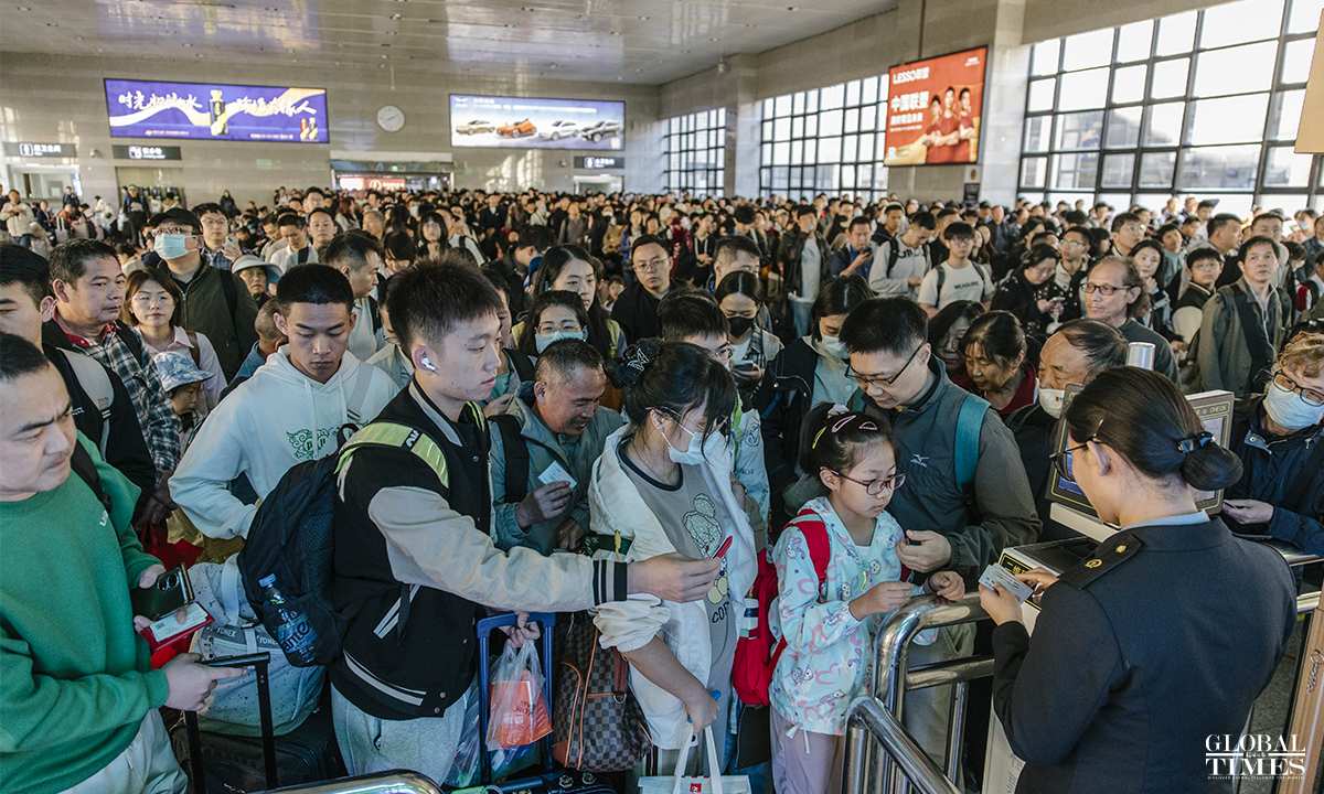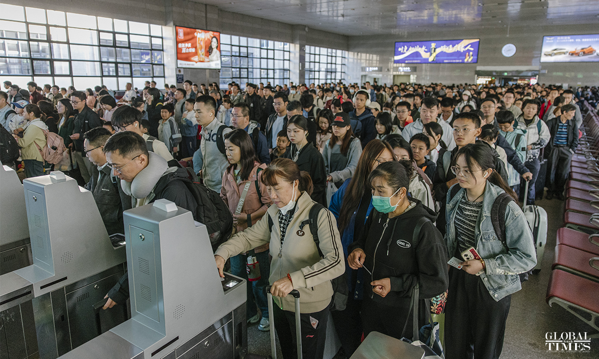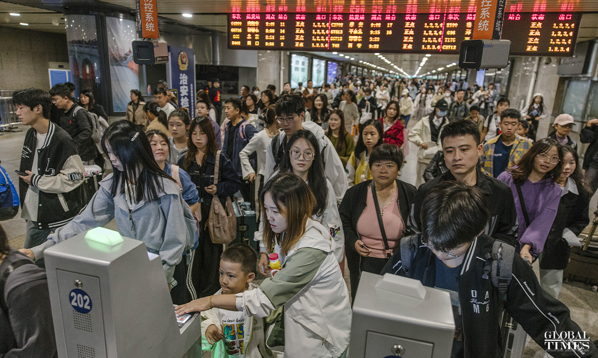 On October 1, 2024, Beijing West Railway Station experienced a peak in passenger flow for the National Day holidays, with an expected maximum of 215,000 passengers in a single day. The total number of passengers anticipated during the entire holiday period is over 1.75 million. Photos: Li Hao/GT