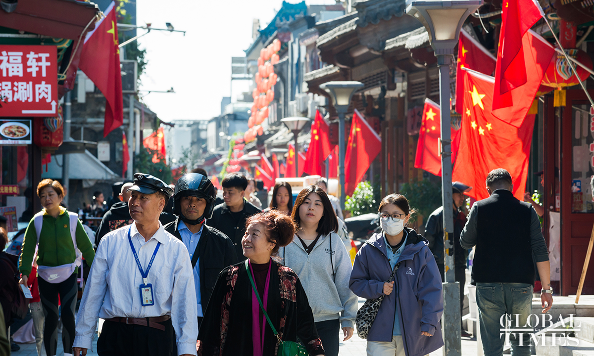 Tourists from across China flock to Beijing during the weeklong National Day holidays starting on Tuesday. Qianmen and Wangfujing pedestrian streets, two of the city’s top destinations, are bustling with visitors on Thursday. (Photos: Chen Tao/GT)