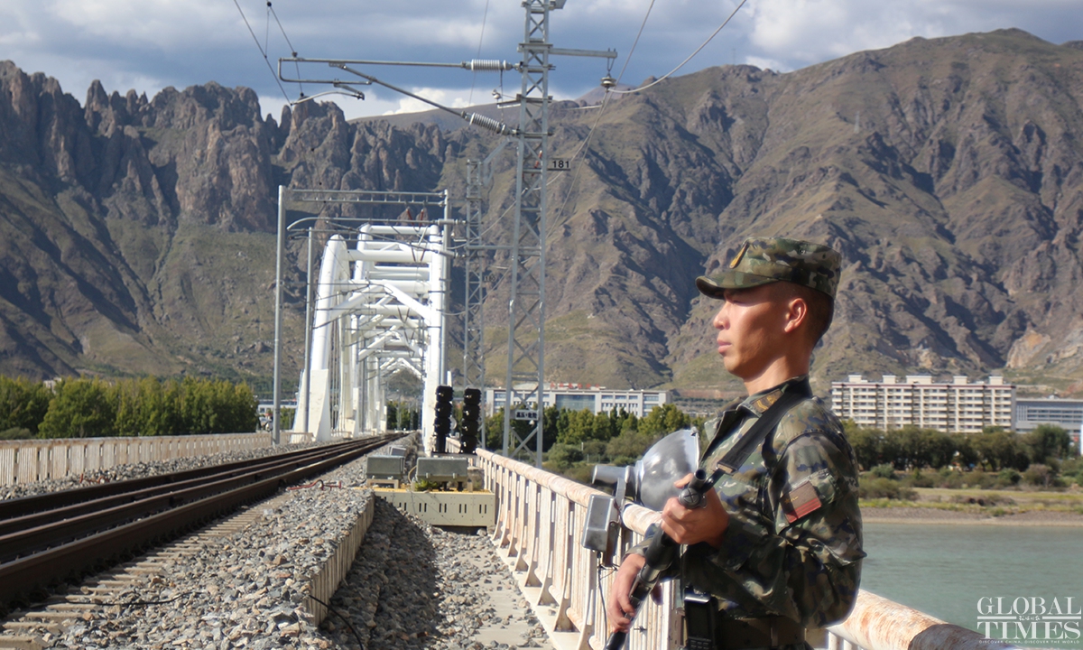 Spanning 1,956 kilometers, the Qinghai-Xizang Railway is the highest and longest plateau permafrost railway in the world. Since its completion and operation in 2006, the 8th Battalion of the Lhasa Detachment of the Xizang Armed Police Corps has been committed to safeguarding this vital railway on the snowy plateau. In the past 18 years, the Qinghai-Xizang Railway has transported a total of 37.6223 million passenger trips to and from Xizang and 8.92537 million tons of cargo in and out of Xizang, as of August 30. Recently, Global Times reporters Liu Caiyu and Fan Wei visited the plateau to observe how the armed police have dedicated their careers to protecting Xizang's "lifeblood." (Photos: Liu Caiyu/GT)