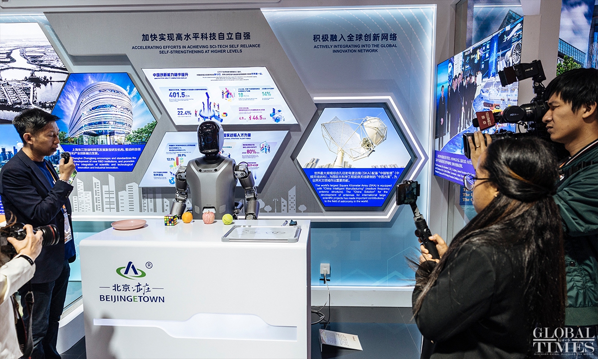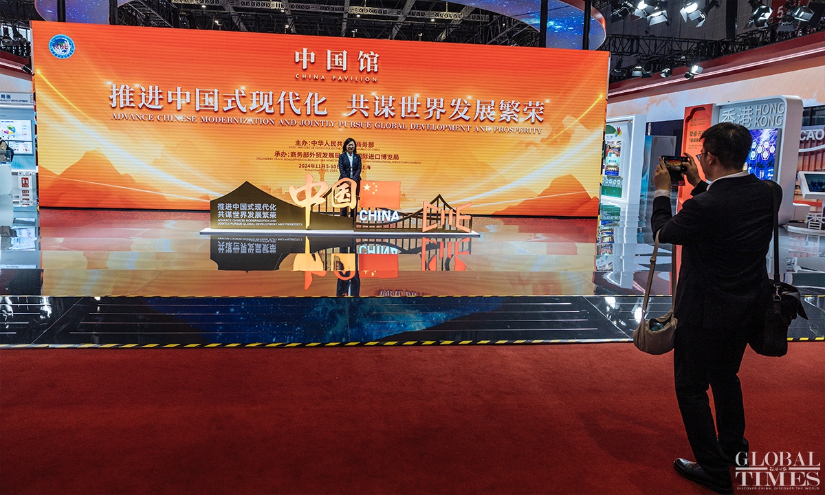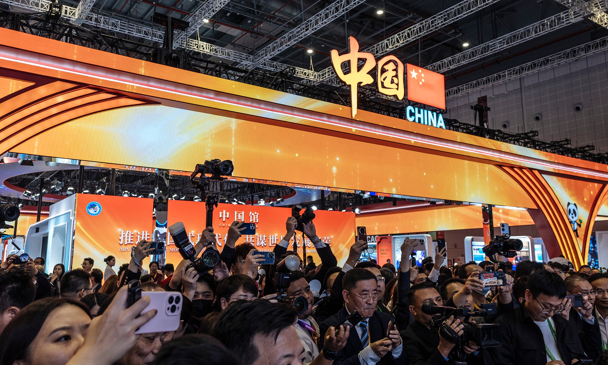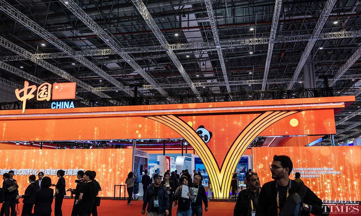 The China Pavilion at the 7th China International Import Expo(CIIE) spans a total exhibition area of 1,500 square meters, with a focus on showcasing the remarkable achievements of the 75 years since the founding of the People’s Republic of China. Focusing on popular fields such as artificial intelligence and new energy, it underscores the crucial role of new quality productive forces in driving high-quality development. (Photos: Li Hao/GT)