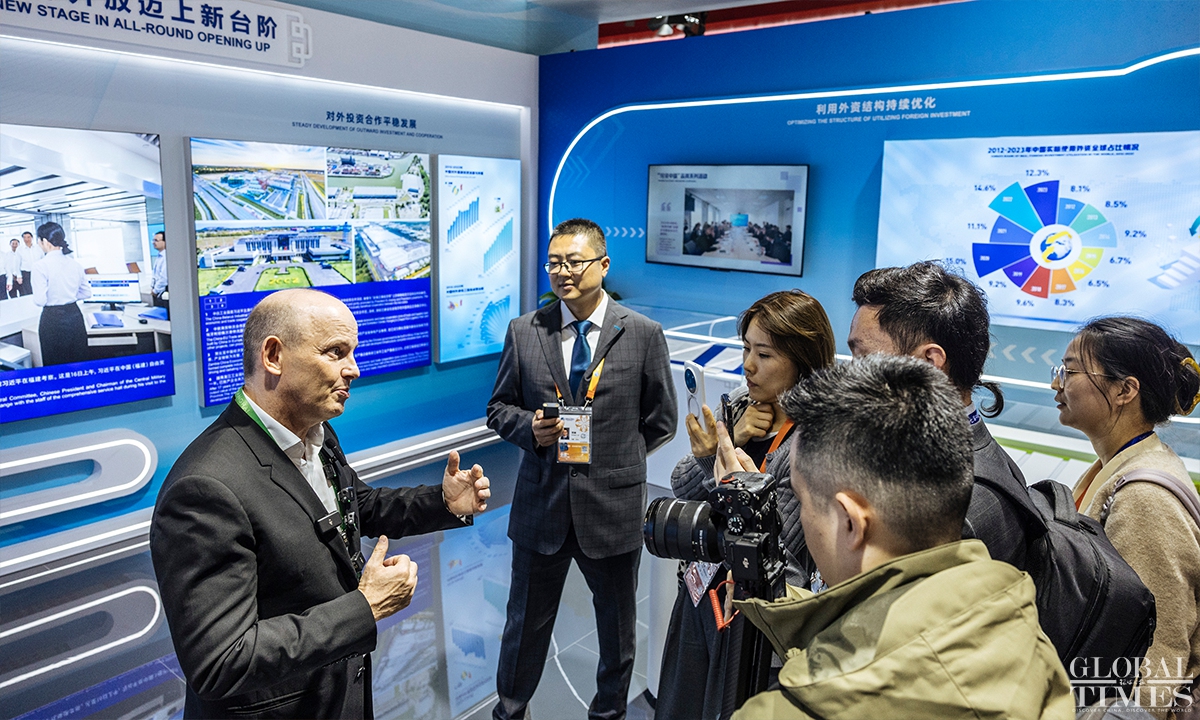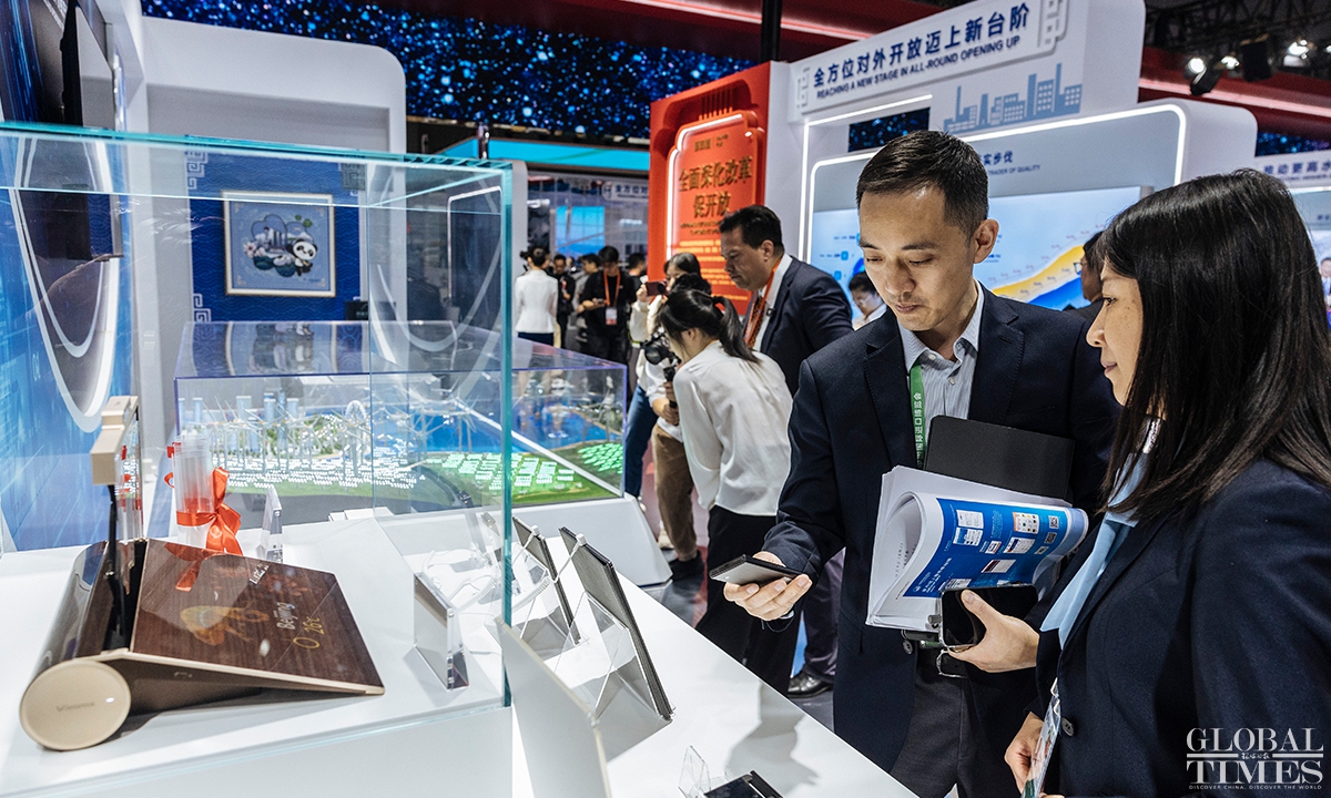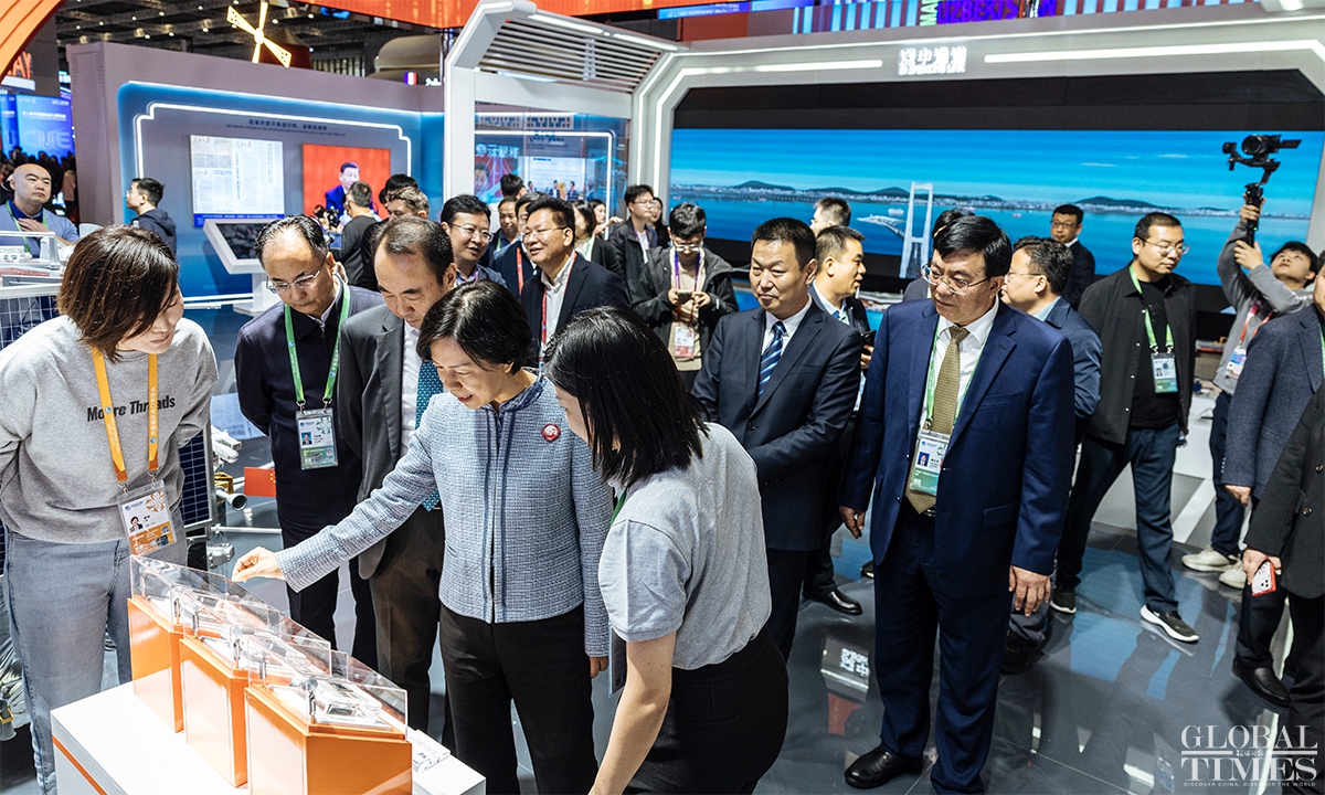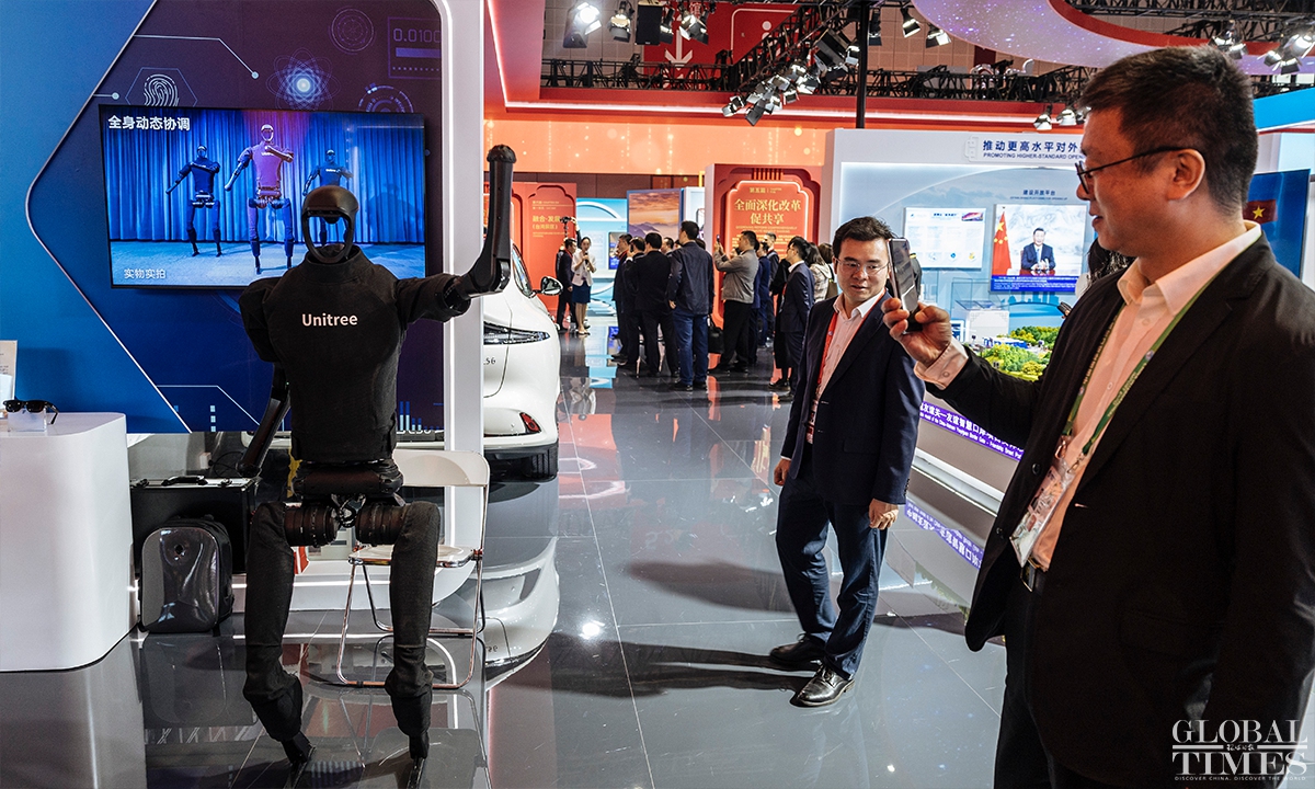 The China Pavilion at the 7th China International Import Expo(CIIE) spans a total exhibition area of 1,500 square meters, with a focus on showcasing the remarkable achievements of the 75 years since the founding of the People’s Republic of China. Focusing on popular fields such as artificial intelligence and new energy, it underscores the crucial role of new quality productive forces in driving high-quality development. (Photos: Li Hao/GT)