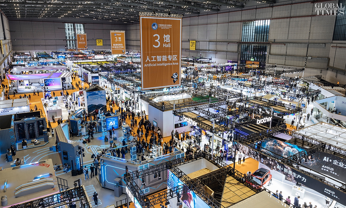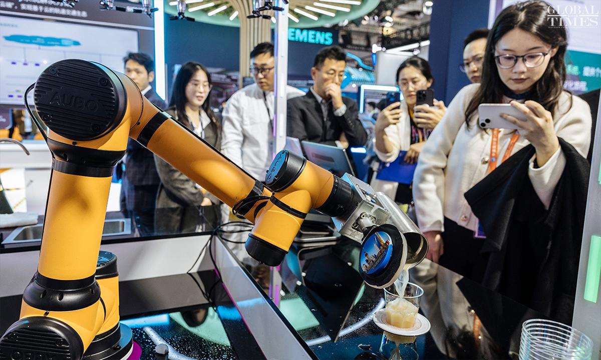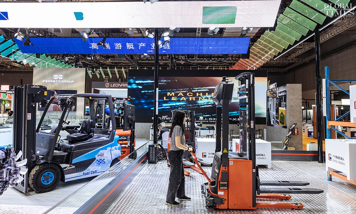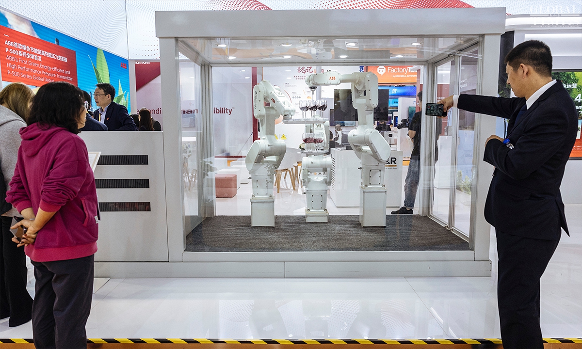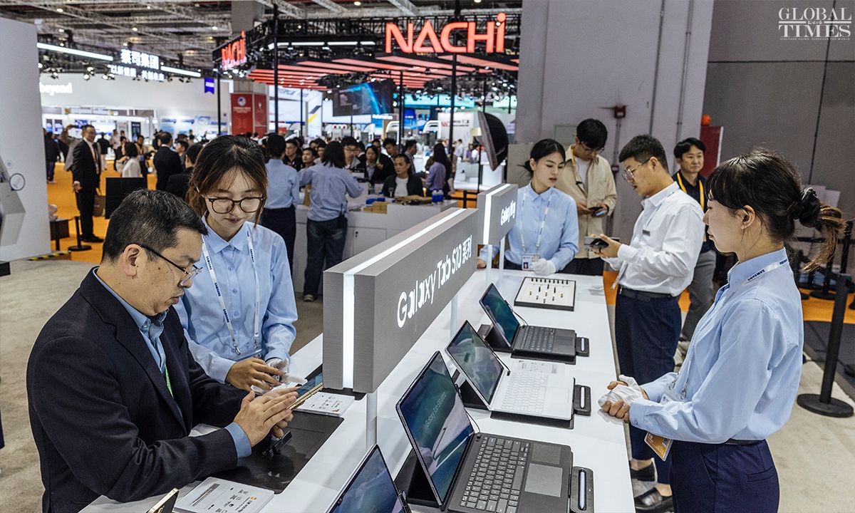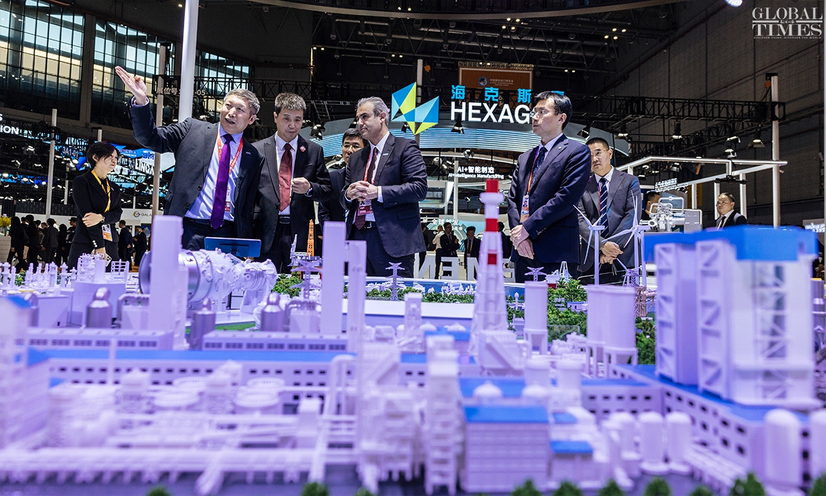 The technology and equipment area at the 7th China International Import Expo(CIIE) highlights new quality productive forces, with a focus on three main themes: technology, industry, and environmental protection. For the first time, the technology and equipment area features a new materials sector, creating an international platform for sharing innovative resources in the new materials industry. (Photos: Li Hao/GT)