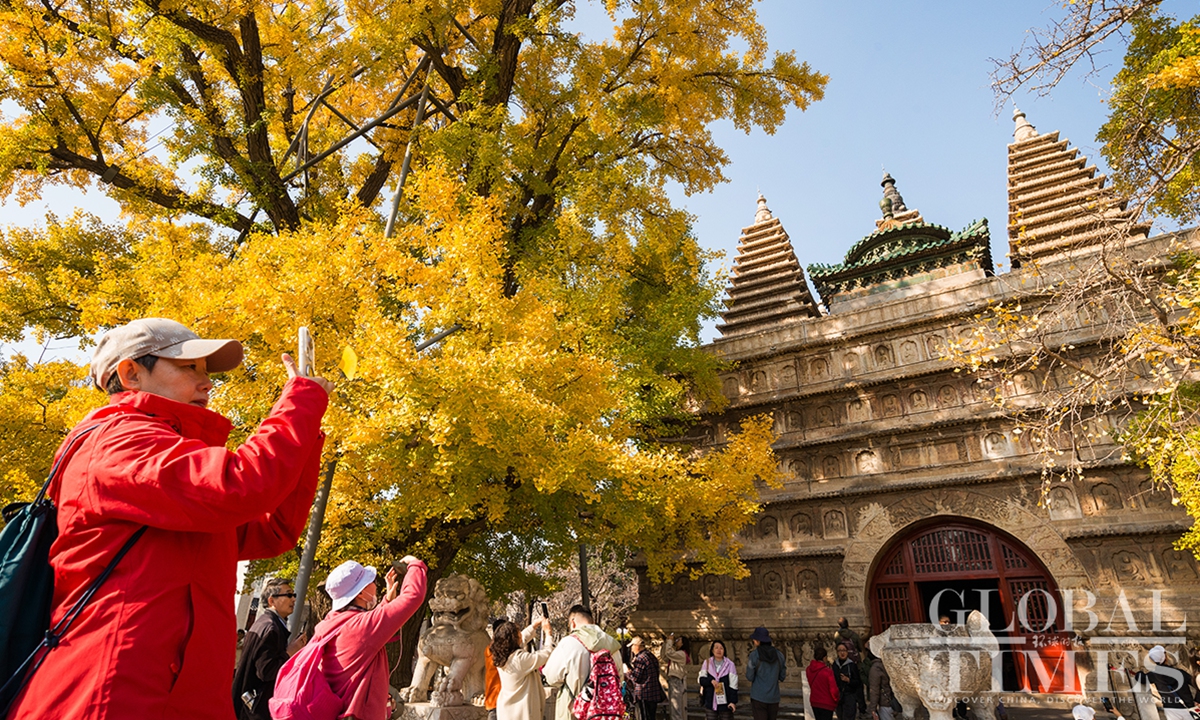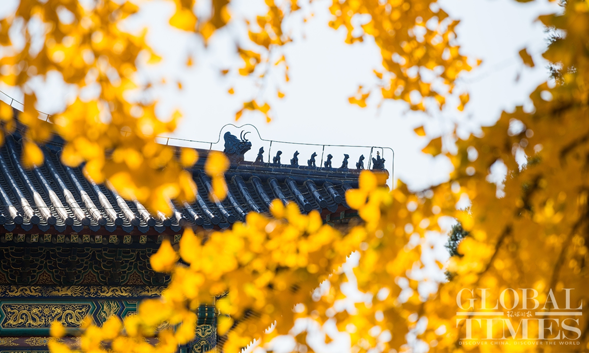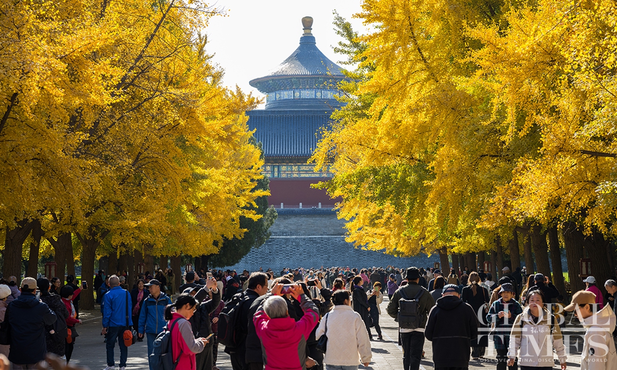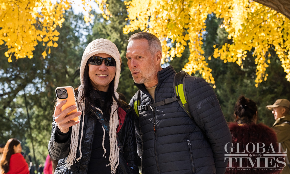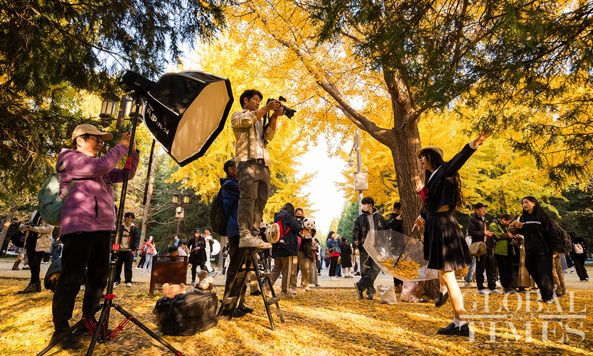 On this day, the golden hues of ginkgo leaves in Beijing's parks, green spaces, and along the roadsides reach their peak. A romantic early winter landscape unfolds, attracting residents and tourists alike to capture its poetic beauty.(Photo: Chen Tao/GT)