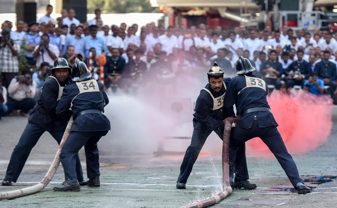 Firemen show off their skill at annual drill competition held in India’s Mumbai