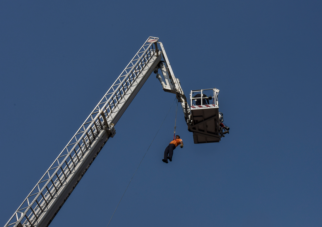 Firemen's perform rope rappelling during the annual drill competition held at Byculla Fire brigade headquarters in Mumbai, India on February 7, 2017. Photo:Kunal Patil/Hindustan Times /Getty Images/CFP figcaption >