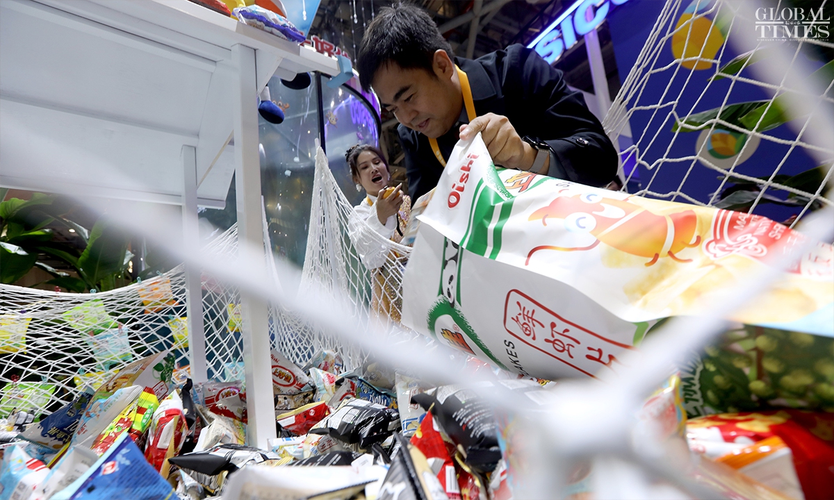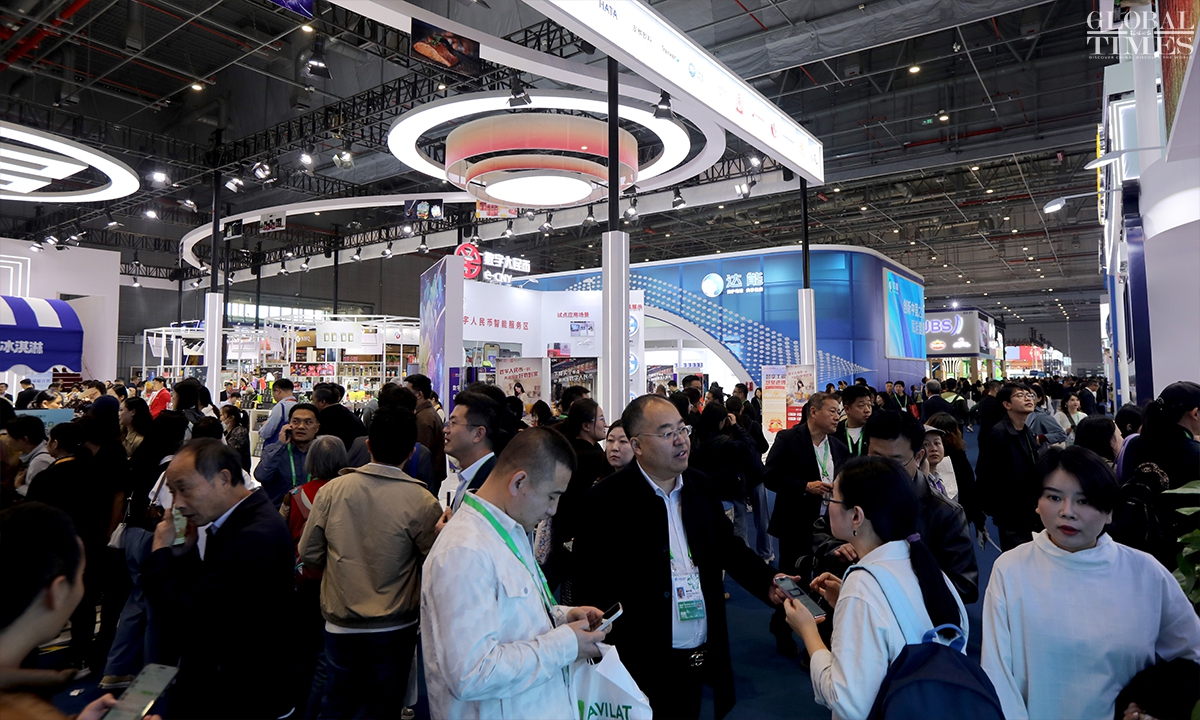 On the third day of the China International Import Expo (CIIE), there has been a lot of enthusiasm among visitors, with long queues forming outside some exhibition stands. The number of Fortune 500 companies and leading enterprises participating in the exhibition this year has reached a record high of 297. There is also increased participation by trading groups. (Photos: Chen Xia/GT)