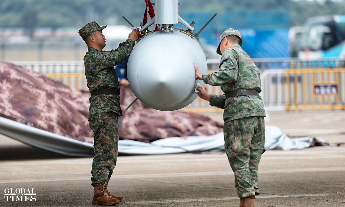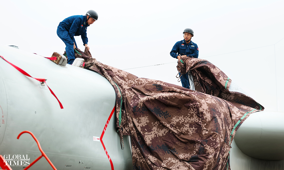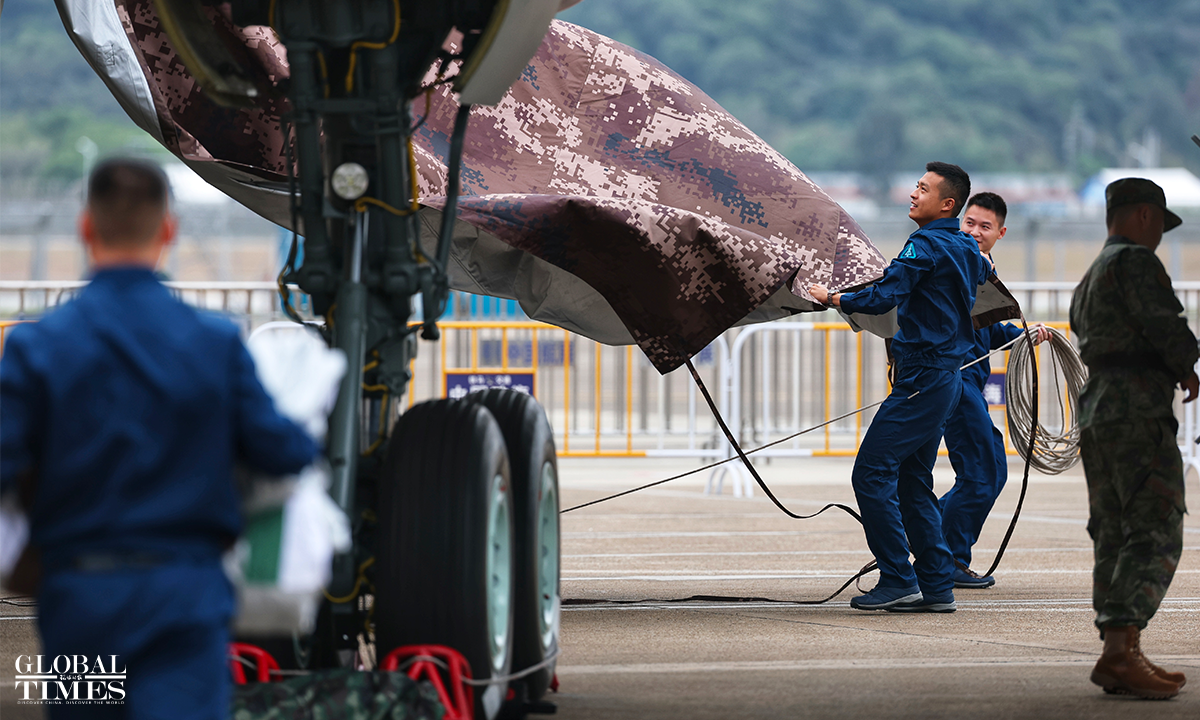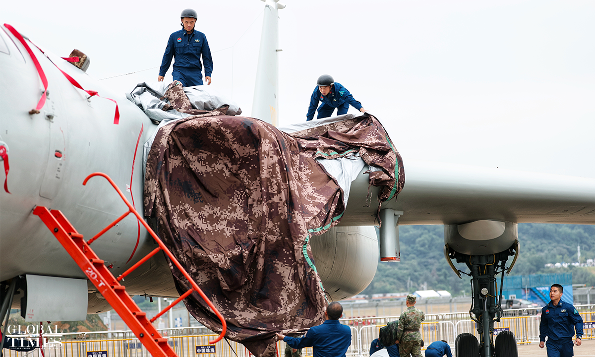With two days remaining until the official opening of the 15th Airshow China, various teams are actively making final preparations. Photos show ground crew preparing the H-6K bomber on Sunday in Zhuhai, South China's Guangdong Province. Photos: Cui Meng/GT