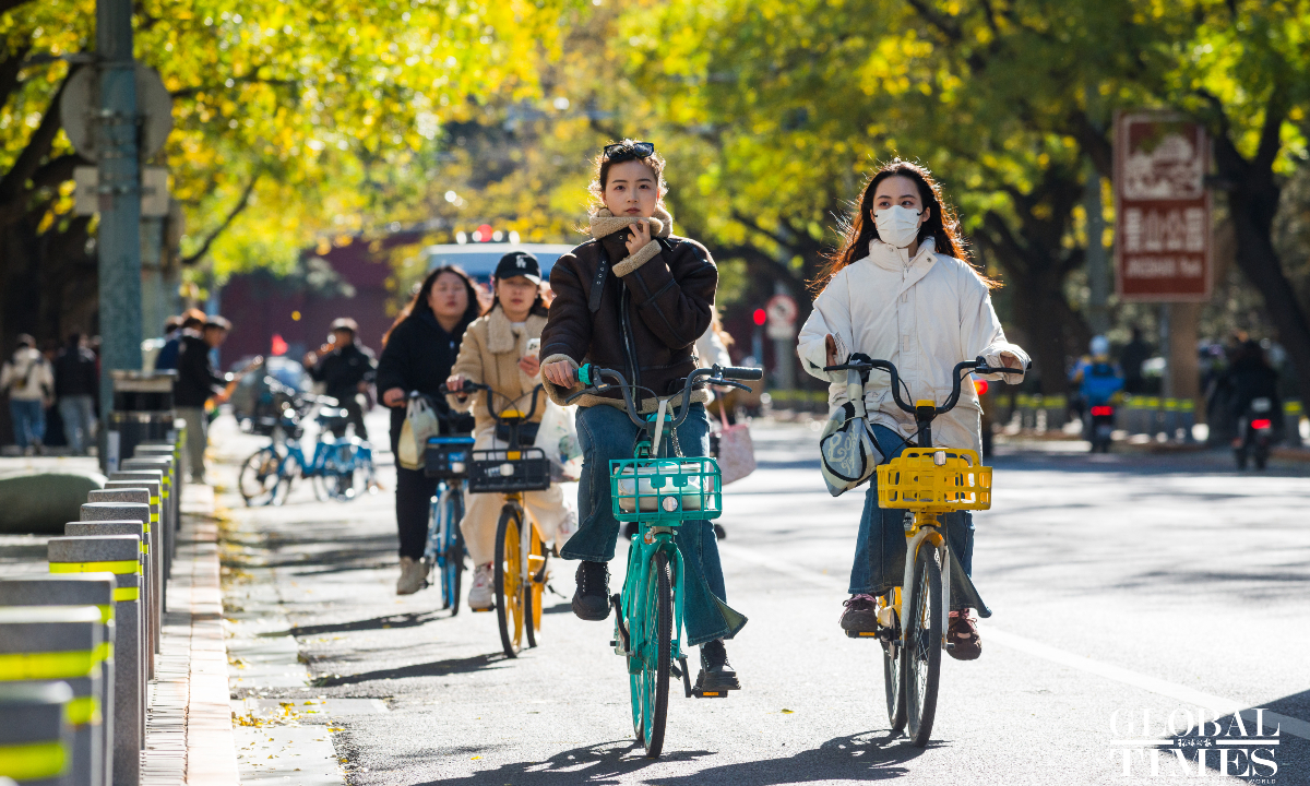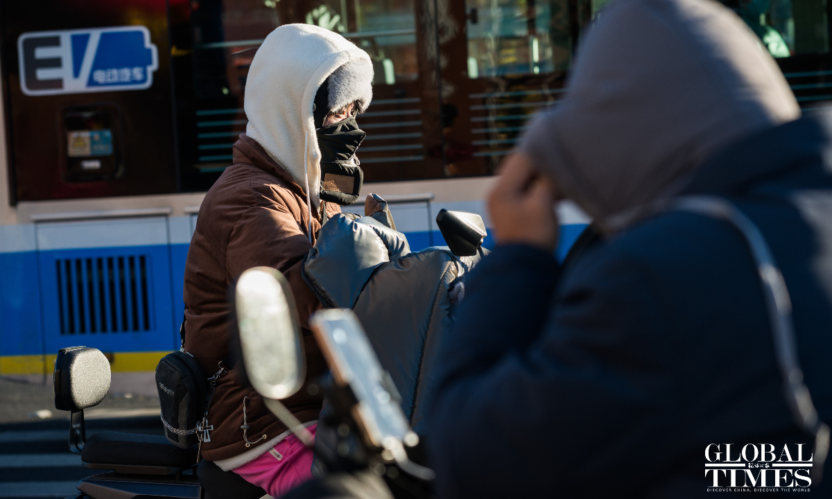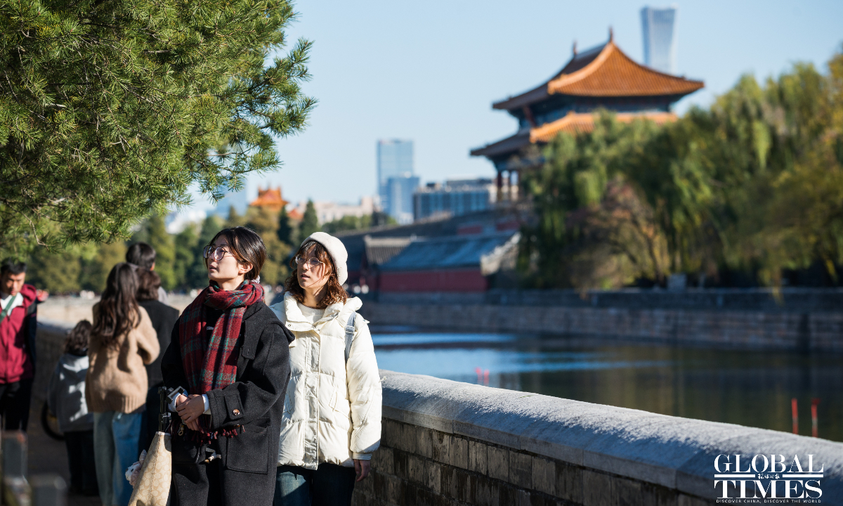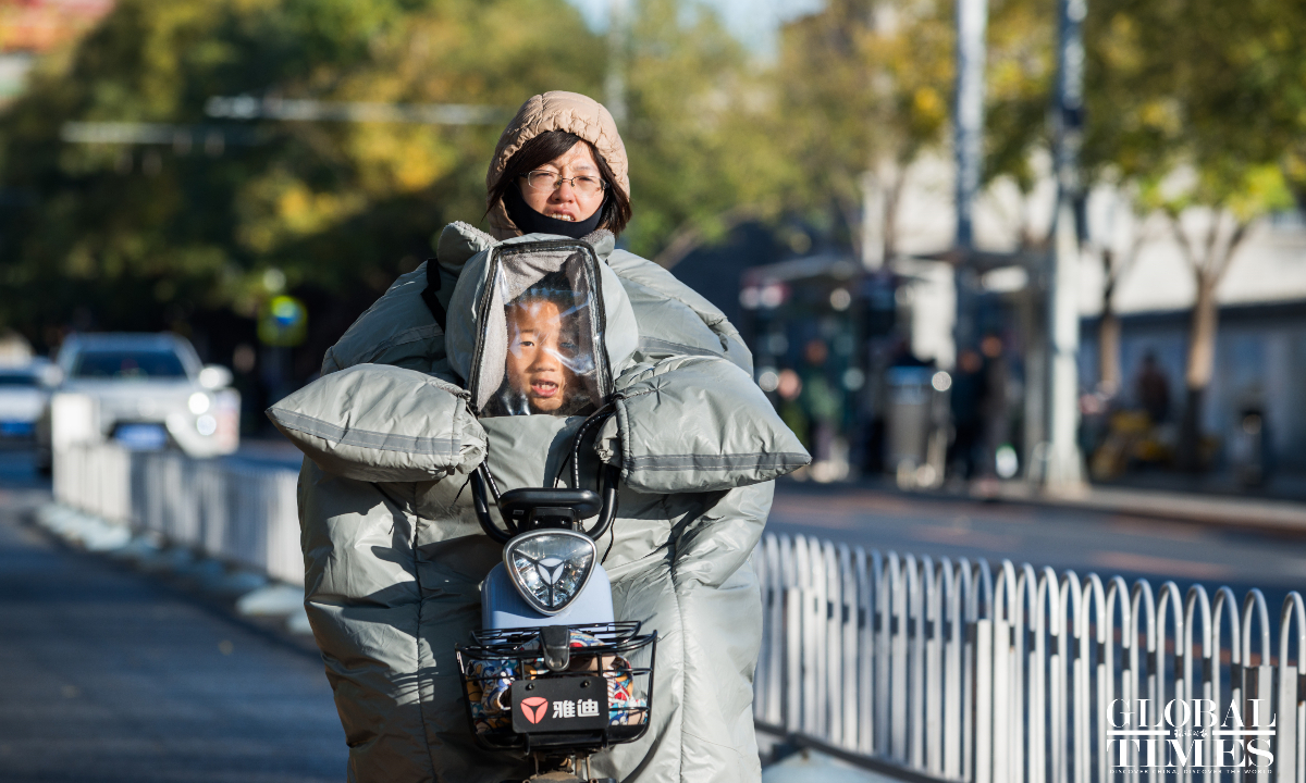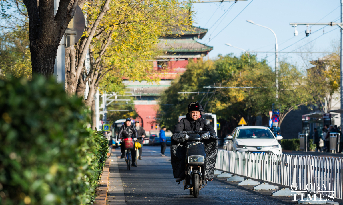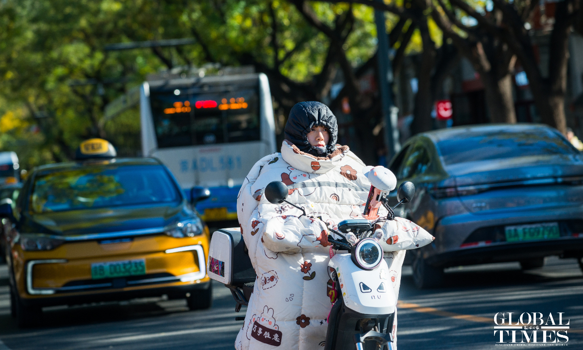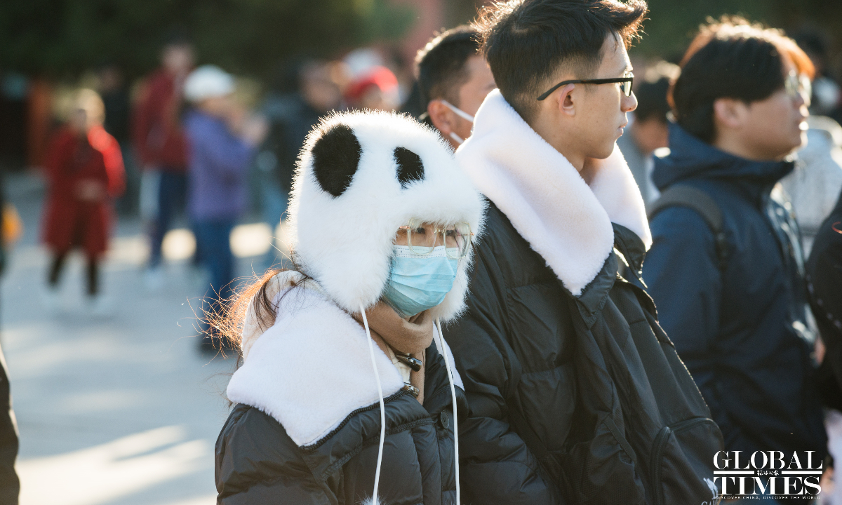 Beijing issued a blue alert for a cold wave on November 15. On November 17, a Global Times reporter observed that many citizens and tourists in the streets of Beijing were wearing winter hats, scarves, and gloves, fully prepared to withstand the sudden cold. The Beijing Meteorological Observatory expects that the night of November 17 will drop to -2 C. (Photos: Chen Tao/GT)