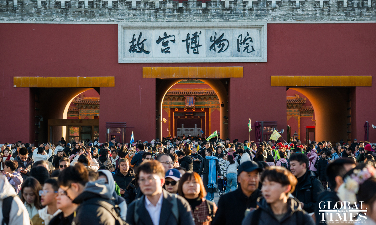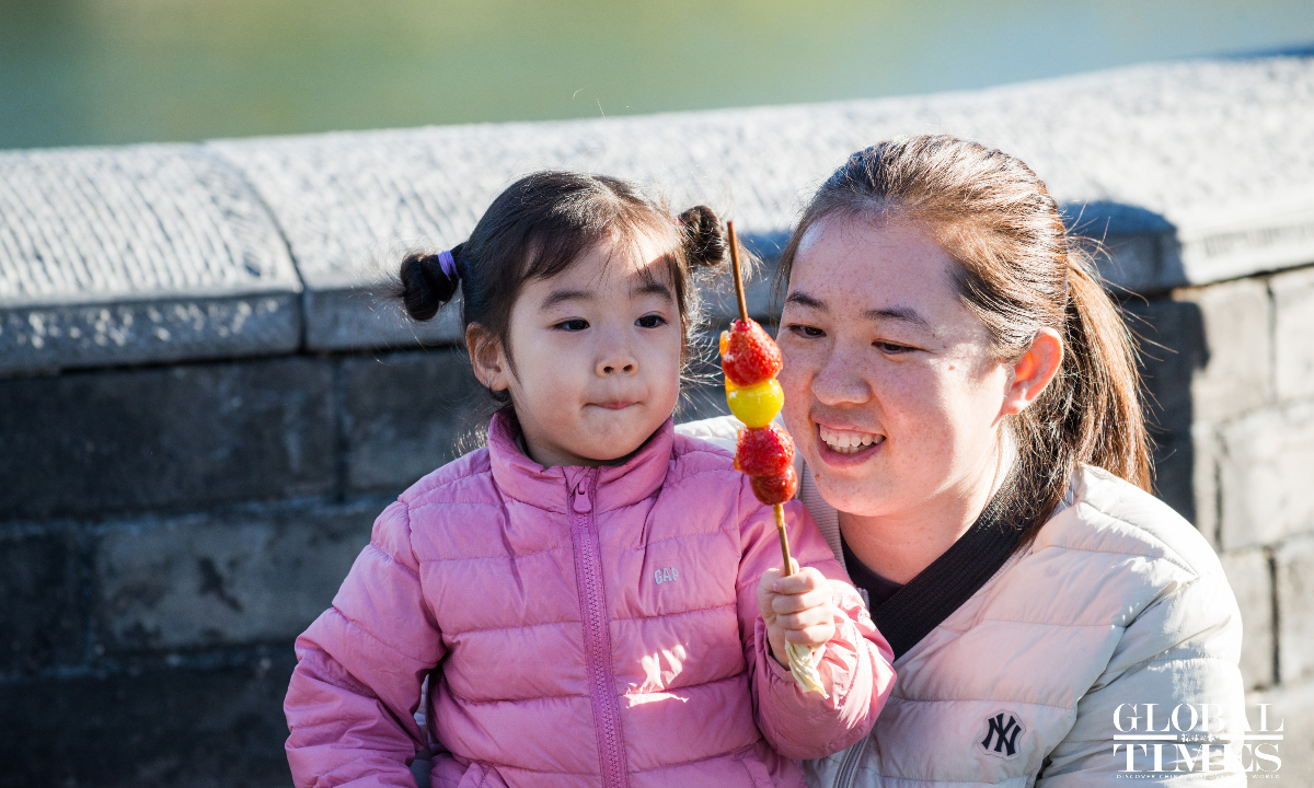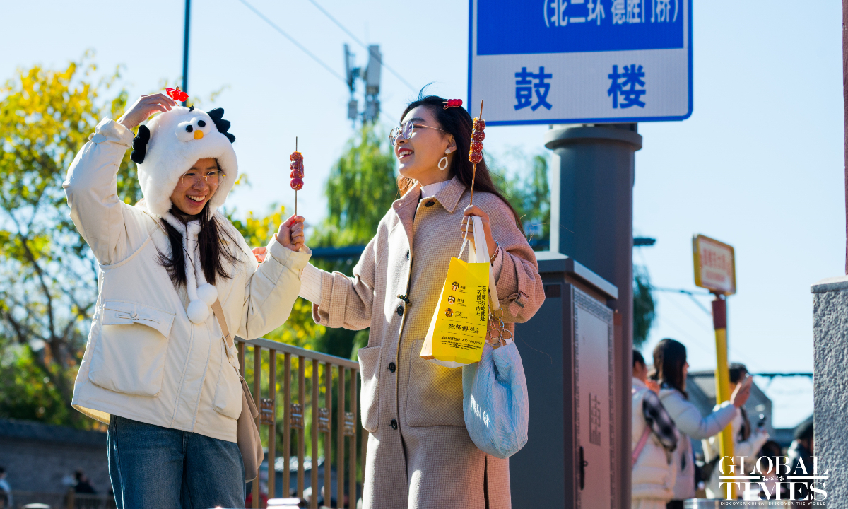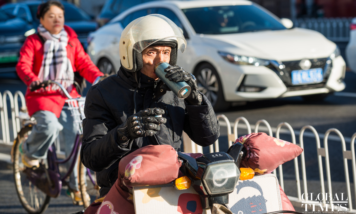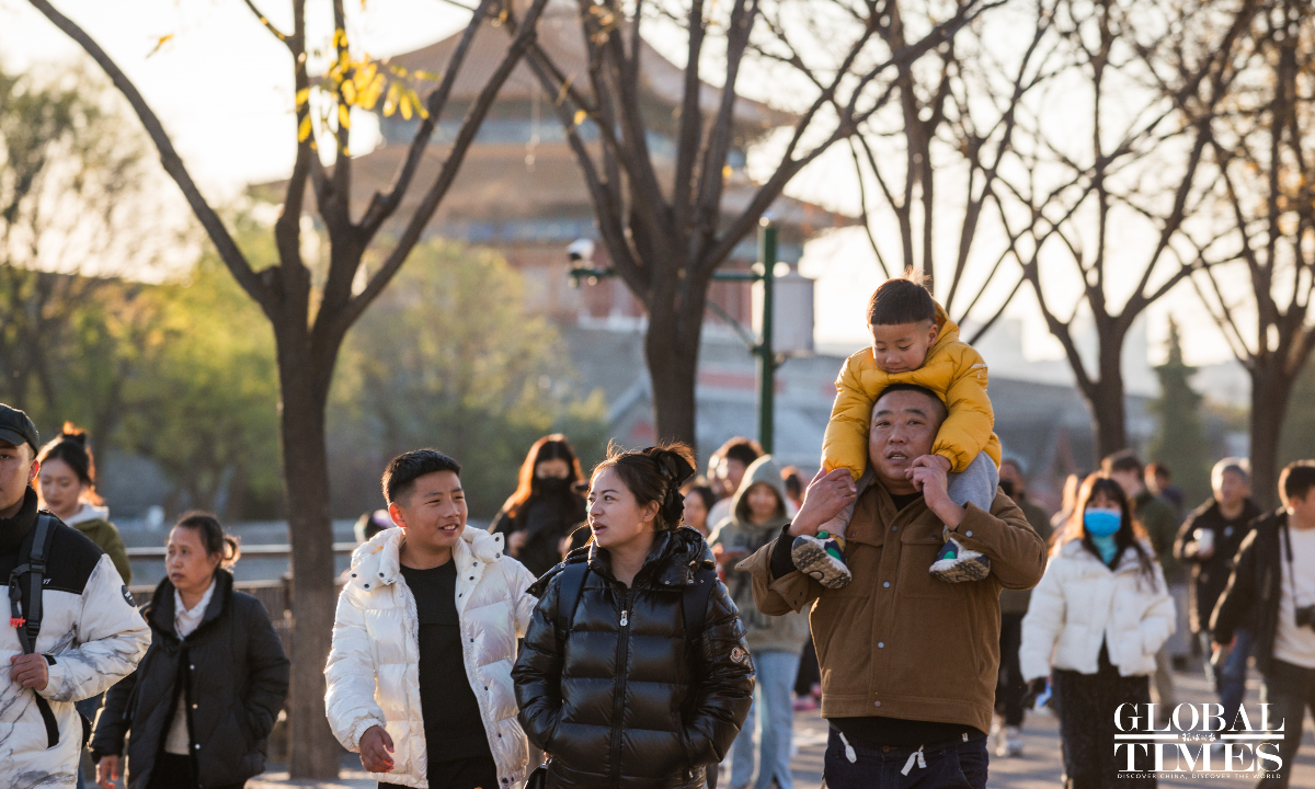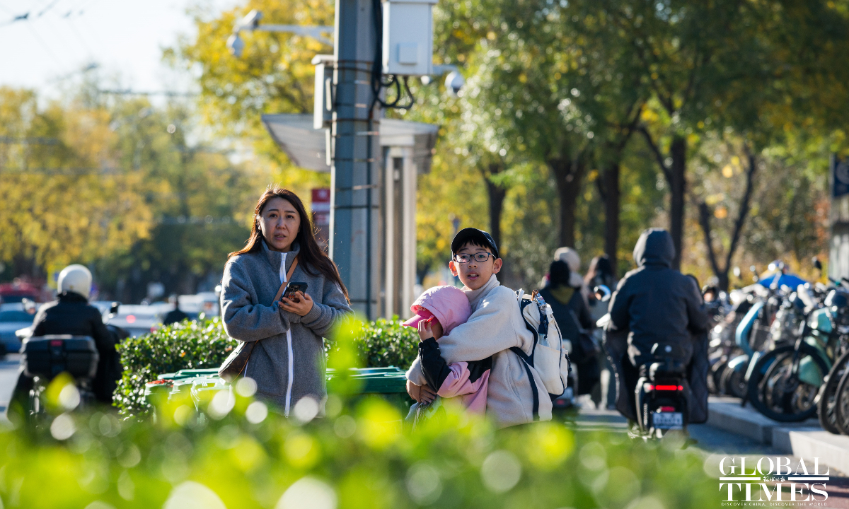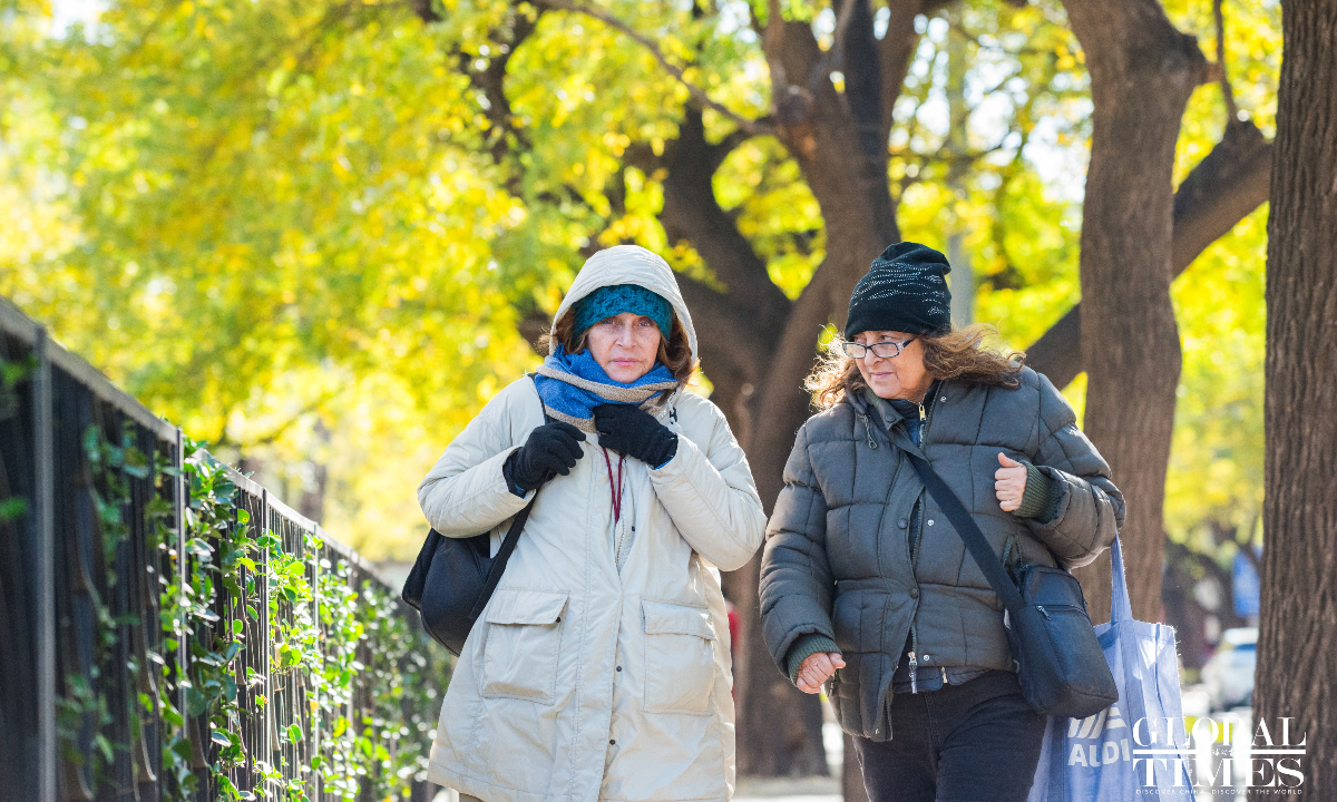 Beijing issued a blue alert for a cold wave on November 15. On November 17, a Global Times reporter observed that many citizens and tourists in the streets of Beijing were wearing winter hats, scarves, and gloves, fully prepared to withstand the sudden cold. The Beijing Meteorological Observatory expects that the night of November 17 will drop to -2 C. (Photos: Chen Tao/GT)