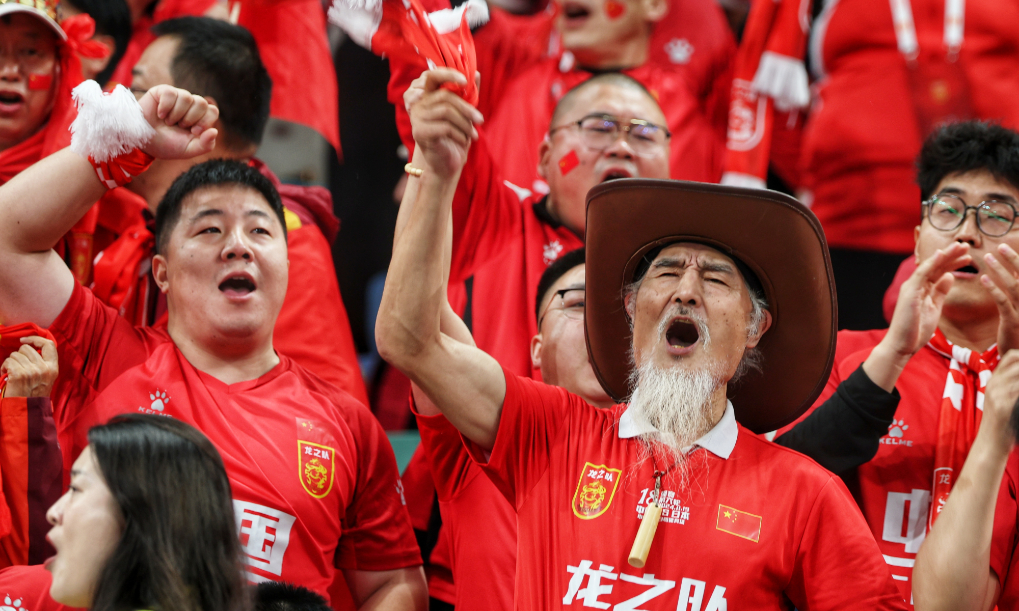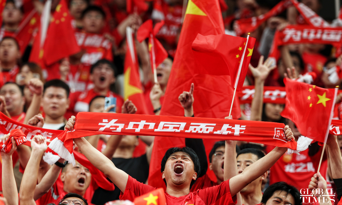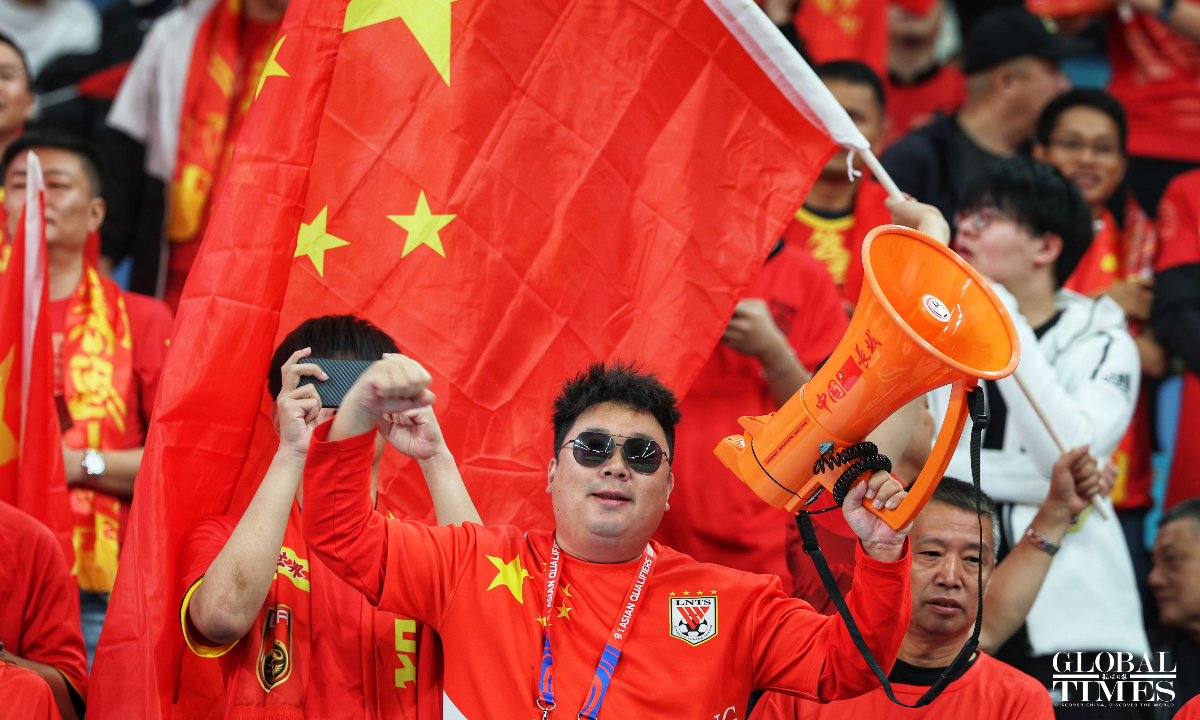 The Chinese national football team will face Japan in a World Cup Asian qualifier at 8 pm on Tuesday at the Egret Stadium in Xiamen, East China's Fujian Province. GT reporters captured images of football fans at the scene. (Photos: Cui Meng/GT)