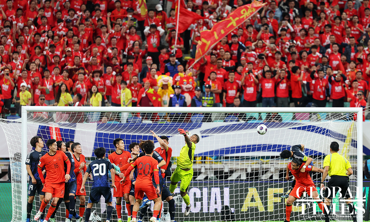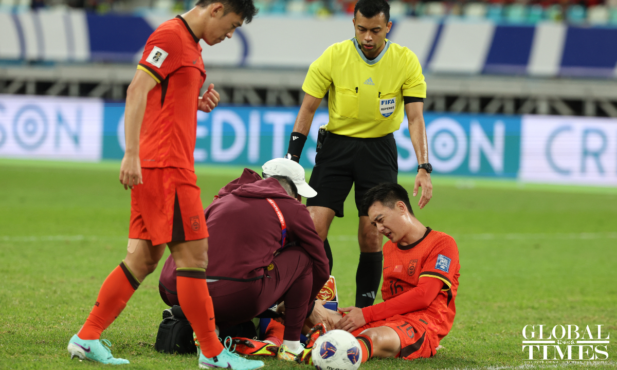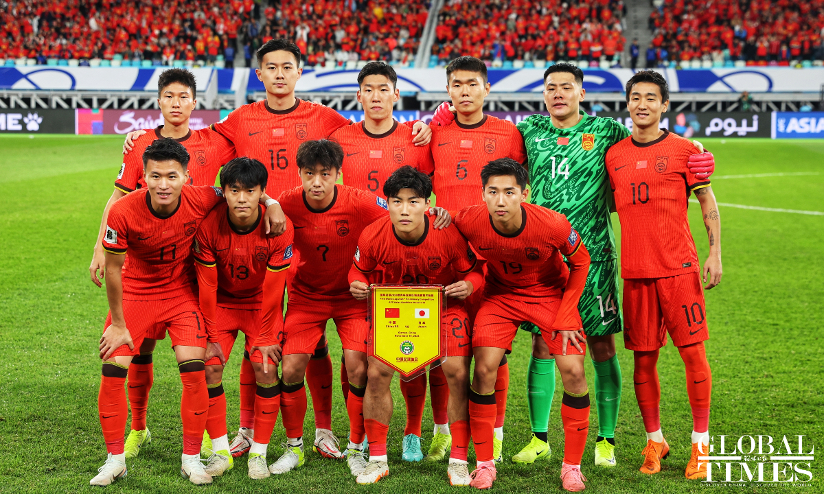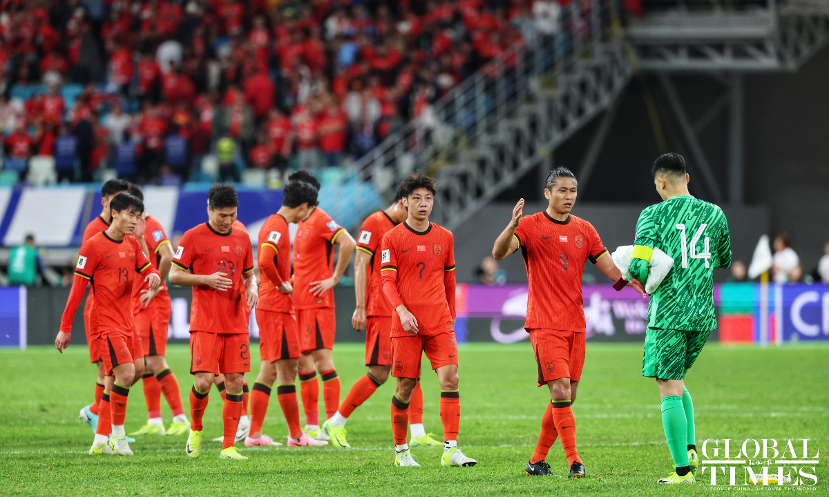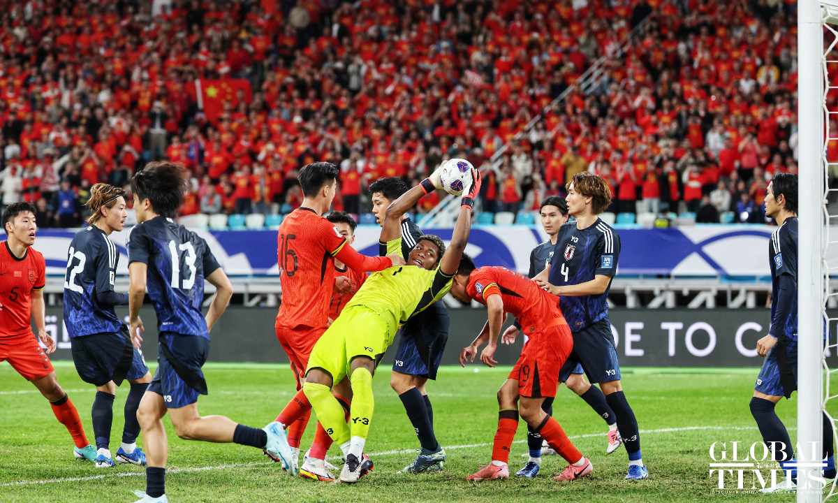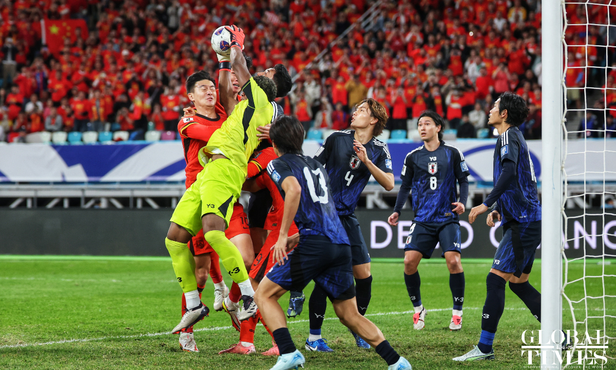 On November 19, during the sixth round of Group C of the third stage of the FIFA World Cup Asian Qualifier, China hosted Japan at Xiamen’s Egret Stadium. After a fierce battle, the Chinese team ultimately lost 1-3 to Japan. Three minutes into the second half, China's Xie Wenneng dribbled past two defenders, and Wei Shihao assisted Lin Liangming in scoring. (Photos: Cui Meng/GT)