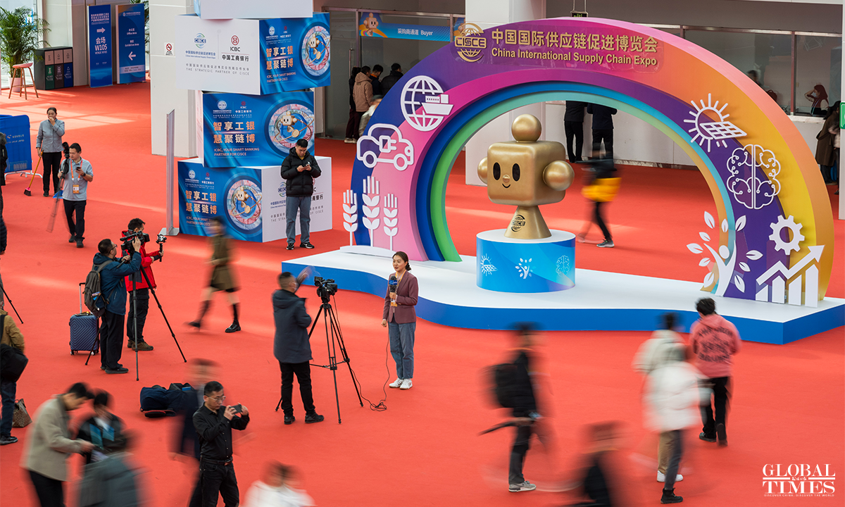 The second China International Supply Chain Expo (CISCE) opened at the China International Exhibition Center (Shunyi Venue) in Beijing on Tuesday. The Expo is the world's first national-level exhibition dedicated to supply chains. This year's event covers an area of 120,000 square meters and features six major sectors: advanced manufacturing, clean energy, smart automobiles, digital technology, healthy living, and green agriculture, along with a dedicated area for supply chain services. Photos: Chen Tao/GT