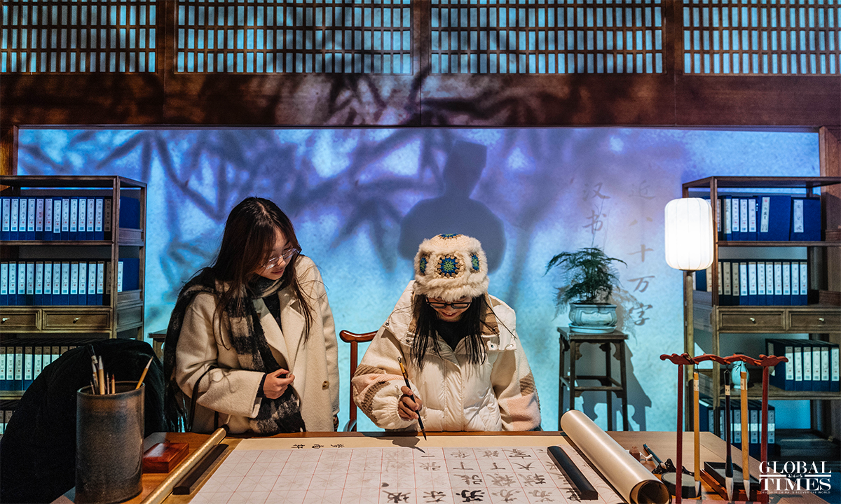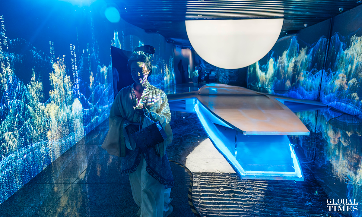 A new exhibition opened on Tuesday at the World Art Museum of China Millennium Monument to showcase the wisdom and value of China’s fine traditional culture. The digital art exhibition focuses on Su Shi, also known as Su Dongpo, one of the most important cultural figures in Chinese history. Through integration of culture and technology, it shows the life and philosophy of the time that Su lived in, as well as the poems that he created. Photos: Li Hao/GT