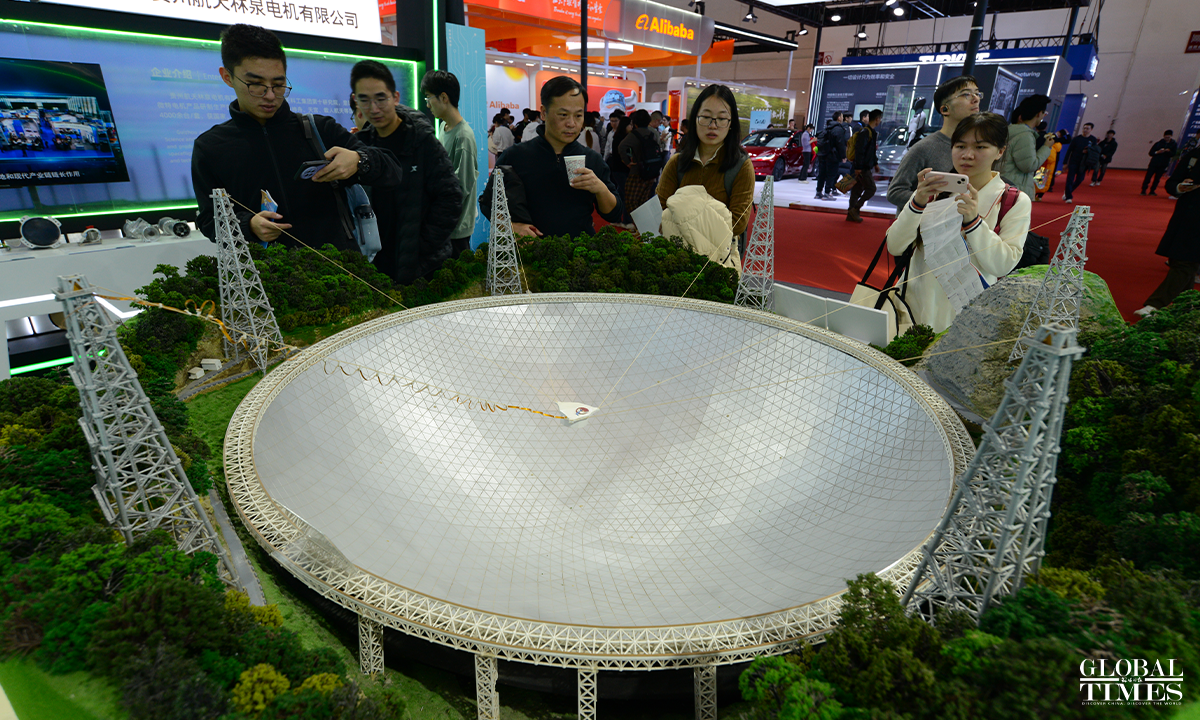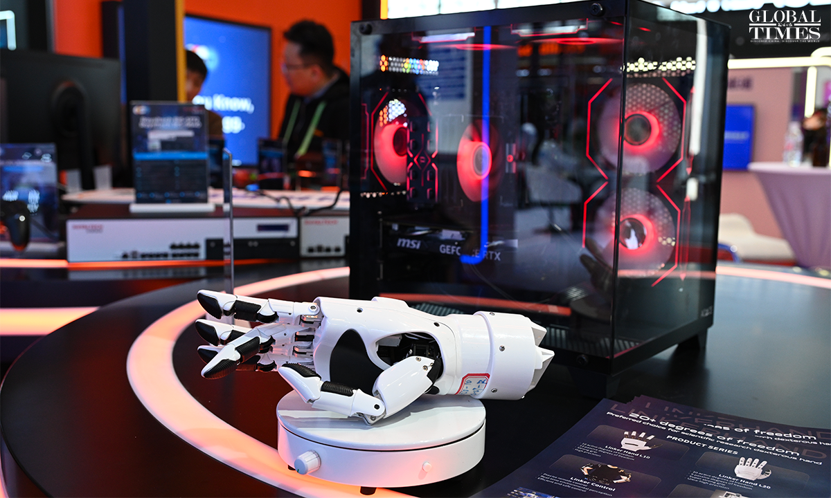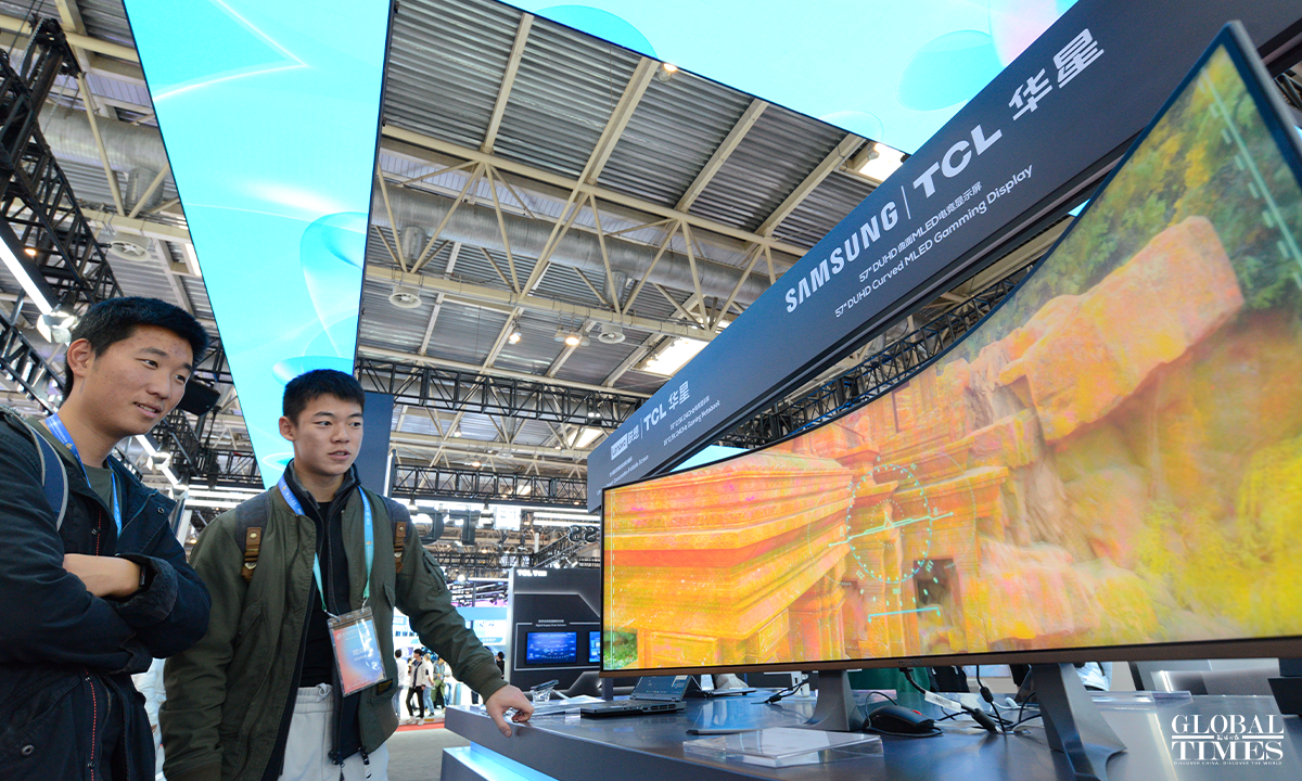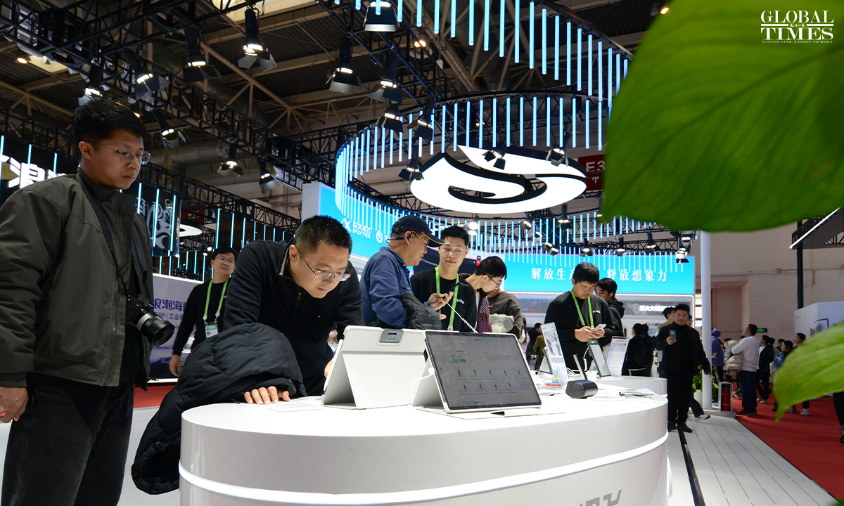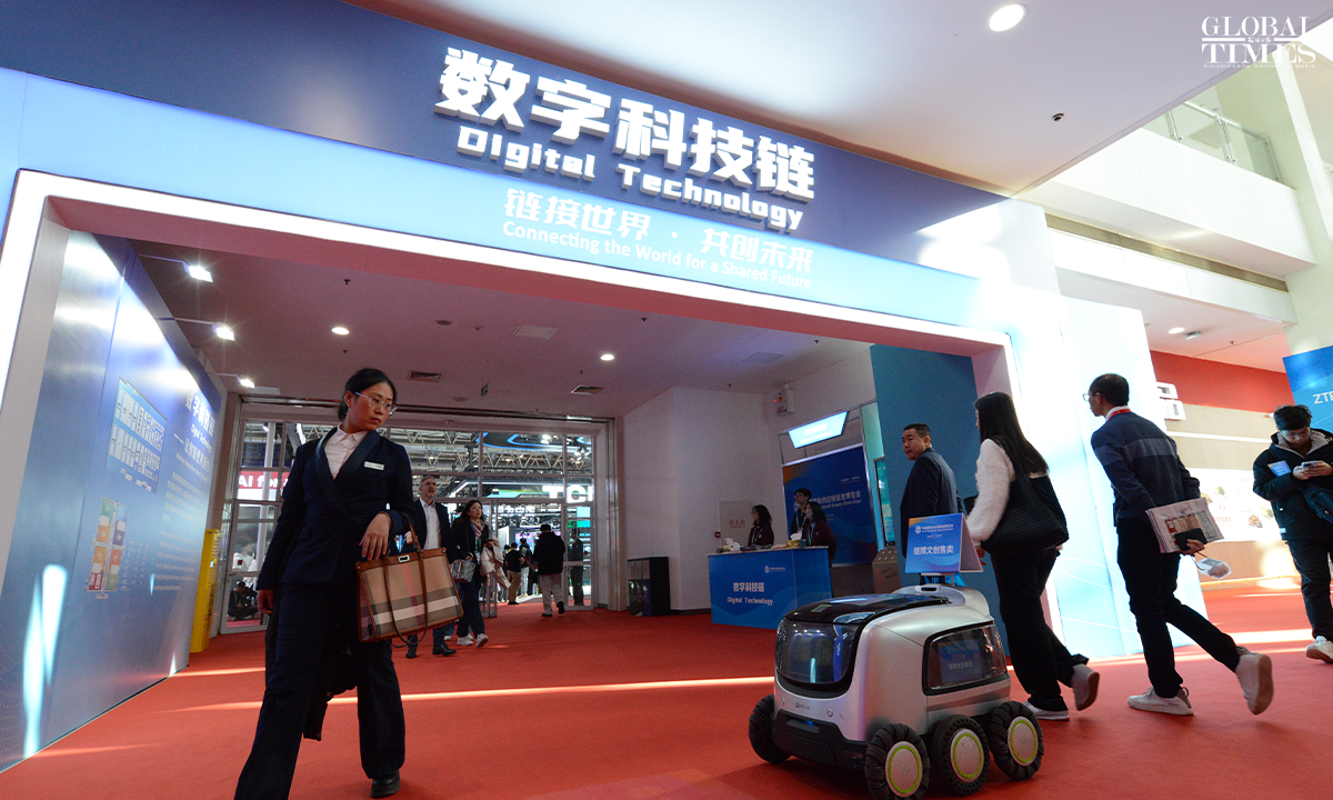 Photos show the digital technology exhibition area at the second China International Supply Chain Expo, which puts on display cutting-edge digital technologies and emerging industries. The exhibition focuses on underlying technological changes, mid-level industrial incubation, and upper-level application scenarios, connecting innovation, industry, and application, presenting the key links and content of digital economy, and promoting the in-depth integration and upgrading of digital and real economy. Photos: Chen Tao/GT