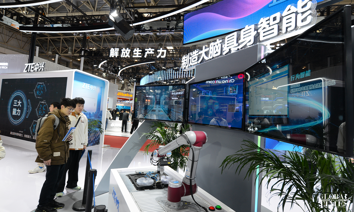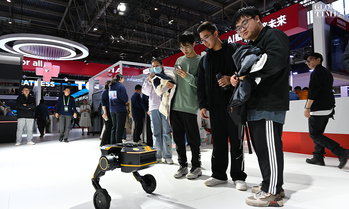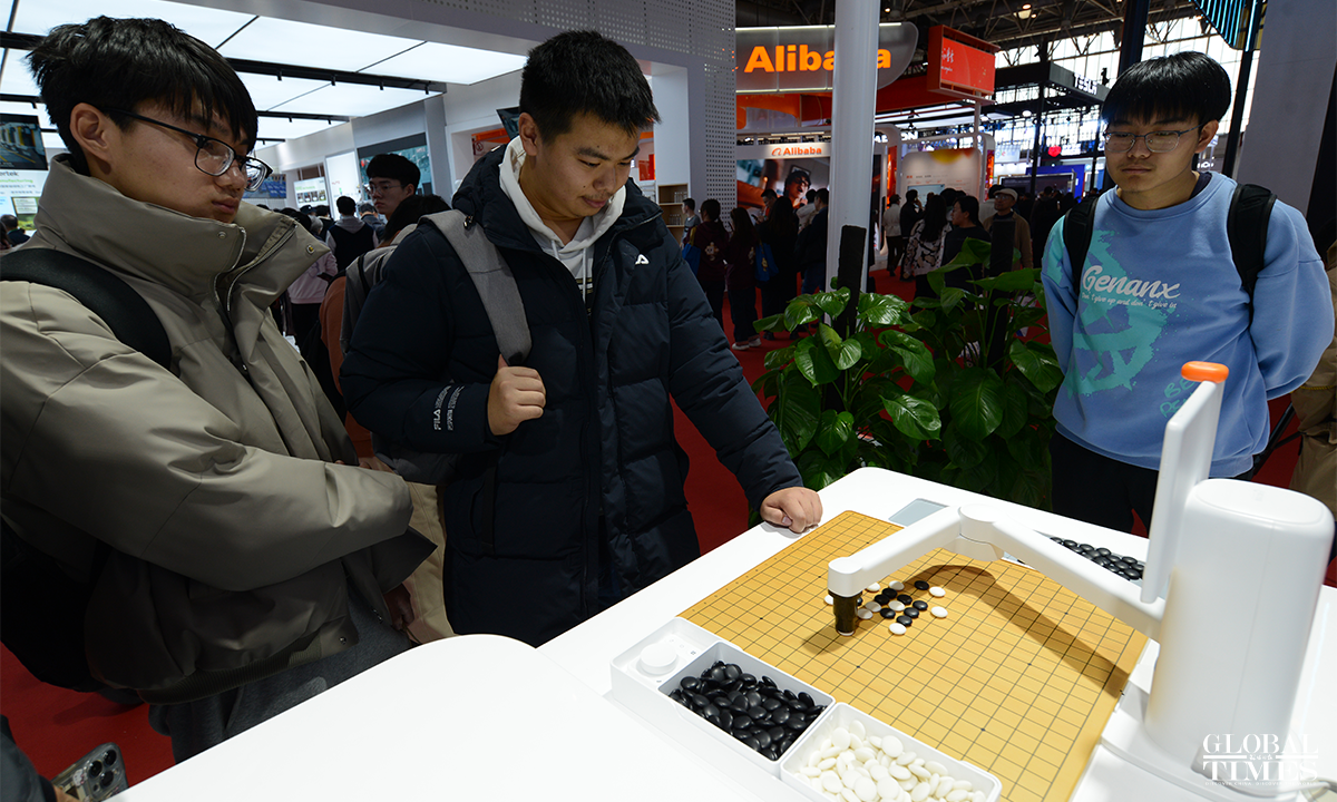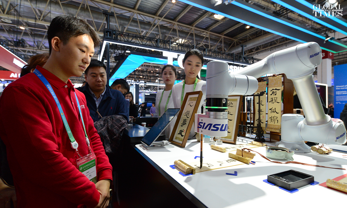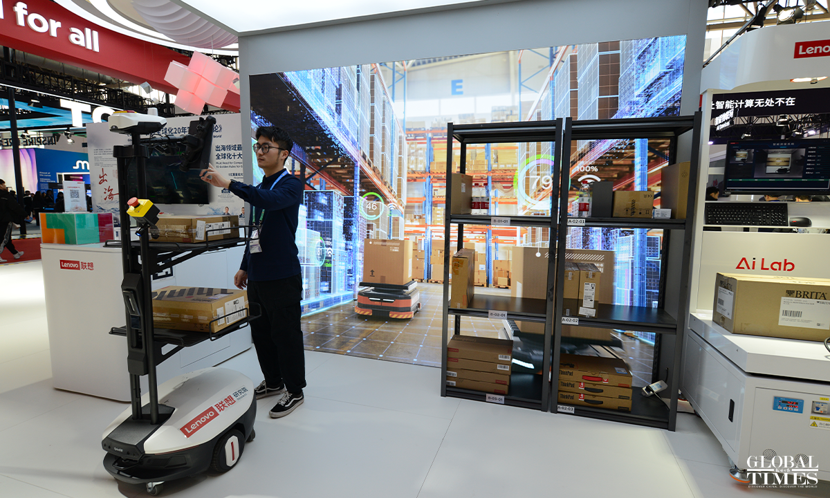 Photos show the digital technology exhibition area at the second China International Supply Chain Expo, which puts on display cutting-edge digital technologies and emerging industries. The exhibition focuses on underlying technological changes, mid-level industrial incubation, and upper-level application scenarios, connecting innovation, industry, and application, presenting the key links and content of digital economy, and promoting the in-depth integration and upgrading of digital and real economy. Photos: Chen Tao/GT