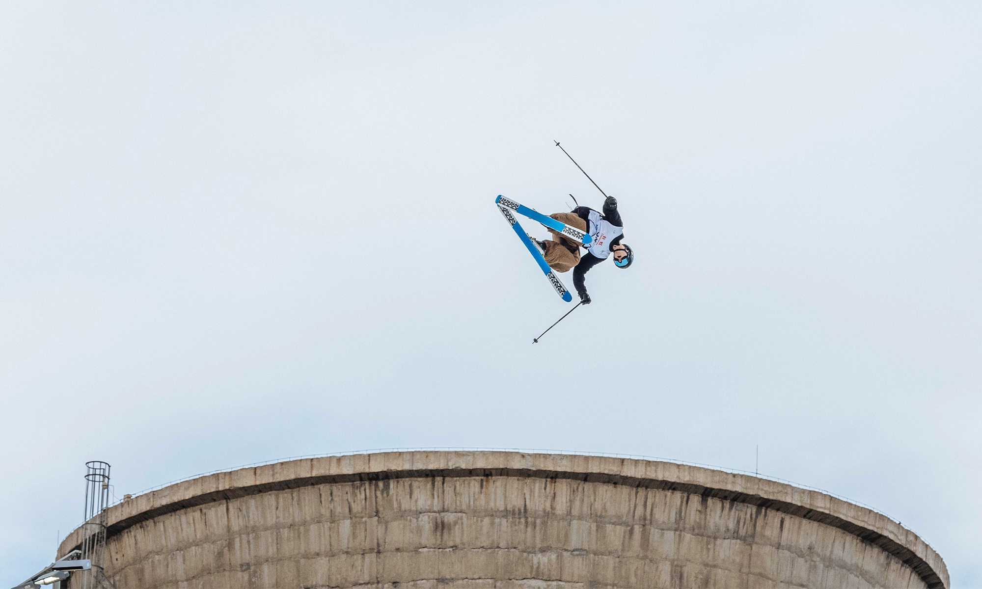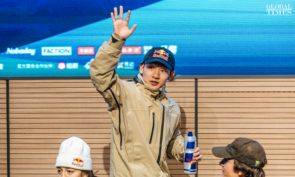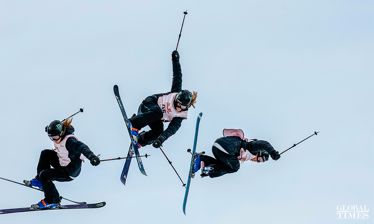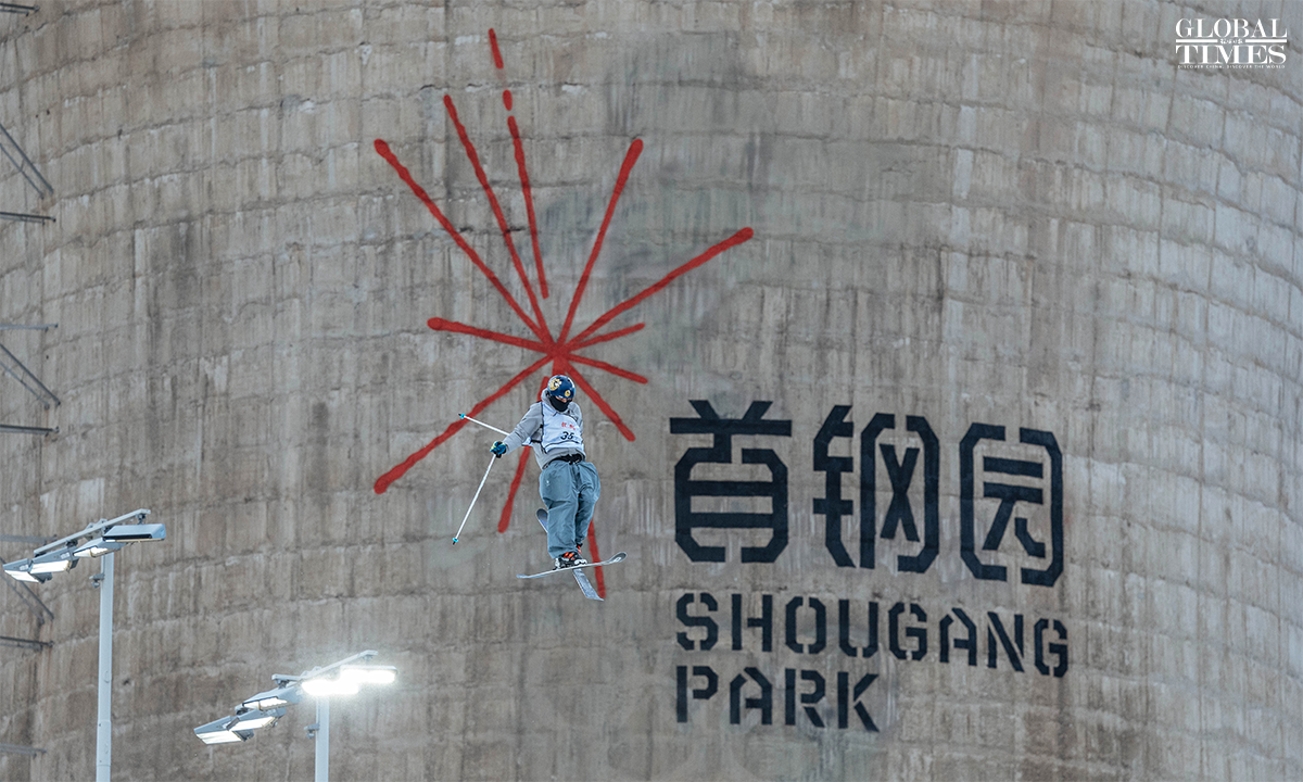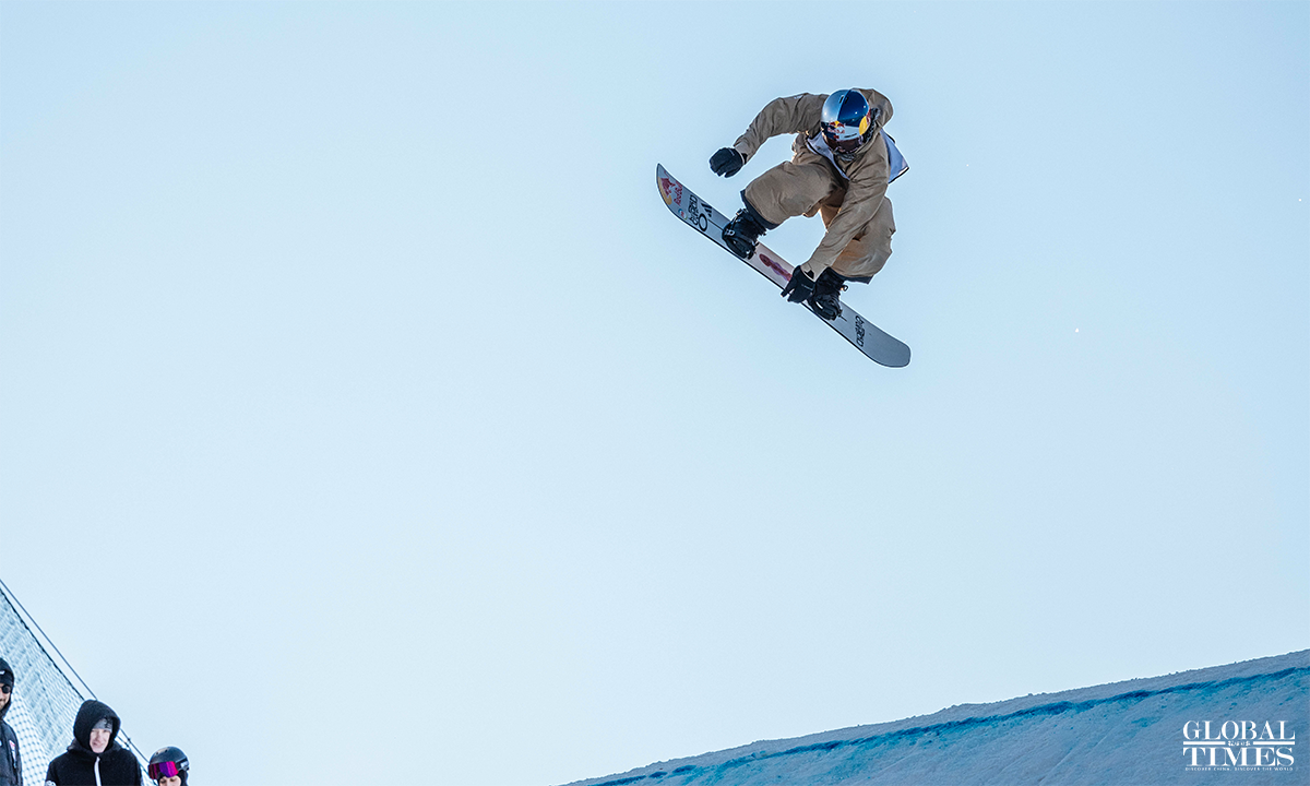 Athletes prepare for the Freeski big air World Cup at Shougang Park in Beijing on Thursday. China's Olympic champion Su Yiming (in beige), the event's marquee player, will join the competition which runs from Friday to Sunday and features 75 freestyle and 81 snowboard athletes. Photos: Li Hao/GT