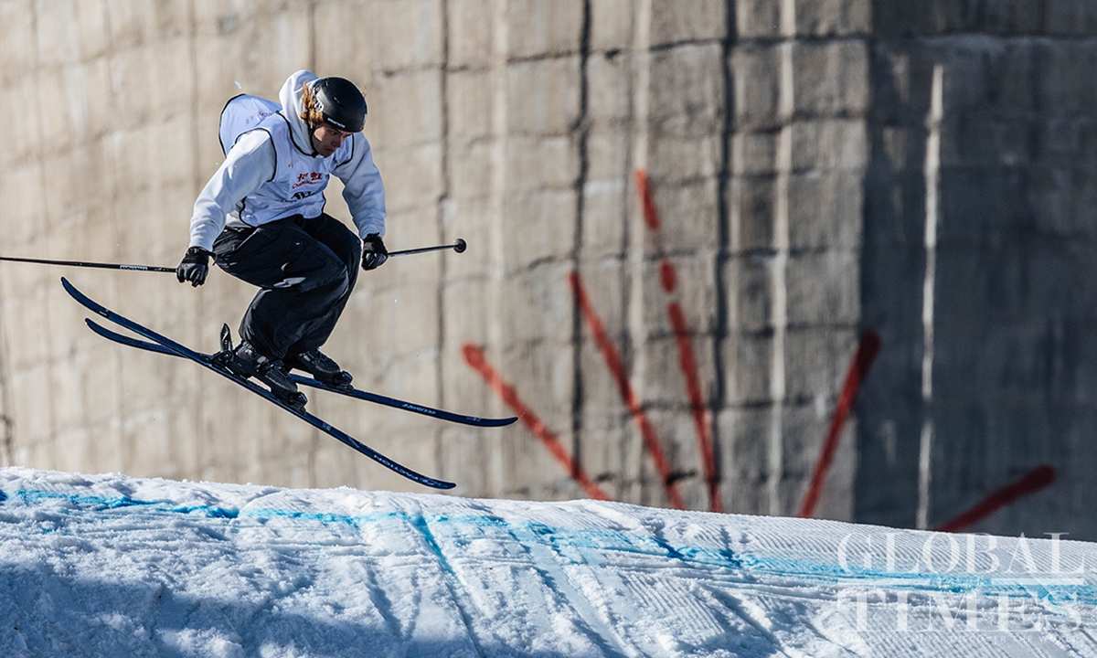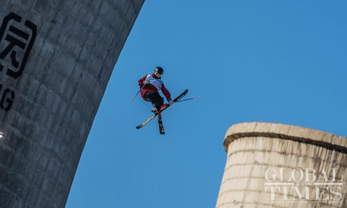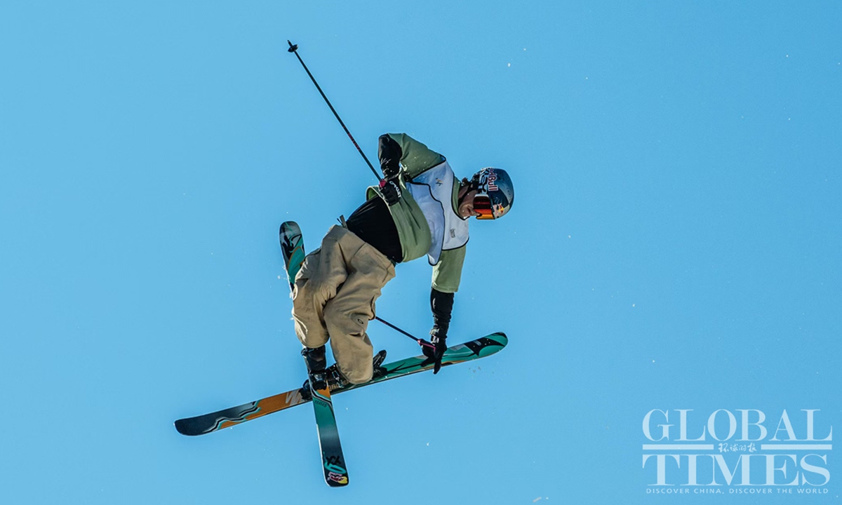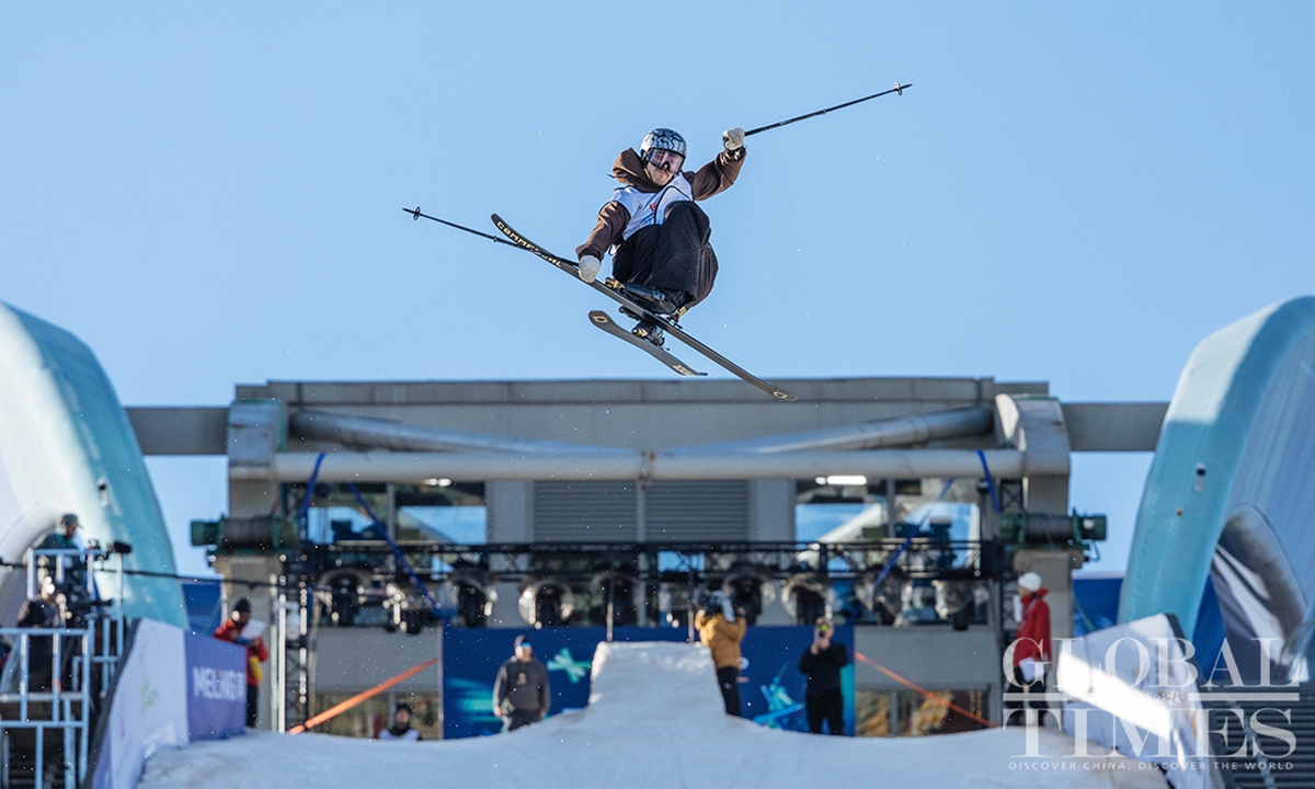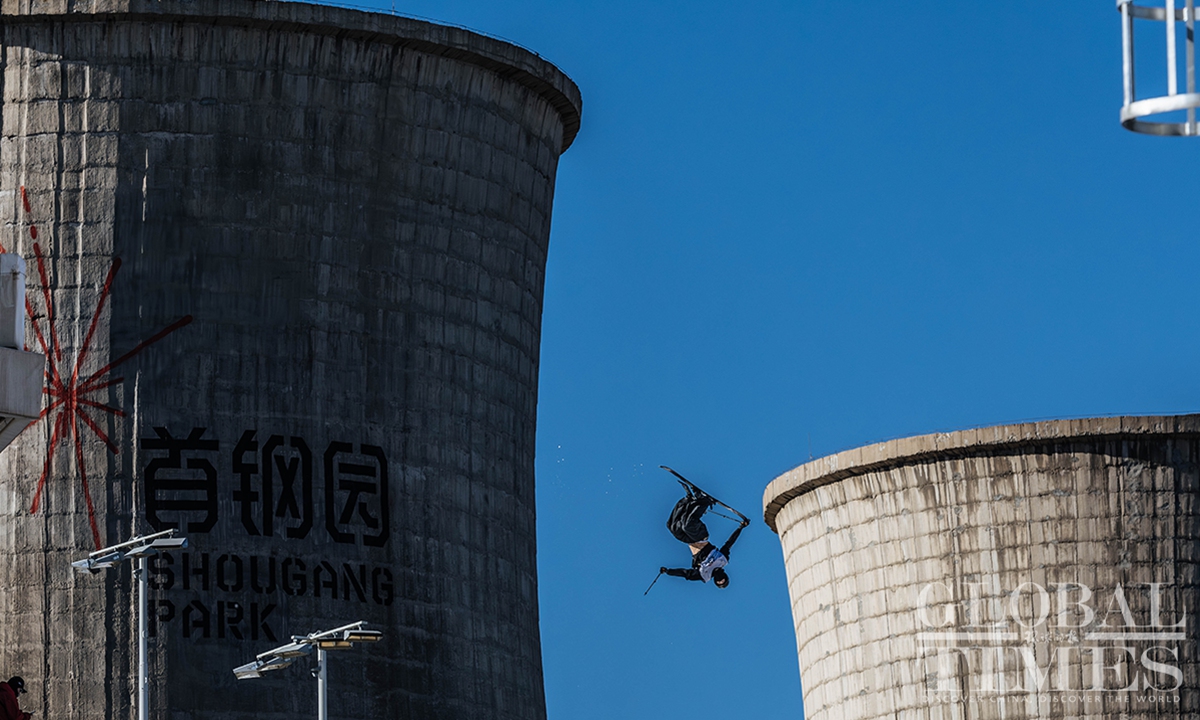 Athletes compete in the men's freeski big air qualification round in the FIS Freeski World Cup Beijing at Shougang Park in Beijing on Friday. Eight skiers have qualified for the final which will be held on Sunday.(Photo: Li Hao/GT)