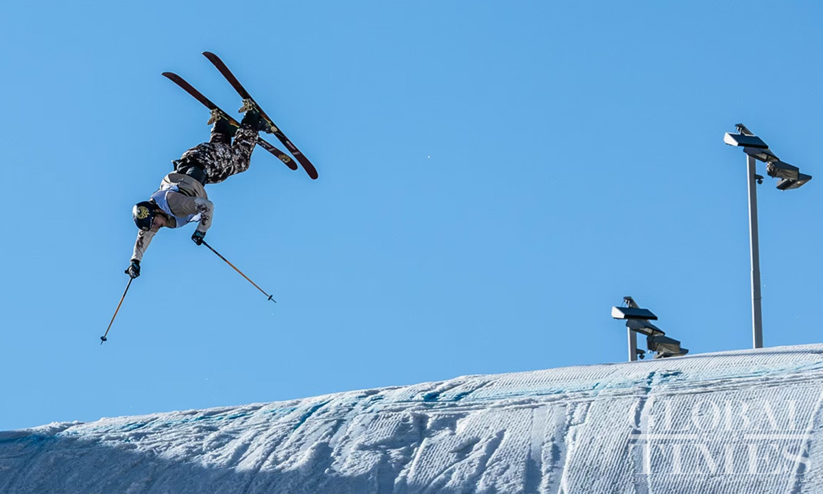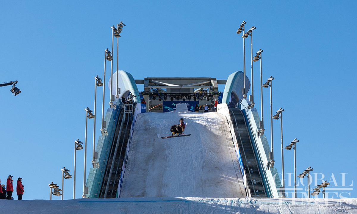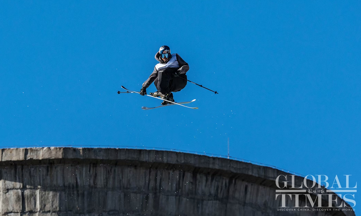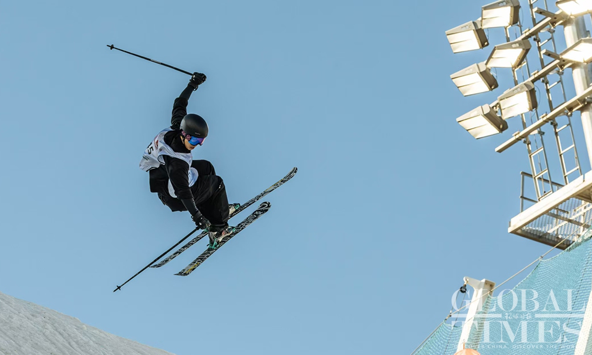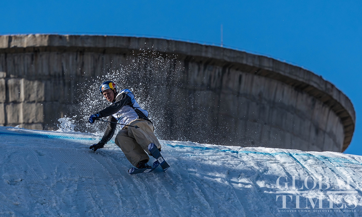 Athletes compete in the men's freeski big air qualification round in the FIS Freeski World Cup Beijing at Shougang Park in Beijing on Friday. Eight skiers have qualified for the final which will be held on Sunday.(Photo: Li Hao/GT)
