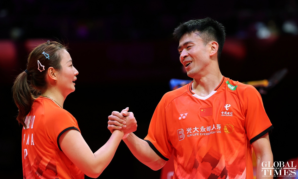 This victory marked a fitting finale to Zheng's illustrious career with the Chinese national team. Adding a heartwarming touch to the occasion, Zheng's son, affectionately nicknamed Aiden, made a surprise appearance at the post-match press conference. Photos: Cui Meng/GT