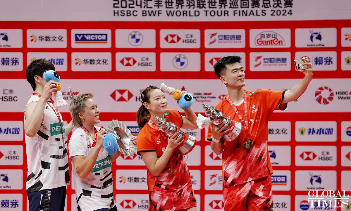 China's mixed doubles badminton icons, Zheng Siwei and Huang Yaqiong, celebrated a remarkable victory at the BWF World Tour Finals 2024 in Hangzhou, Zhejiang Province on Sunday. The pair clinched the title by defeating Malaysia's Chen Tang Jie and Toh Ee Wei in a thrilling match, with scores of 21-18, 14-21, and 21-17.