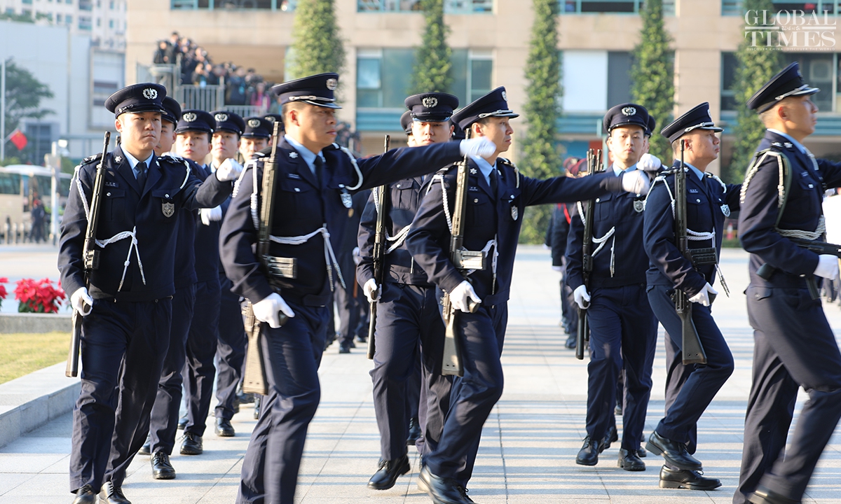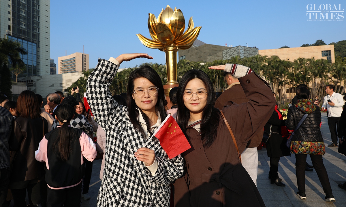 To celebrate the 25th anniversary of Macao's return to the motherland, the Macao Special Administrative Region (SAR) Government held a flag-raising ceremony at the Golden Lotus Square on Friday morning.(Photos: Lin Xiaoyi/GT)