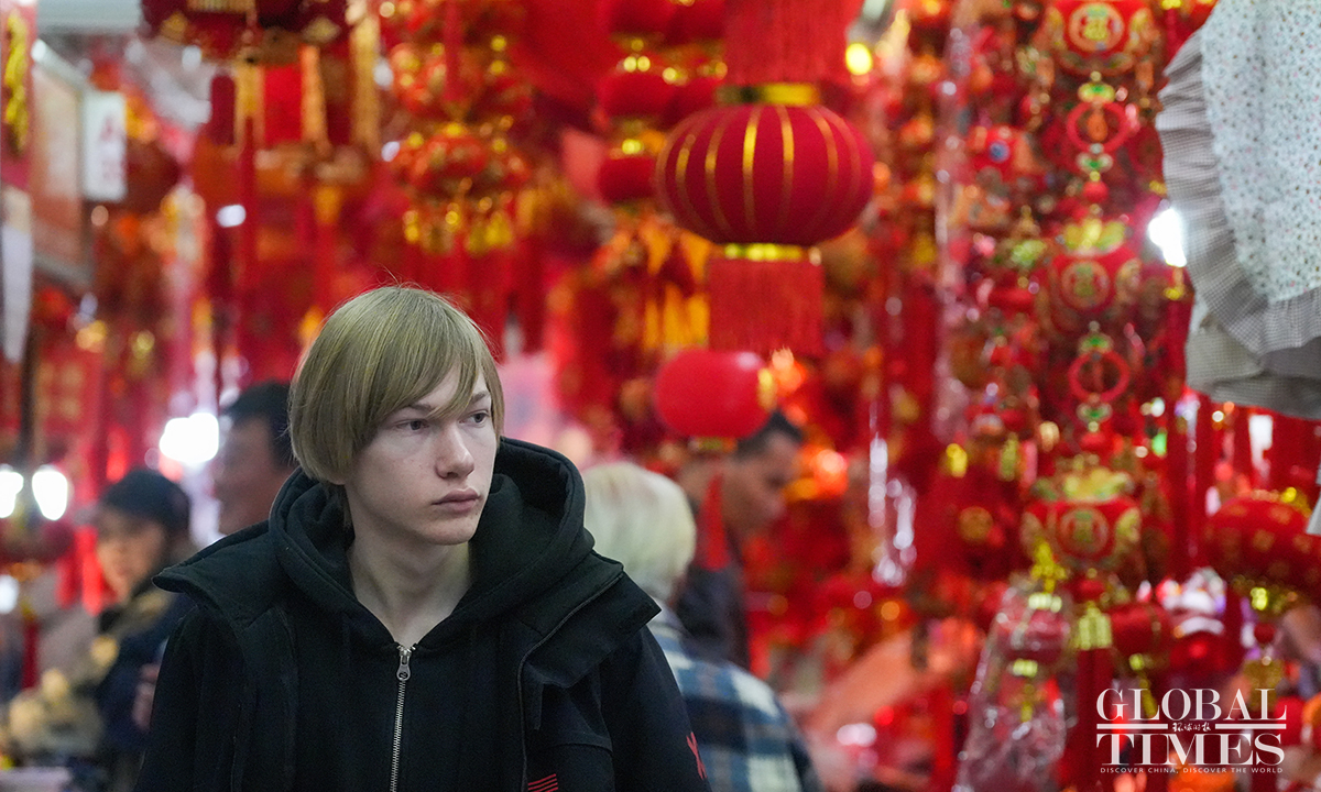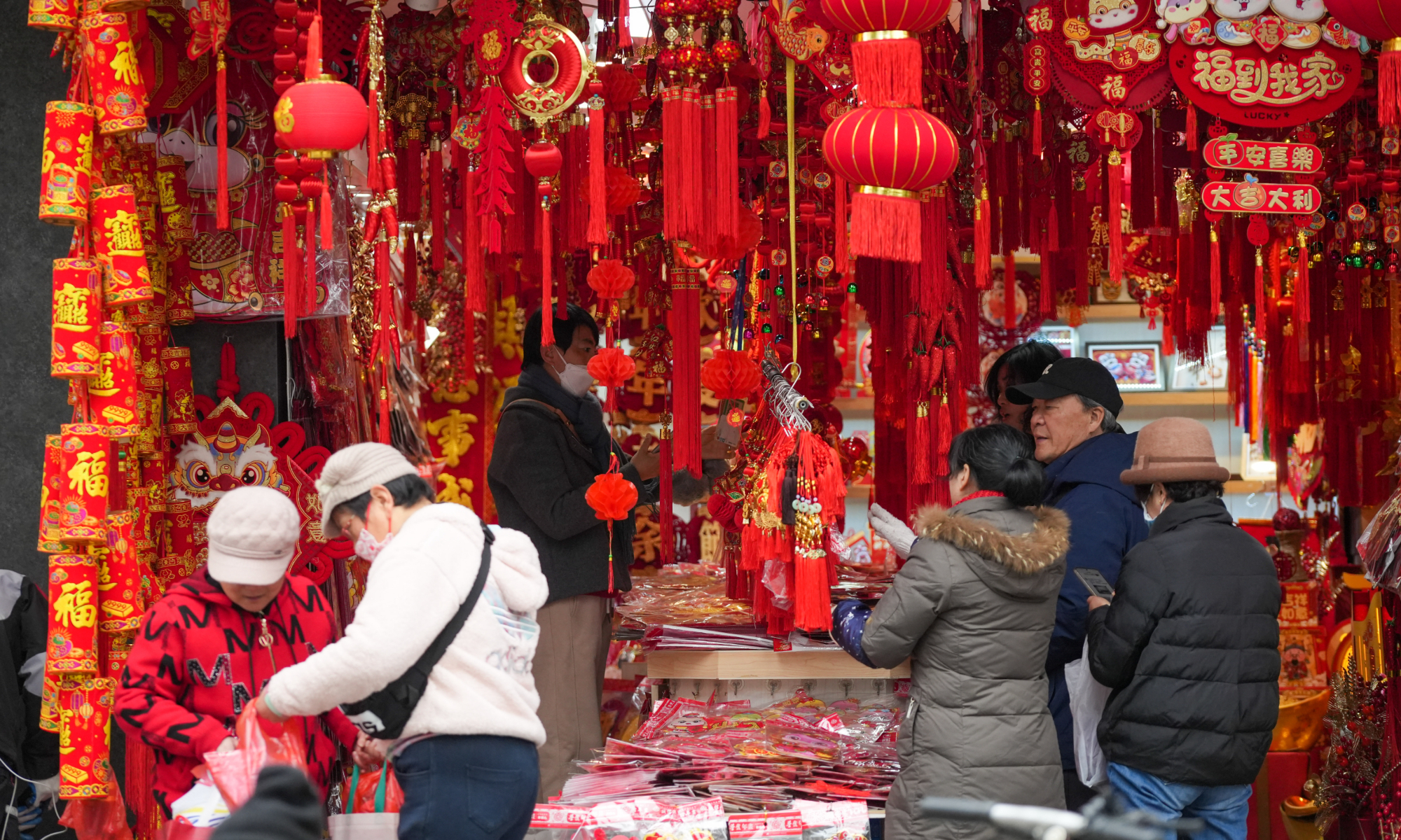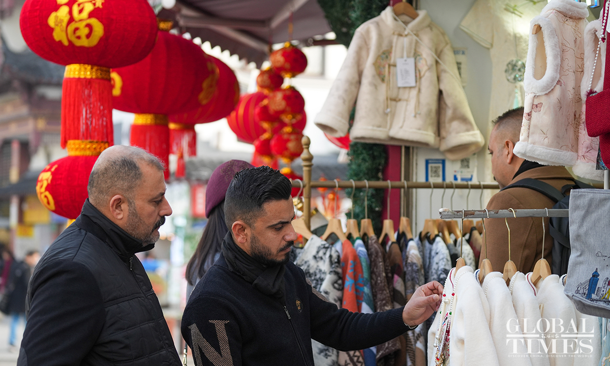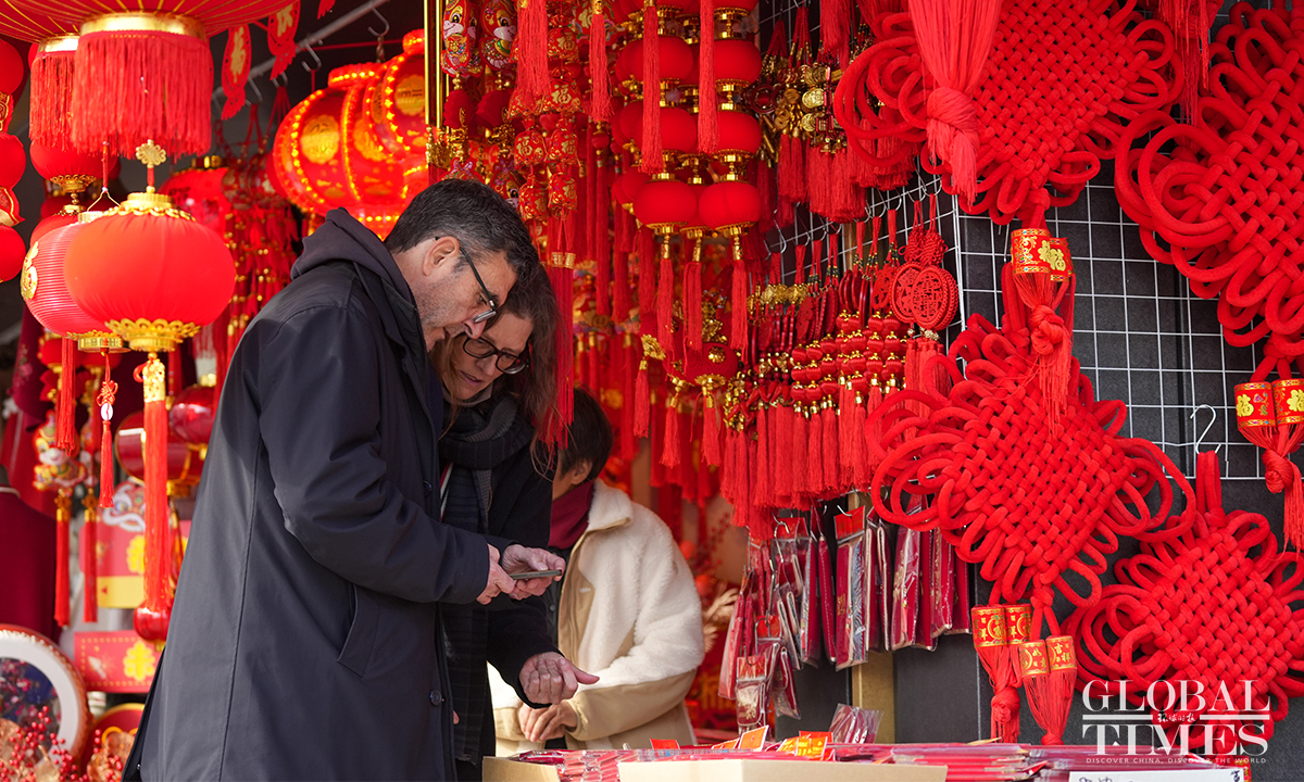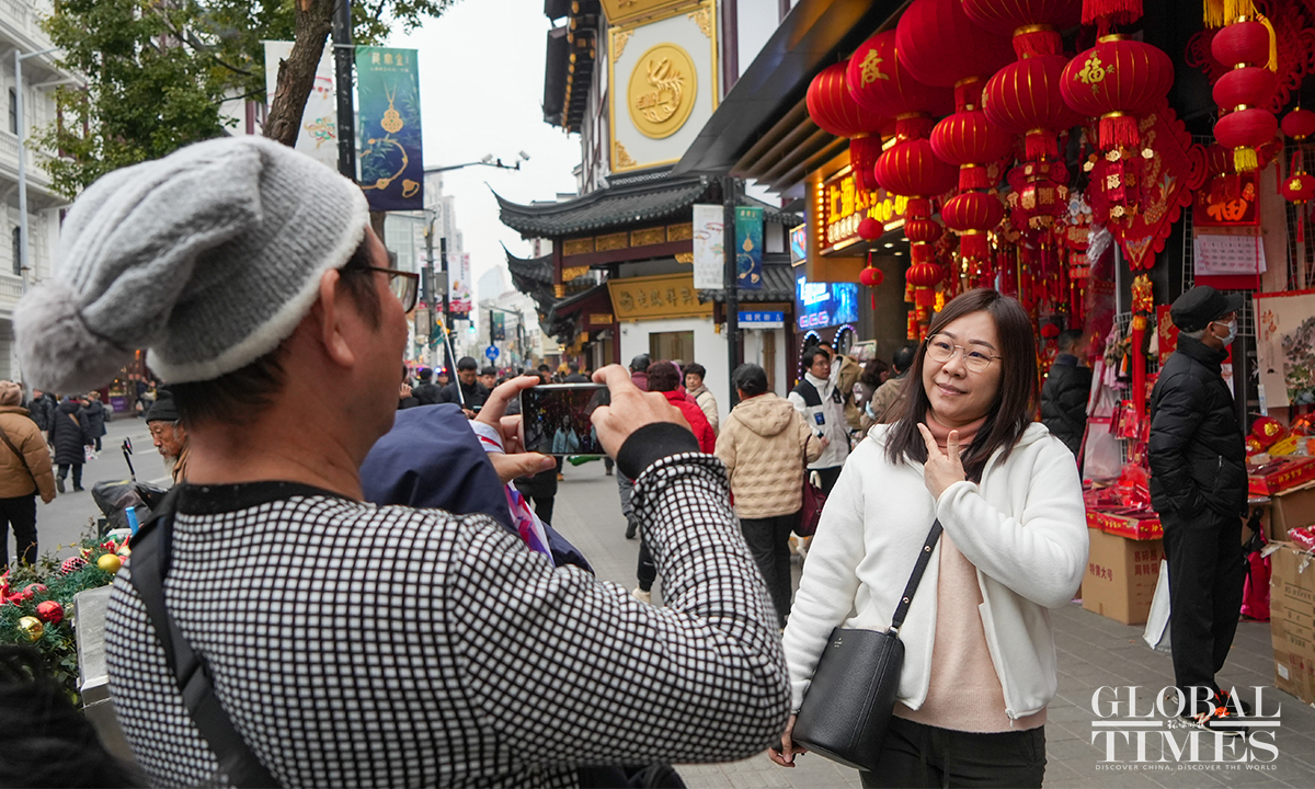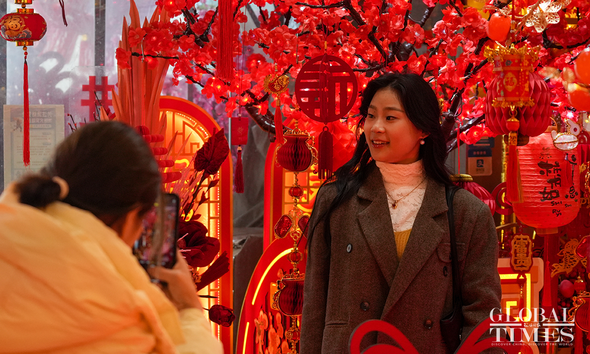 As the Spring Festival approaches, residents in Shanghai are shopping for festive decorations such as red lanterns, couplets and zodiac-themed ornaments at the Yuyuan Bazaar on December 30, 2024, contributing to a pre-holiday consumption boom. (Photos: Lu Ting/GT)
