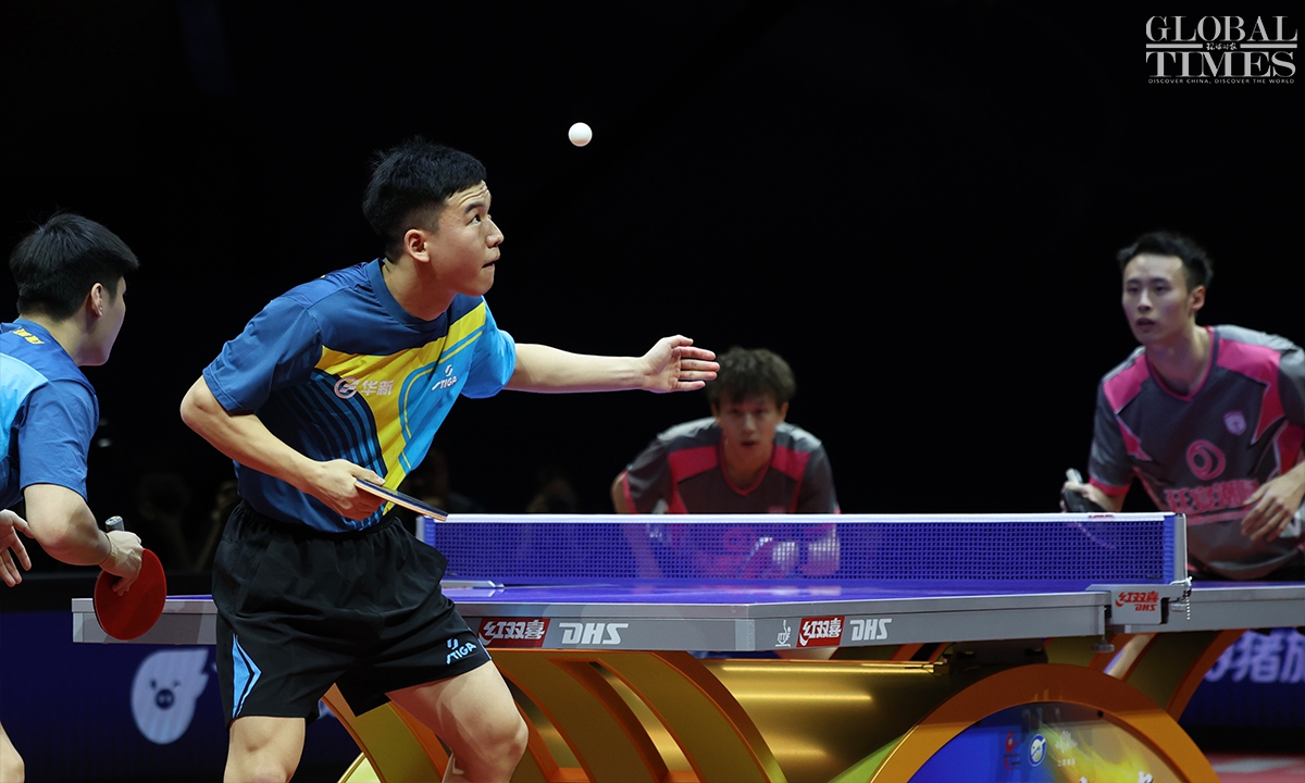 On Tuesday, the finals of the 2024 China Table Tennis Super League continued at the Shanghai Stadium. In the men's team semifinals, the Huangshi Base·Huaxin team, featuring world-ranked second Lin Shidong, defeated the Shantou Mingrun team, led by Lin Gaoyuan, with a score of 3:1, advancing to the finals. (Photos: Chen Xia/GT)