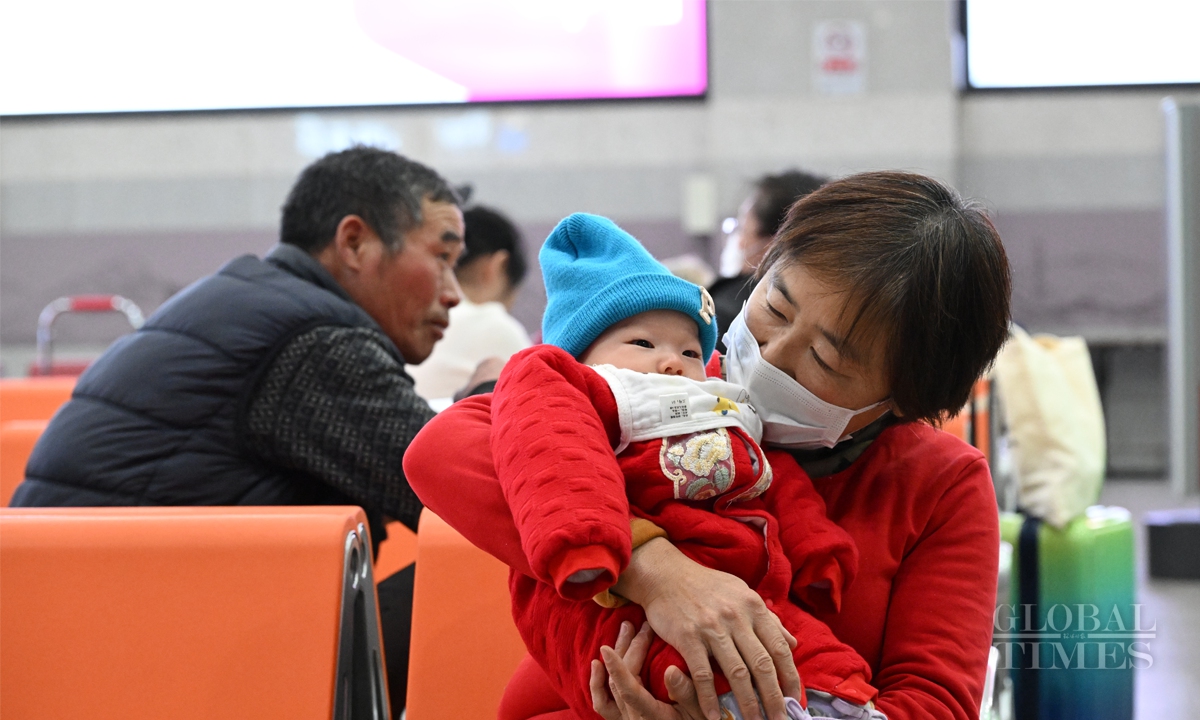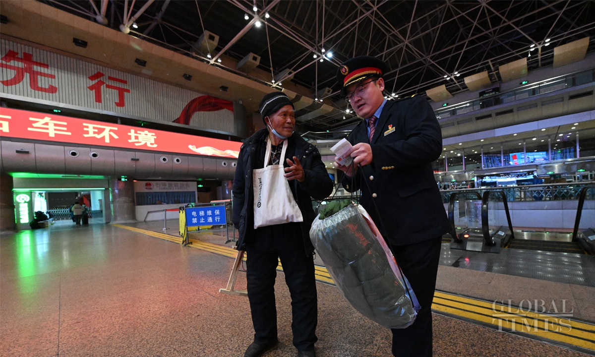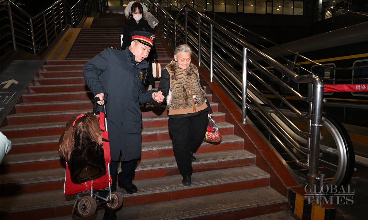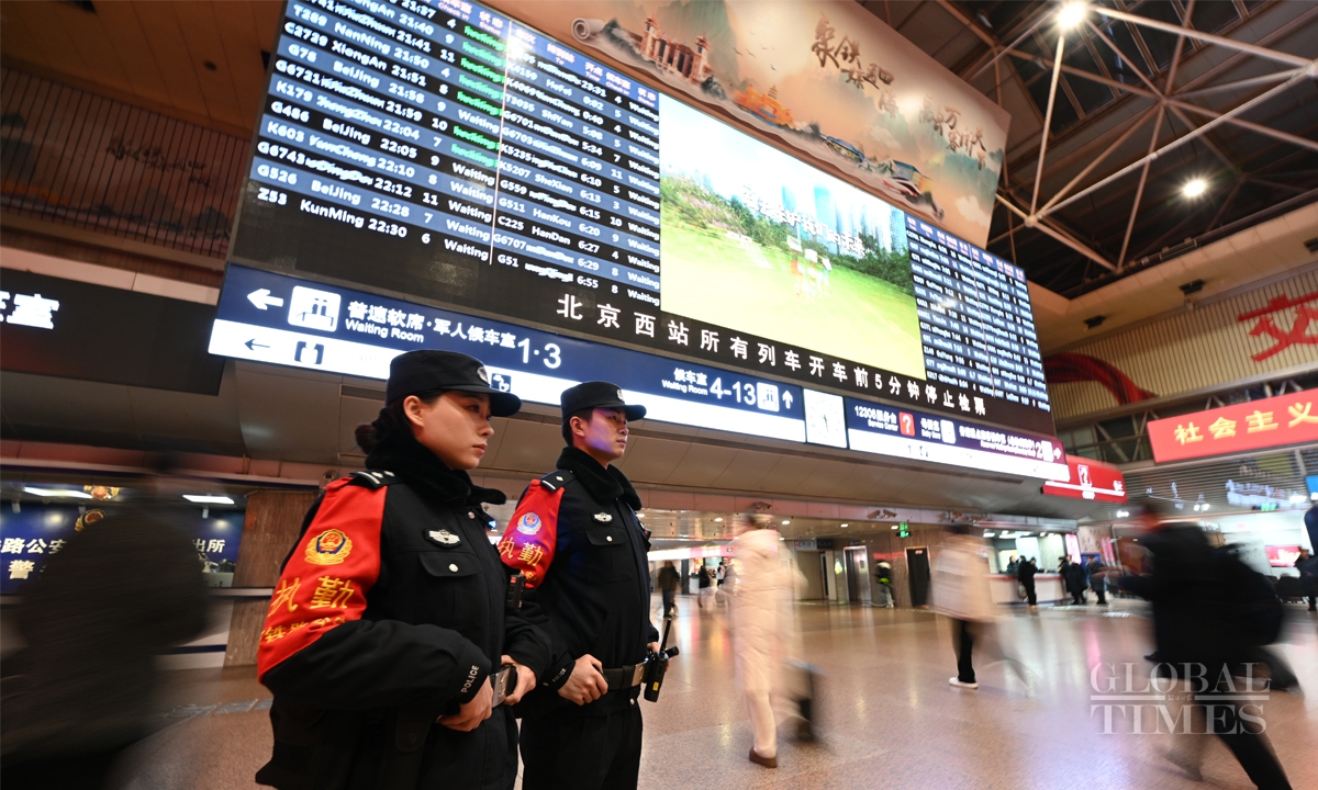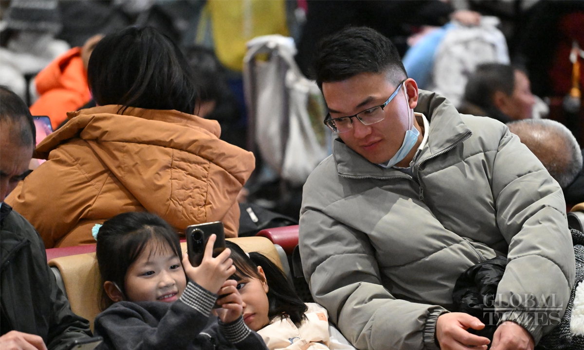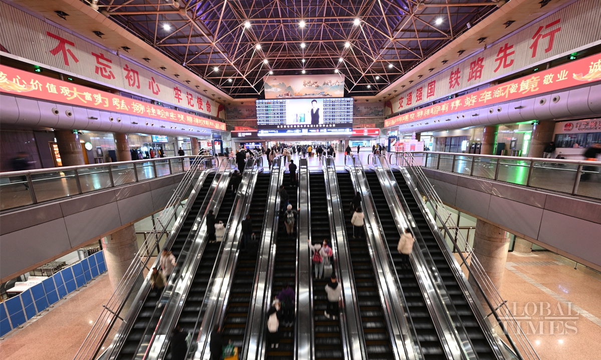 China's 40-day Spring Festival travel rush starts with K4159 leaving Beijing West Railway Station to Hefei, East China's Anhui Province at 12:02 am on January 14. The Spring Festival travel rush spans from January 14 to February 22. It is expected that during this year's Spring Festival travel period, the railway passenger volume will exceed 510 million, with an average of 12.75 million people per day, representing a 5.5% increase compared to the Spring Festival travel period in 2024. Photos: Chen Tao/GT