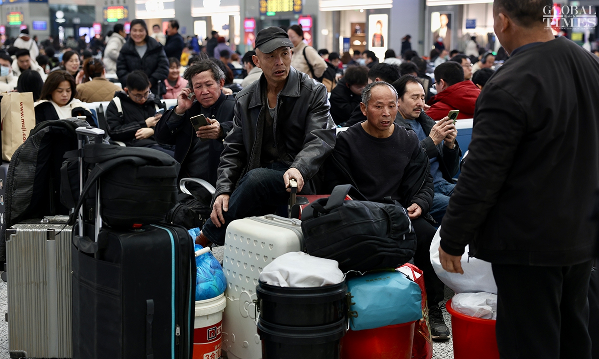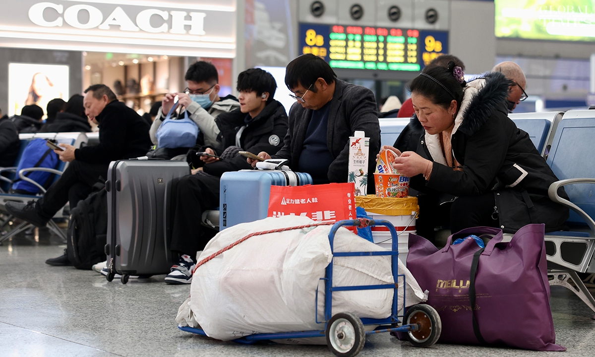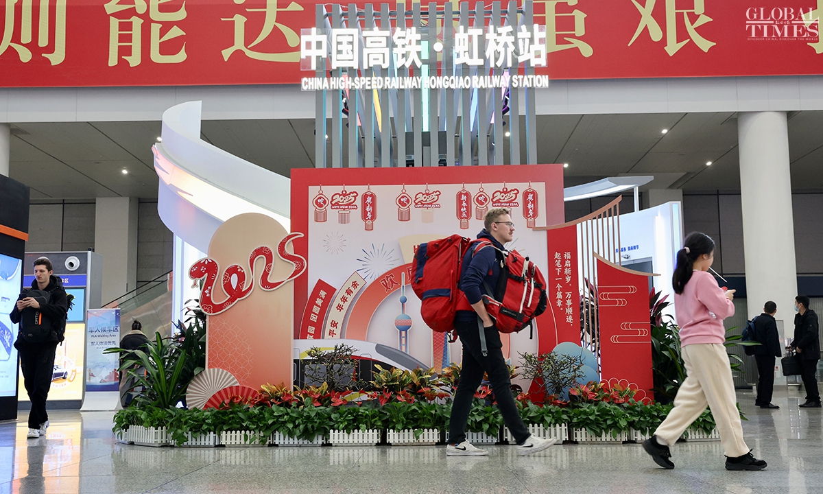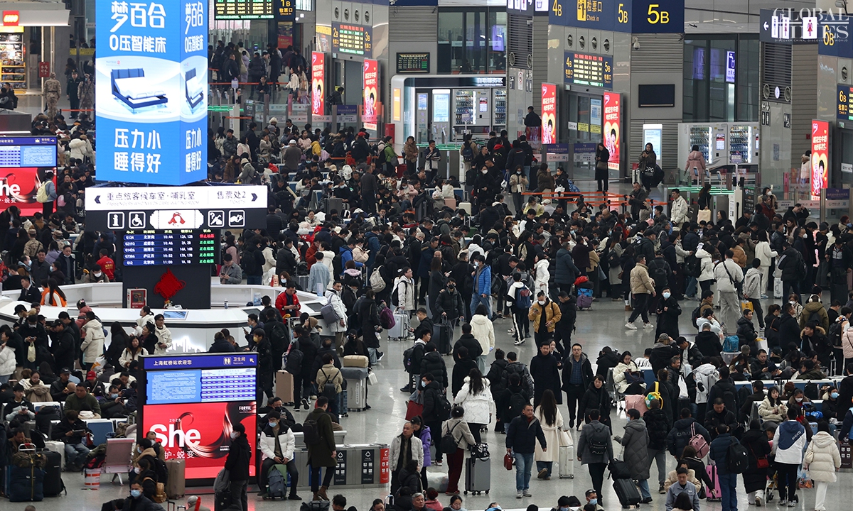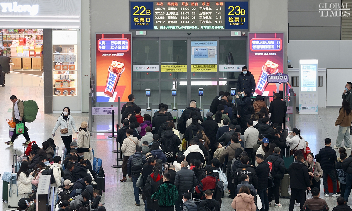 During China’s 40-day Spring Festival travel rush, Shanghai railway stations are expected to deliver over 16 million passenger trips, with an average daily passenger trip of over 400,000. This represents an increase of over 13 percent year-on-year, according to China Railway Shanghai Bureau Group Co. (Photos: Chen Xia/GT)