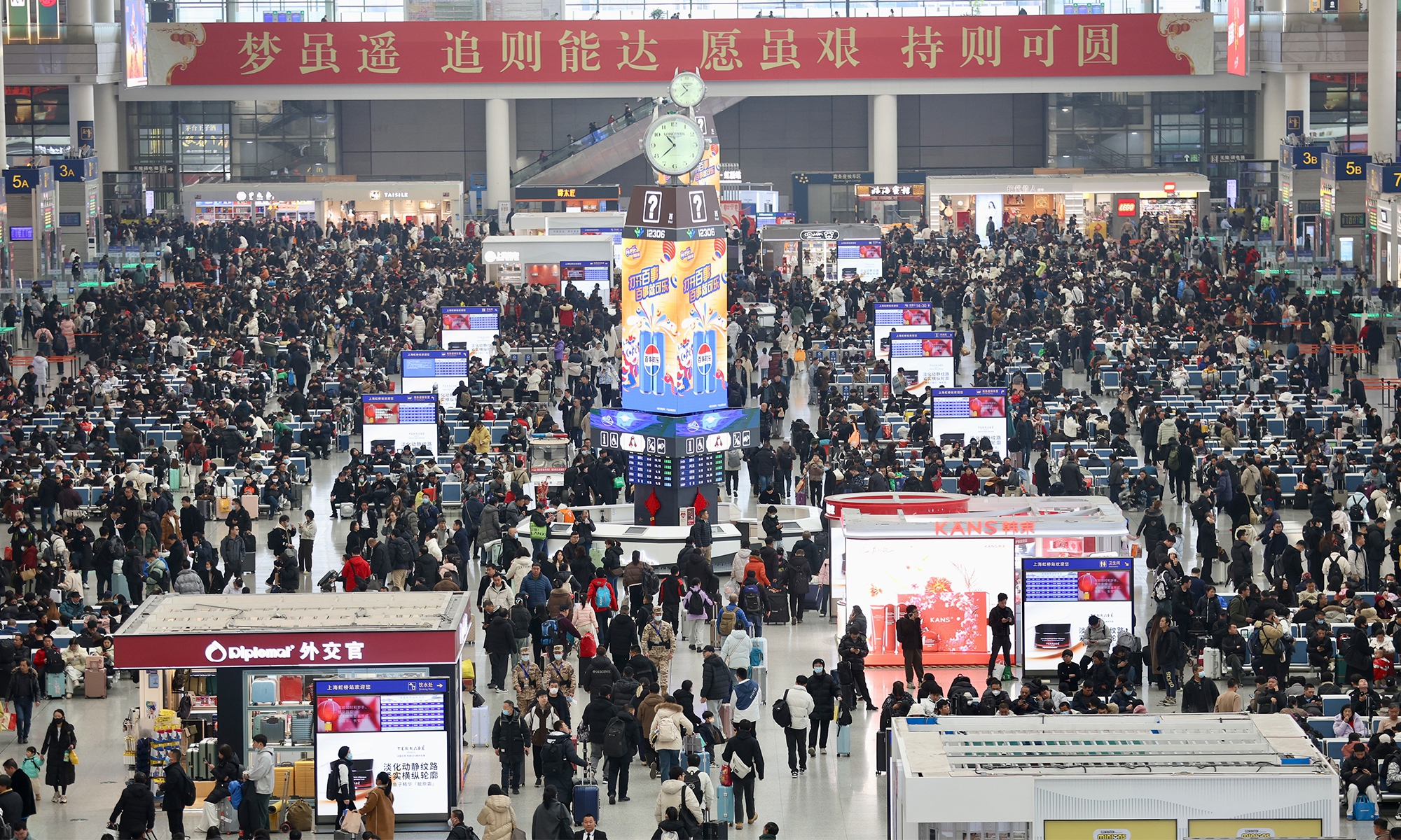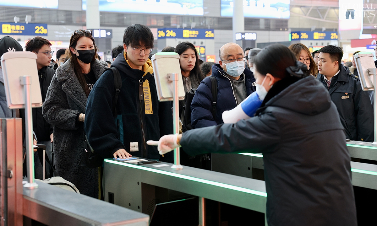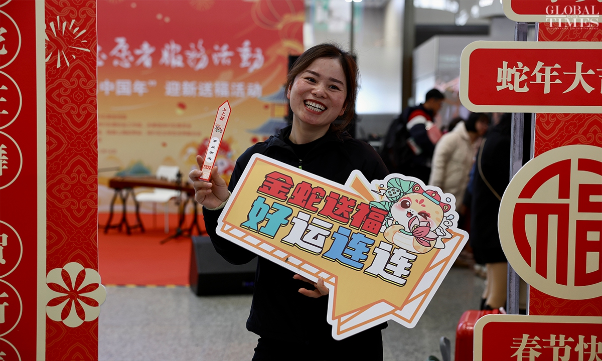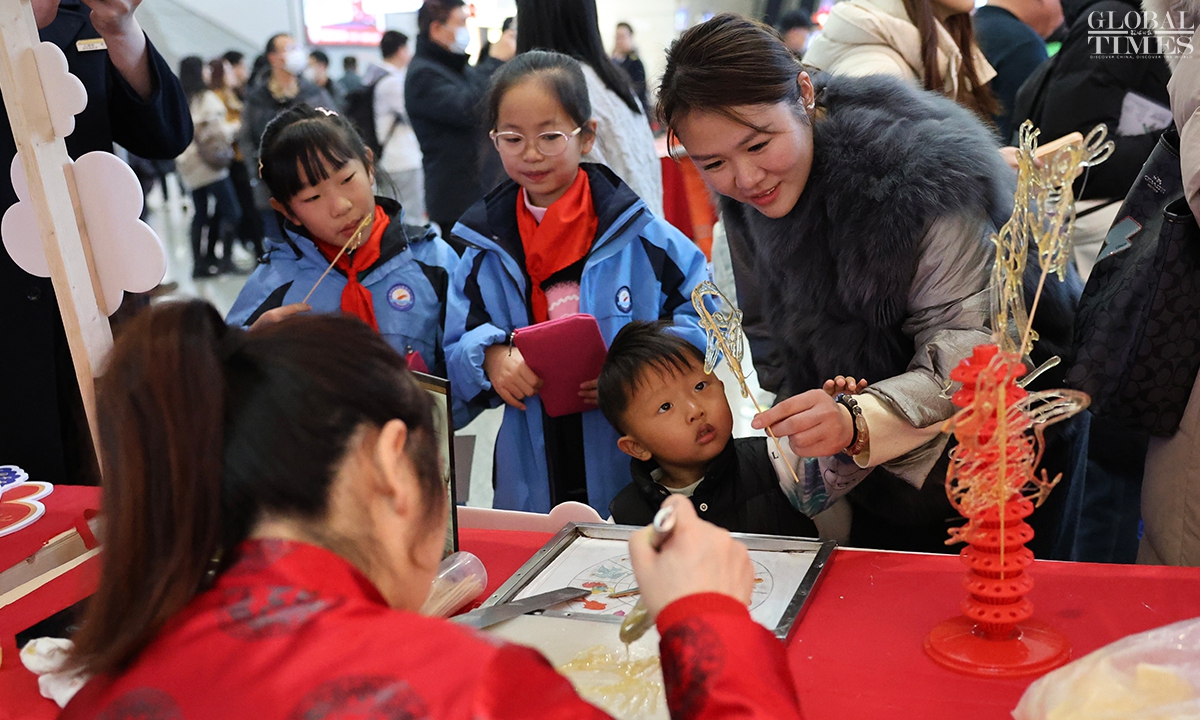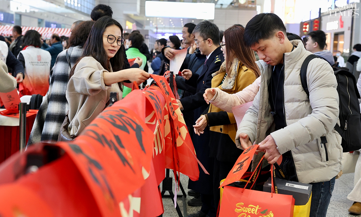 During China’s 40-day Spring Festival travel rush, Shanghai railway stations are expected to deliver over 16 million passenger trips, with an average daily passenger trip of over 400,000. This represents an increase of over 13 percent year-on-year, according to China Railway Shanghai Bureau Group Co. (Photos: Chen Xia/GT)