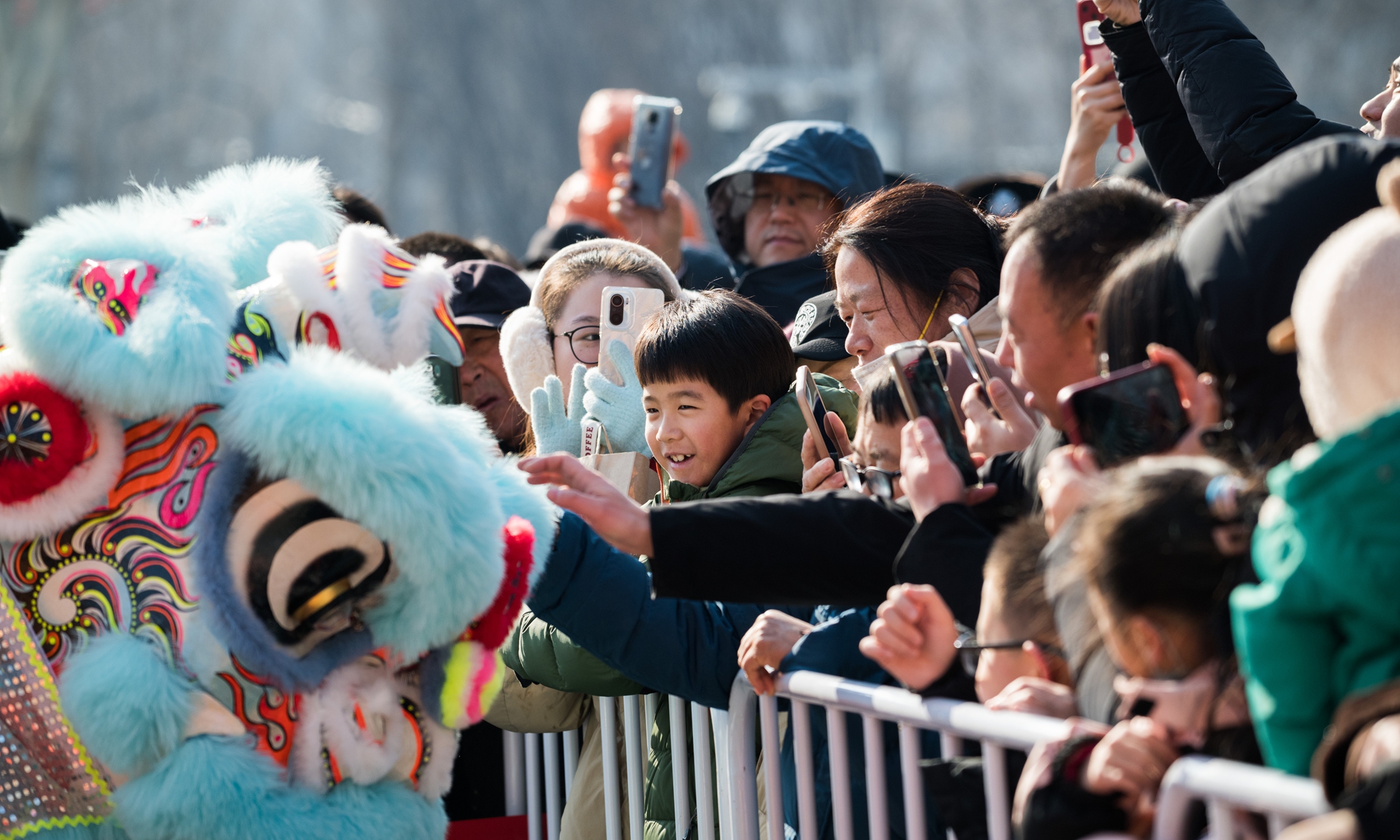 Spectacular southern and northern lion dances staged at Beijing’s Dongyue Temple Fair