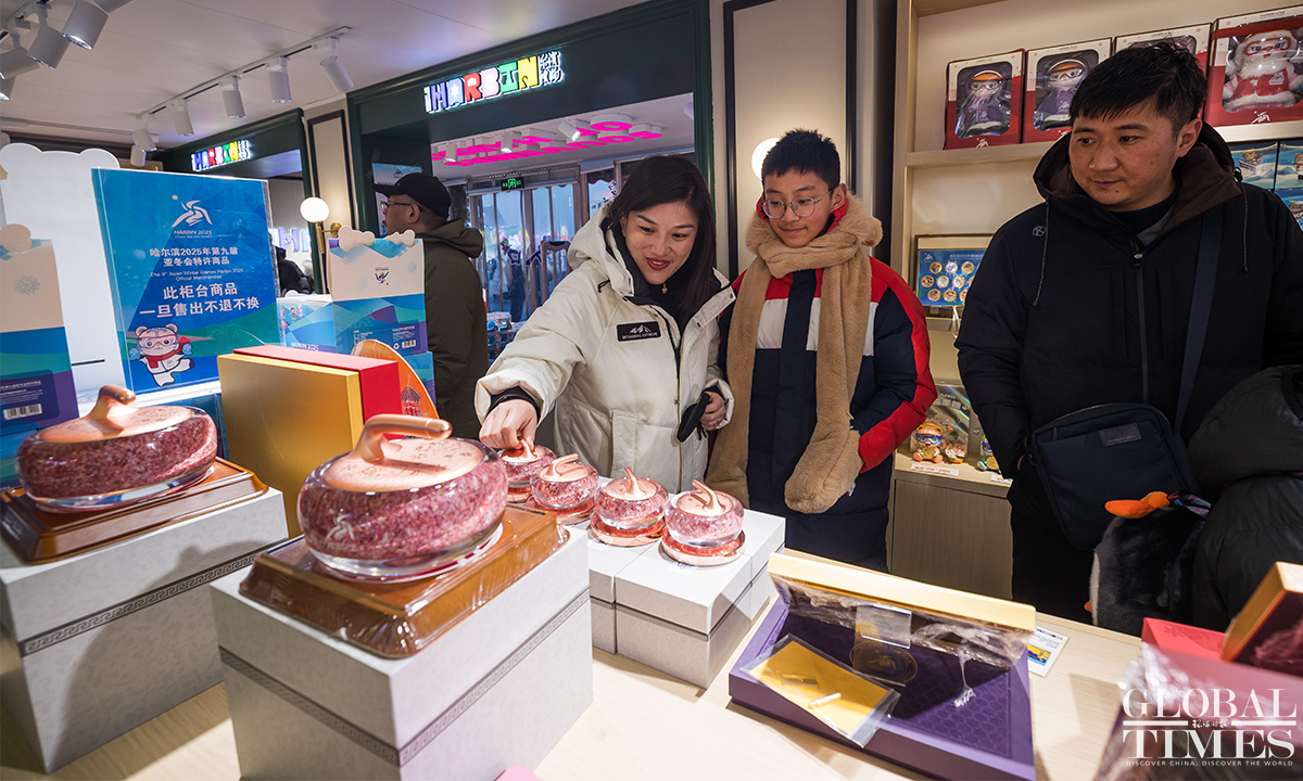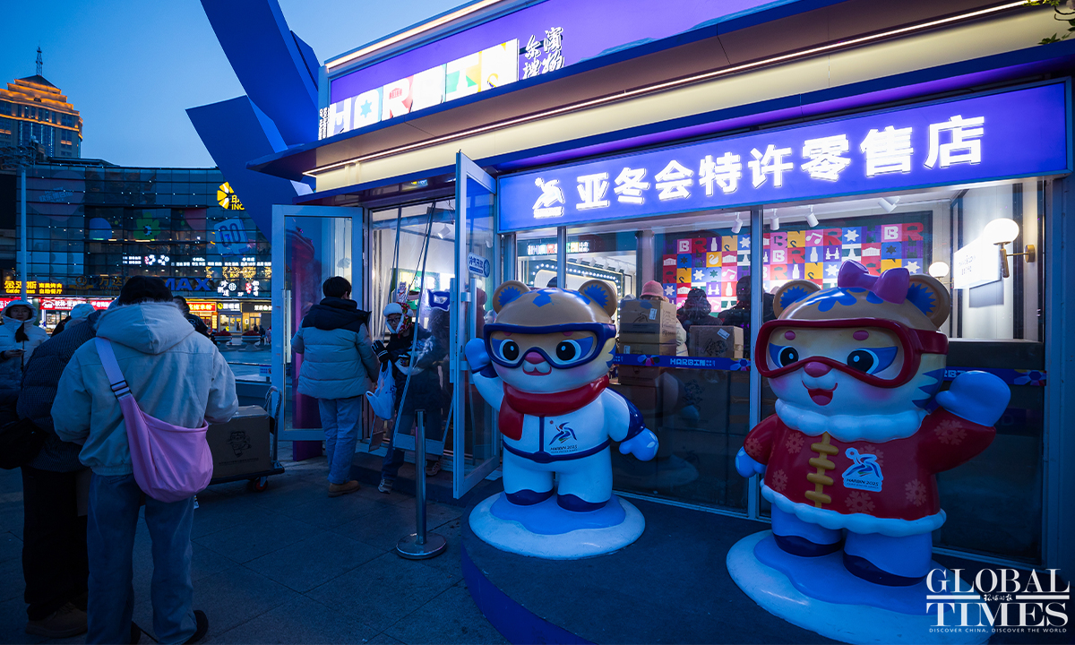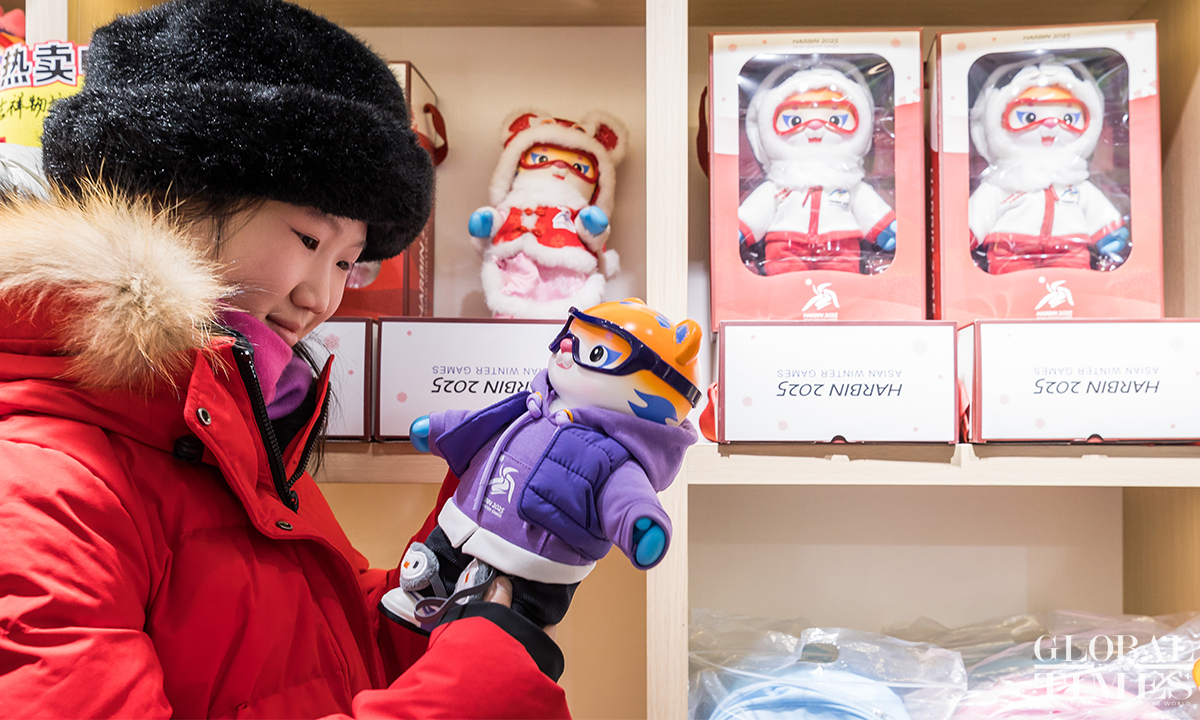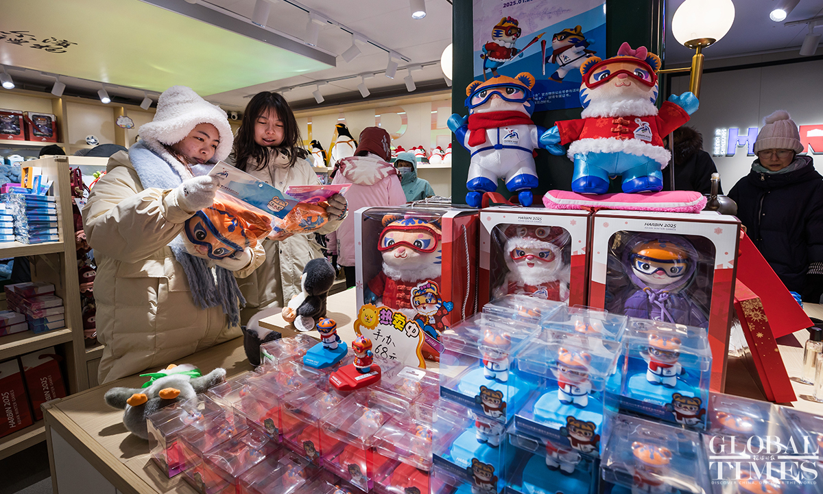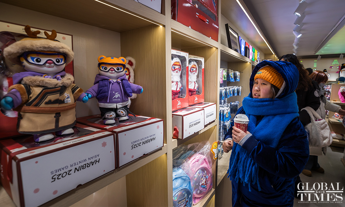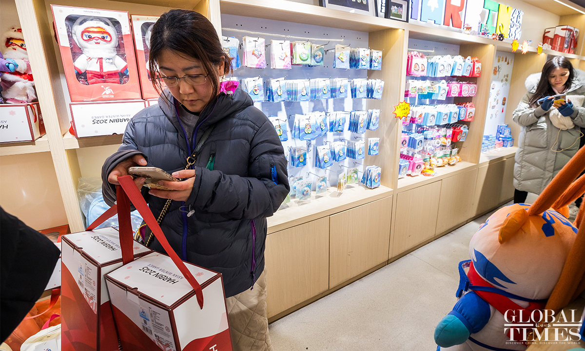 The 9th Asian Winter Games is set to kick off on February 7, 2025, and enthusiasm in Harbin for this grand event is at an all-time high. People were seen purchasing souvenirs at a licensed merchandise store on Central Street in Harbin, Northeast China’s Heilongjiang Province, with the mascots "Binbin" and "Nini" stealing the spotlight. (Photos: Chen Tao/GT)
