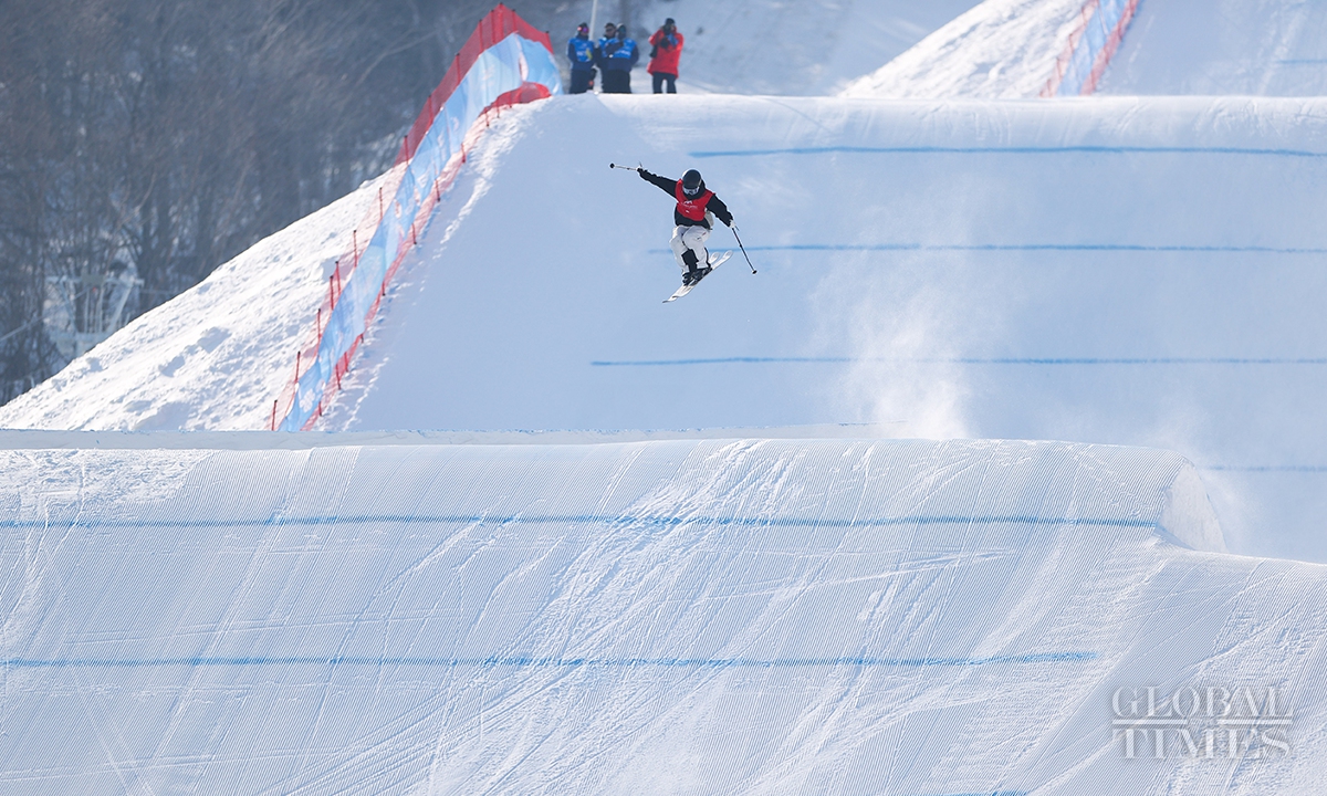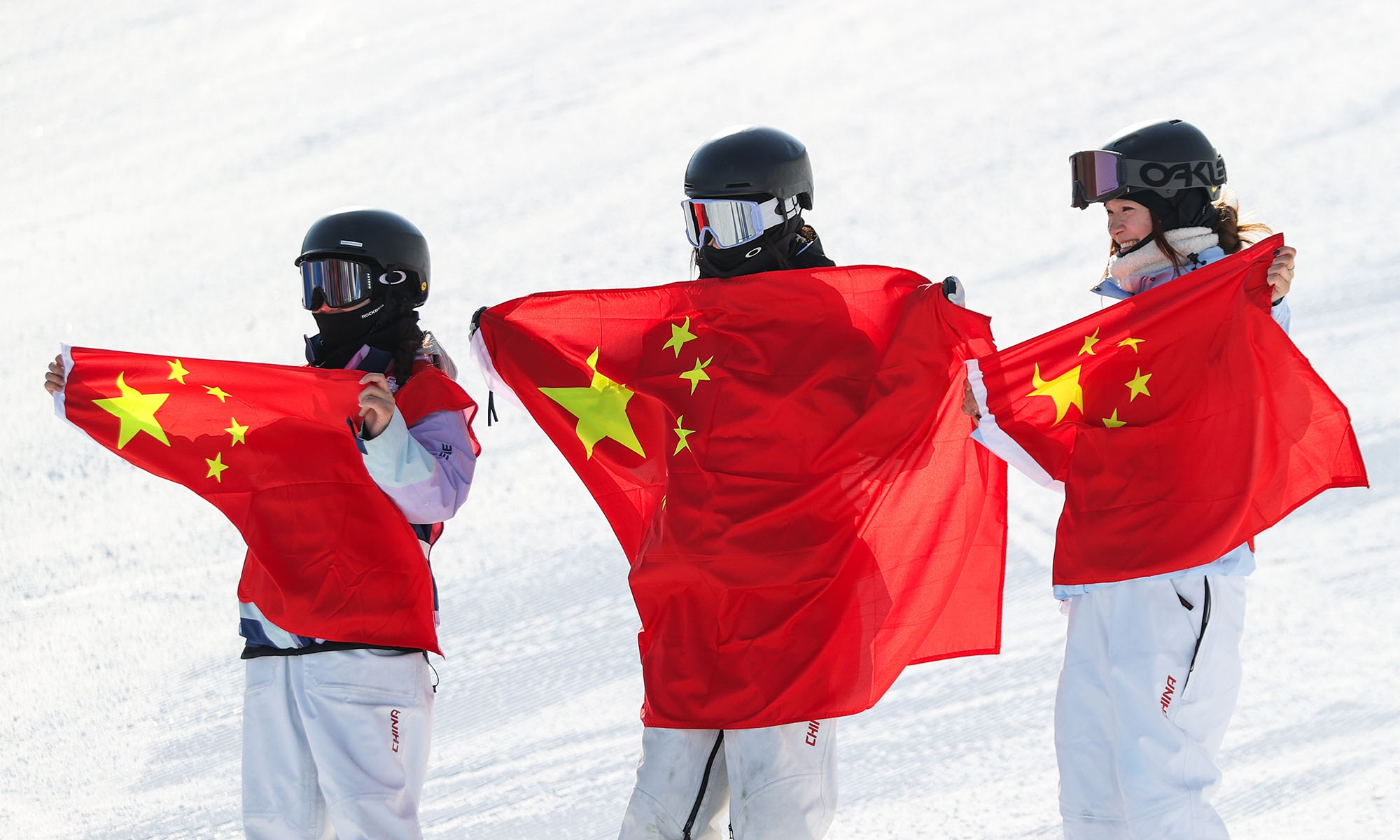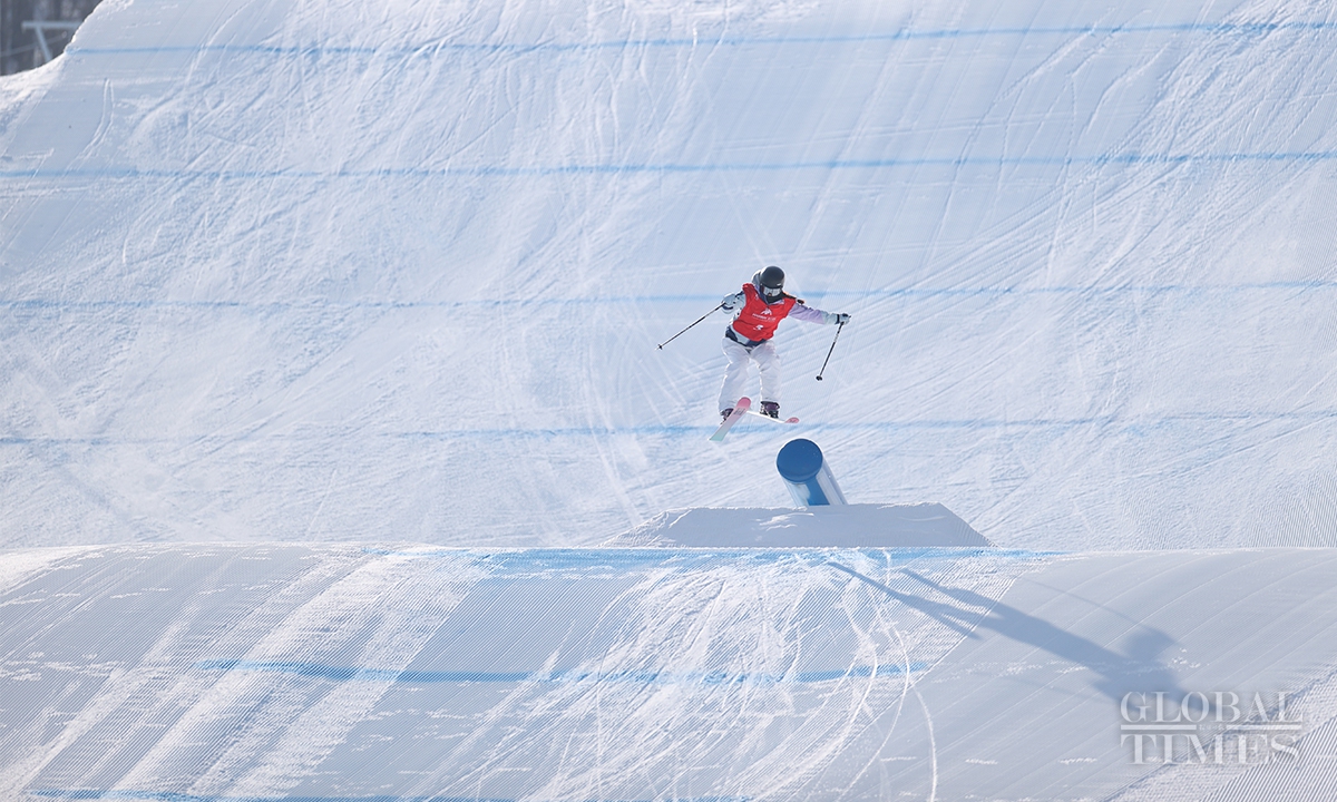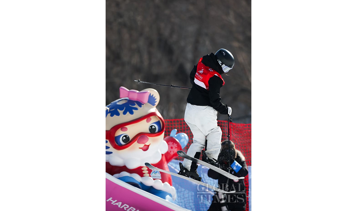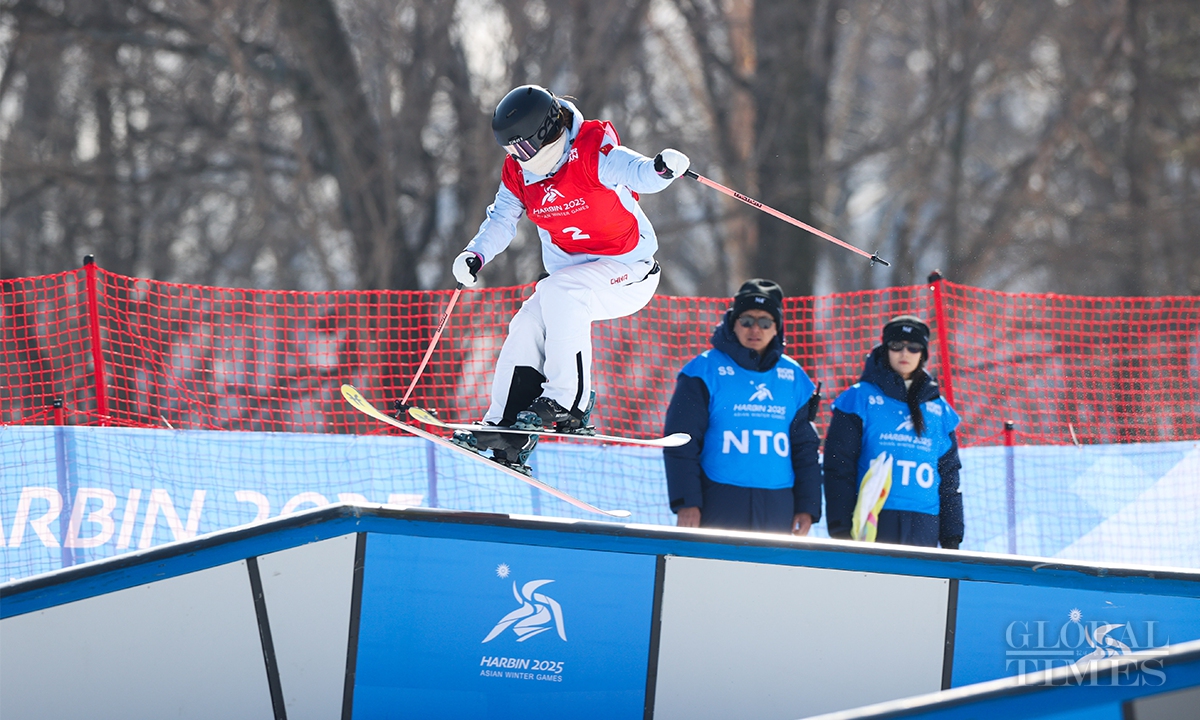On February 11, Chinese athlete Liu Mengting claimed gold in the finals of the women's freestyle skiing slopestyle event at the Harbin Asian Winter Games, Yang Ruyi secured the silver medal, and Han Linshan took home the bronze. Photos: Chen Tao/GT