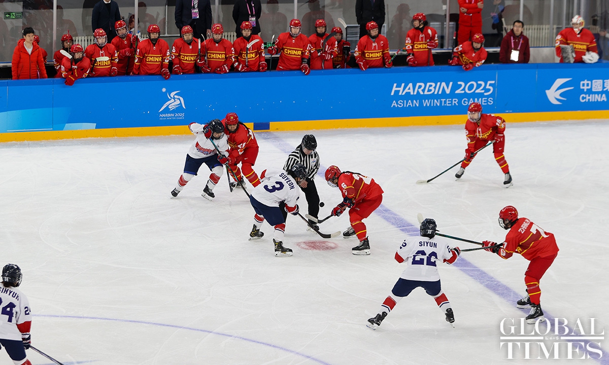 The Chinese women's ice hockey team defeated Team South Korea 2-1 on Wednesday, winning their first match at the 9th Asian Winter Games in Harbin, Northeast China's Heilongjiang Province.